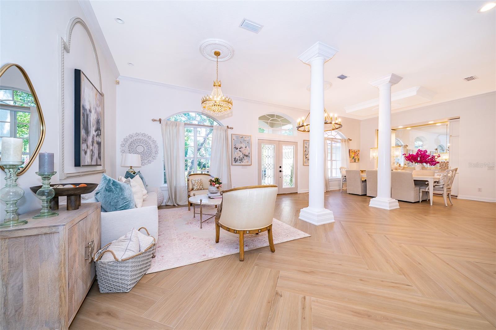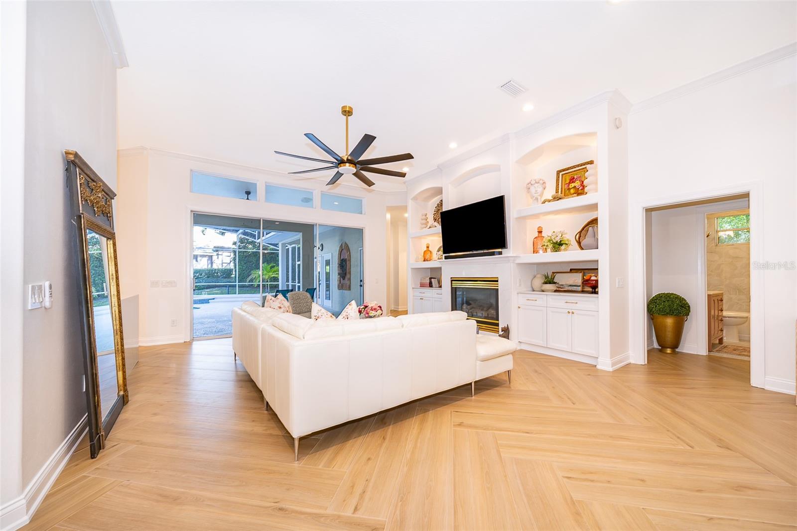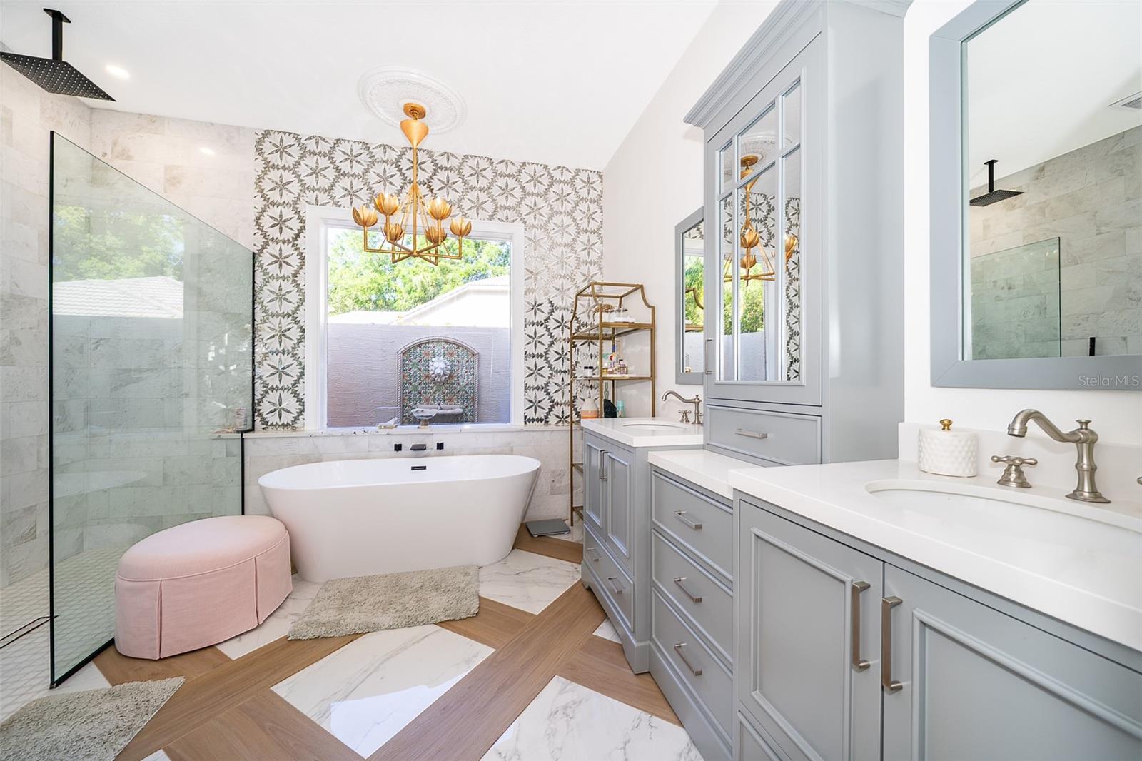 Welcome to this must see home within Heathrow's exclusive and highly sought-after prestigious community of Stonebridge! This spacious home is quietly situated perfectly on the corner of your own private “no-traffic cul-de-sac” and with only 4 houses beyond the loop make this home one of kind. Expect to be impressed as you cross the “coquina lanterned bridge” and follow the tree-canopied street around the bend to this immaculate, move-in-ready home. Step into this beautifully remodeled home where warmth and luxury greet you at every turn. The spacious 3-way split floor plan boasts soaring 12-foot ceilings and floor-to-ceiling windows that fill the space with natural light. Every inch has been thoughtfully updated, featuring new herringbone flooring, new light fixtures, custom cabinetry, and a brand-new kitchen. The bathrooms have been fully renovated with sleek vanities, modern fixtures, and elegant quartz countertops throughout—offering a seamless blend of style and comfort. Experience the height of luxury in this beautifully designed master bathroom. Wrapped in floor-to-ceiling marble, the space radiates timeless elegance. Custom vanities bring a modern edge with generous storage and clean, sophisticated lines. A spacious freestanding soaking tub serves as the centerpiece—ideal for relaxing after a long day. The oversized walk-in shower features a luxurious rainfall showerhead, offering a spa-like experience every time you step in. Every detail has been curated to create a serene, high-end retreat right at home. This home showcases an elegant open floor plan designed for both comfort and sophistication. Spacious, beautifully styled bedrooms provide serene retreats, while the expansive family room offers inviting living spaces that feel effortlessly cozy. Oversized windows bathe the interiors in soft, natural light, perfectly balanced by designer fixtures and LED recessed lighting throughout. The thoughtfully designed layout includes a separate formal living room and a dining area adorned with a built-in mirrored buffet, recessed lighting, and dedicated wine storage—ideal for entertaining. At the heart of the home, the gourmet kitchen is a showstopper, featuring custom cabinetry, dramatic waterfall Quartz countertops, a convenient breakfast bar, and brand-new, top-of-the-line stainless steel appliances. Perfectly situated, the kitchen flows seamlessly into both the formal dining space and the family room, where a cozy fireplace adds warmth and charm to gatherings. Beyond an impeccably maintained home over the years, this home also has a fairly new, high efficiency A/C unit and water heater, both replaced in 2021. This home was built with 50 year class 4 impact resistant and hand crafted scalloped cut tile roof. The aerial photos clearly show a solid roof structure as well as meticulously maintained. Welcome to Heathrow—an exclusive, gated community offering 24/7 staffed security at two main entrances, plus three resident-only access gates for added convenience. Residents enjoy a wide array of amenities, including the popular Sawyer Lake Park. This is true country club living, complete with not one but two private golf courses designed by the legendary Ron Garl. Dine casually at The Heathrow Grill or enjoy elevated cuisine in the Main Dining Room. This home is located in one of the most highly rated and respected School District within Seminole County, Florida.