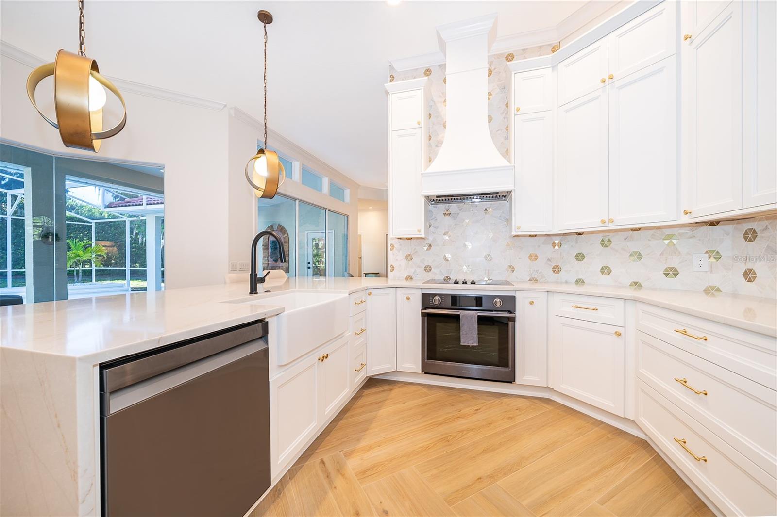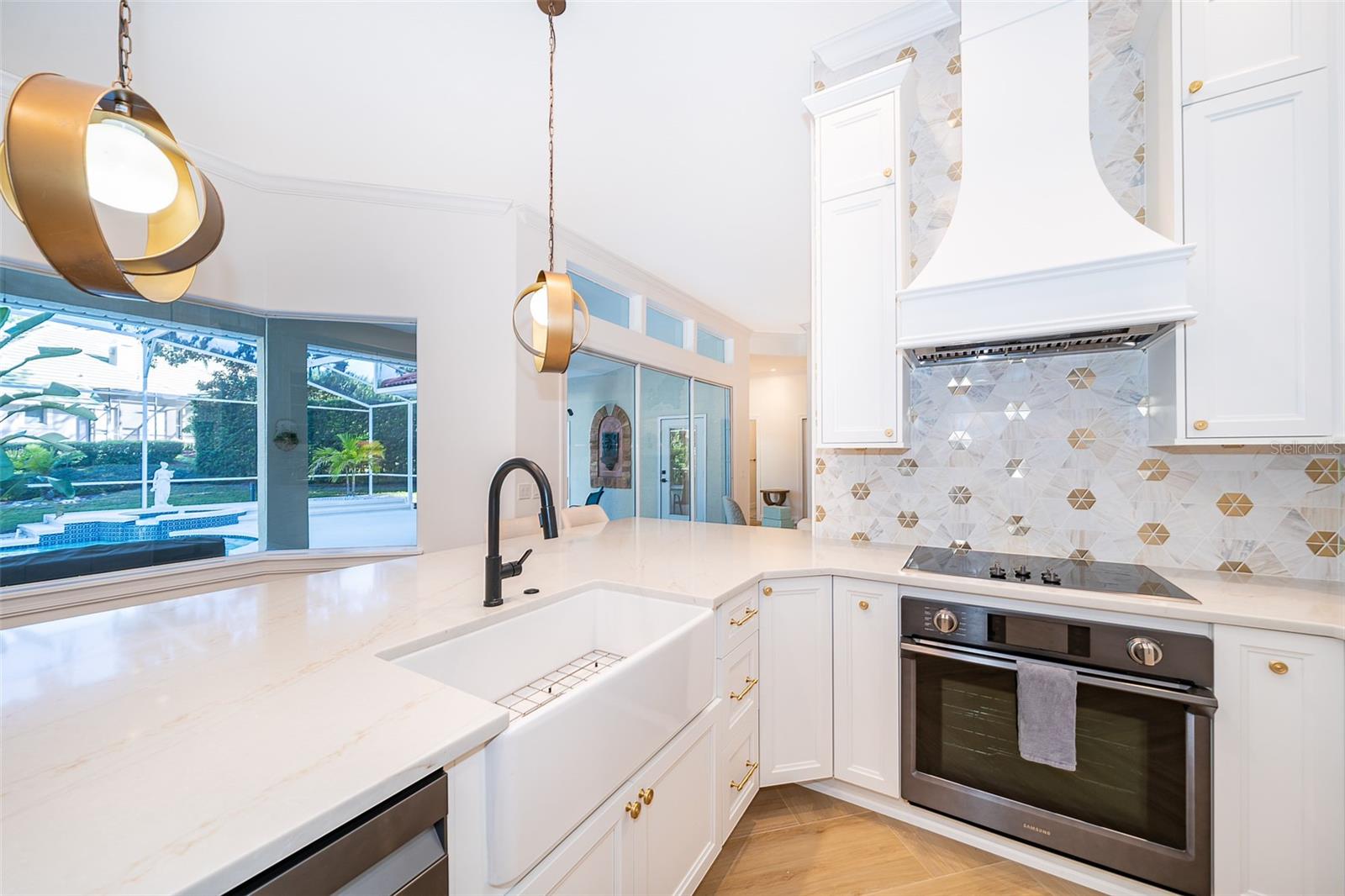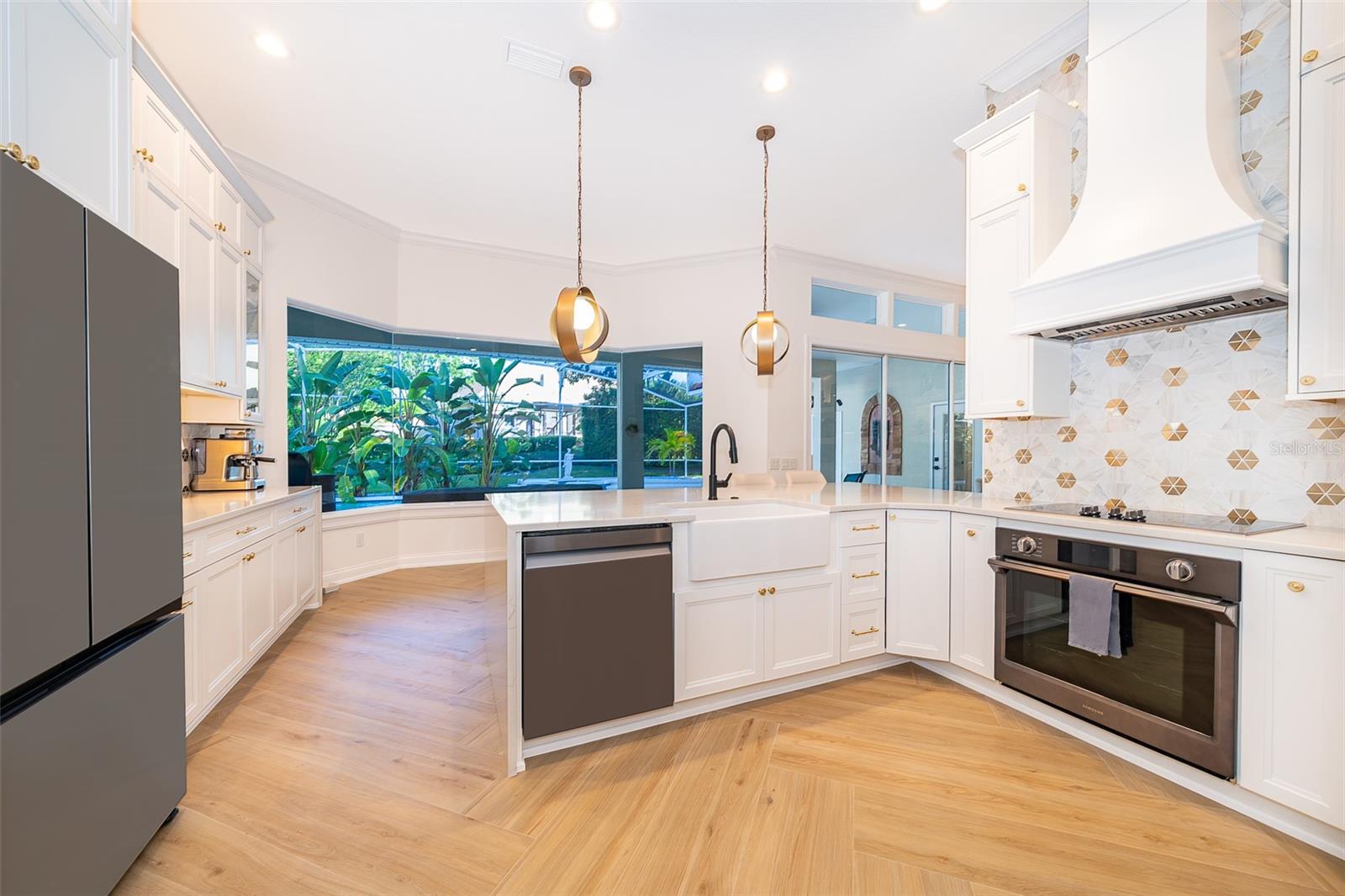 Welcome to this must see home within Heathrow's exclusive and highly sought-after prestigious community of Stonebridge! This spacious home is quietly situated perfectly on the corner of your own private “no-traffic cul-de-sac” and with only 4 houses beyond the loop make this home one of kind. Expect to be impressed as you cross the “coquina lanterned bridge” and follow the tree-canopied street around the bend to this immaculate, move-in-ready home. Step into this beautifully remodeled home where warmth and luxury greet you at every turn. The spacious 3-way split floor plan boasts soaring 12-foot ceilings and floor-to-ceiling windows that fill the space with natural light. Every inch has been thoughtfully updated, featuring new herringbone flooring, new light fixtures, custom cabinetry, and a brand-new kitchen. The bathrooms have been fully renovated with sleek vanities, modern fixtures, and elegant quartz countertops throughout—offering a seamless blend of style and comfort. Experience the height of luxury in this beautifully designed master bathroom. Wrapped in floor-to-ceiling marble, the space radiates timeless elegance. Custom vanities bring a modern edge with generous storage and clean, sophisticated lines. A spacious freestanding soaking tub serves as the centerpiece—ideal for relaxing after a long day. The oversized walk-in shower features a luxurious rainfall showerhead, offering a spa-like experience every time you step in. Every detail has been curated to create a serene, high-end retreat right at home. This home showcases an elegant open floor plan designed for both comfort and sophistication. Spacious, beautifully styled bedrooms provide serene retreats, while the expansive family room offers inviting living spaces that feel effortlessly cozy. Oversized windows bathe the interiors in soft, natural light, perfectly balanced by designer fixtures and LED recessed lighting throughout. The thoughtfully designed layout includes a separate formal living room and a dining area adorned with a built-in mirrored buffet, recessed lighting, and dedicated wine storage—ideal for entertaining. At the heart of the home, the gourmet kitchen is a showstopper, featuring custom cabinetry, dramatic waterfall Quartz countertops, a convenient breakfast bar, and brand-new, top-of-the-line stainless steel appliances. Perfectly situated, the kitchen flows seamlessly into both the formal dining space and the family room, where a cozy fireplace adds warmth and charm to gatherings. Beyond an impeccably maintained home over the years, this home also has a fairly new, high efficiency A/C unit and water heater, both replaced in 2021. This home was built with 50 year class 4 impact resistant and hand crafted scalloped cut tile roof. The aerial photos clearly show a solid roof structure as well as meticulously maintained. Welcome to Heathrow—an exclusive, gated community offering 24/7 staffed security at two main entrances, plus three resident-only access gates for added convenience. Residents enjoy a wide array of amenities, including the popular Sawyer Lake Park. This is true country club living, complete with not one but two private golf courses designed by the legendary Ron Garl. Dine casually at The Heathrow Grill or enjoy elevated cuisine in the Main Dining Room. This home is located in one of the most highly rated and respected School District within Seminole County, Florida.