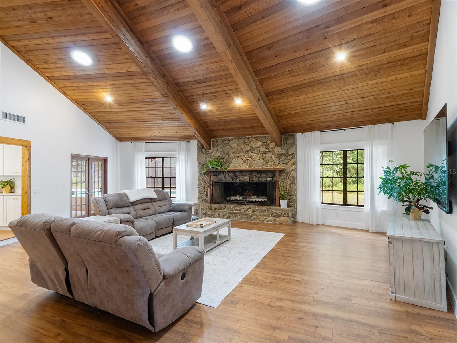 One or more photo(s) has been virtually staged. This one-of-kind Pool Home on over an acre of plush land is amazing in every way and is truly a must see! Floor plan, upgrades, enhancements and location! Nestled in the highly coveted Markham Woods sector of Lake Mary. NO HOA! This residence boasts an array of desirable features and completely renovated. Exterior freshly Painted! Four bedrooms with oversized primary bedroom to include detached in-law suite. Attached Garage is massive and almost a 3 car at 676 square feet. Additionally, a detached 2 car garage for your boat, golf cart, or additional vehicles and a new shed. As you enter the stunning foyer you are mesmerized by the beauty and flow of home. The charming staircase awaits you and opens up to a massive great room with beamed, vaulted ceilings and a magnificent wood burning fireplace for those occasional cool Florida nights. Split Floorplan, with two of the bedrooms on second floor each with walk-in and additional closets. A full bathroom offering privacy and convenience. Stunning, oversized primary bedroom on main floor. Substantial walk-in closet offering additional closet for more than ample storage. Breathtaking primary bathroom features separate dual sinks, mirrored vanity area and standalone walk-in shower and separate tub for luxurious relaxation. Large kitchen-family combo with amazing view in every room. Kitchen features stunning granite and pearl tone custom 42" cabinets - cushion close. High-end Stainless-Steel appliances, including a 5 burner Stove Top, two Ovens and versatile Microwave which also has conventional oven. Ceramic Farmer’s Sink adding functionality and style. The massive custom laundry room with built-in cabinetry, Farmhouse Sink and pantry. Gorgeous wood-like Mowhawk Laminate flooring throughout combining durability and elegance. No carpet. Closets and storage in abundance. Custom baseboards and throughout adding sophistication to every room. Spectacular light fixtures and ceiling fans with programmable remotes, enhancing comfort and style. High Vaulted Ceilings for a spacious feel and so bright and airy. The detached in-law suite is also perfect for media room, playroom or second office. Stained pine hardwood stairwell is simply breathtaking adding warmth and charm. This is the ideal entertainment home. Sliding doors bring you to the amazing lap pool with expansive covered lanai. Pool just refinished and surrounded by beautiful pavers. Just over an acre of mature landscaped land completely fenced for your fury family. What more could you ask for…Absolutely beautiful home, land, 4 car garage(s), in-law area build to suit your needs, and a shed. An abundant of storage options both inside and out. HVAC 2023. Tankless Water Heater 2024. Well Pressure Tank 2023. Filtration System for Entire Home 2024. Pool Resurfaced and New Deck 2023. Pool Screens 2025. Exterior Paint 2025. New Shed 2023. Roof 2015. New Flooring throughout 2024. Kitchen remodel 2024. Dawn Estates of Markham Woods is convenient to everything. I-4 and 417/ 429 minutes away for Disney or a day at the Beach. Wekiva River for kayaking and canoeing with walking/ biking trails and amazing parks, Minutes from Colonial Townpark Plaza. Offering supermarkets, restaurants, shopping and so much more. Down the street from Historical Downtown Sanford with park and weekly Farmer’s Market. Convenient SunRail. Excellent A-Rated Seminole County Schools. Call today for your private viewing before it’s too late.