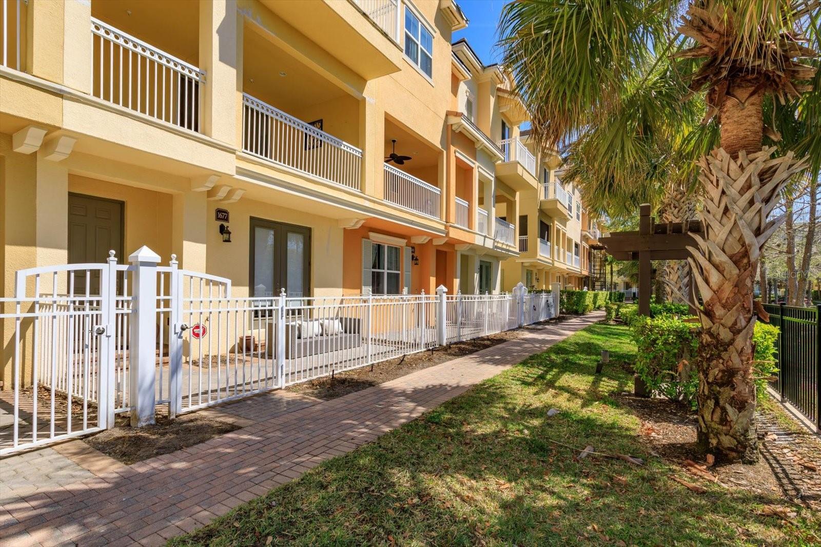 ELEGANT 3-Story Townhome on PRIME LOT! Only 2 Buildings are DIRECTLY ON LAKE with NO STREET BETWEEN YOU AND YOUR AMAZING LAKE VIEW! Also, this is 1 of 2 only Interior Buildings that have a DRIVEWAY TO ACCOMMODATE 2 CARS. Welcome to this stunning 3-story townhome located in the Luxurious Gated Community of GRANDE OAKS AT HEATHROW, where luxury and convenience thrive in the heart of Lake Mary. The Community Association Construction Project on this building is almost completed. NEW WINDOWS, BALCONY SLIDERS, ROOF, STUCCO, EXTERIOR PAINT, BALCONY, RAILINGS, GUTTERS/DOWNSPOUTS and LANDSCAPING & UPDATED PATIO FENCING to come. Great Time to Purchase! This impeccably designed 3 BEDROOM, 3.5 BATHROOM, PLUS BONUS ROOM AND 2 CAR GARAGE residence offers elevated living with style, space and sophistication at every turn. Step inside through a charming, landscaped PAVERED FRONT PATIO and instantly feel at home. The first floor has a Spacious Ground Floor Bonus/Den/Office with DOUBLE ENTRY DOORS. Also a second set of Double Doors that Lead to Patio. Can be used as a 4rd bedroom with its own Full Bath, Graced with Tile to Ceiling Shower and Comfort Height Vanity with Granite Counter. The second-floor main living area is the heart of the home, featuring a Kitchen, Living Room with Tray Ceiling and Dining Area layout all bathed in Natural Light, plus Half Bath. Step out onto your SPACIOUS BALCONY, perfect for morning coffee or evening relaxation with STUNNING LAKE VIEW! Inside, you’ll find TILE FLOORING throughout, PLUSH CARPET in the bedrooms and a BRIGHT, NEUTRAL PALETTE ideal for any interior design style. The chef’s kitchen boasts stunning GRANITE COUNTERTOPS, GE STAINLESS STEEL APPLIANCES, 42" WOOD CABINETS and MASSIVE KITCHEN ISLAND, SLEEK TILE BACKSPLASH and PANTRY, ideal for both everyday living and entertaining. Upstairs retreat to your Luxurious Master Suite, complete with TRAY CEILING, LARGE WALK-IN CLOSET and another PRIVATE BALCONY to enjoy your Stunning Lake View! ENSUITE has DUAL VANITIES, GRANITE COUNTERS and an elegant STAND-ALONE SHOWER designed to impress. There are 2 other Generously Sized Bedrooms that share a Full Bath. Laundry Closet is conveniently located on this floor as well. This layout is thoughtfully planned with privacy and function in mind, including a rear-facing 2 CAR GARAGE/EPOXY FINISH and Generous Storage throughout. The Grande Oaks at Heathrow Community offers resort-style amenities, including a CLUBHOUSE, SPARKLING POOL/SPA, FITNESS CENTER, TOT PARK and BASIC CABLE all included in HOA DUES! Exciting news in January FIBER INTERNET will be included in HOA DUES replacing basic cable. Located in one of Seminole County’s most desirable areas, this townhome is more than a home, it’s a lifestyle. Have peace of mind in this secure, Gated Neighborhood, nestled just minutes from I-4, 417, and 429. Walk to Colonial Townpark to enjoy upscale dining, shopping, and entertainment, or take a short drive, just 45 minutes, to soak in the sun at the beach. Don’t miss your chance to own this majestic retreat in Lake Mary. Call Today for your Private Showing, before it’s gone! This property may be under audio or visual surveillance!