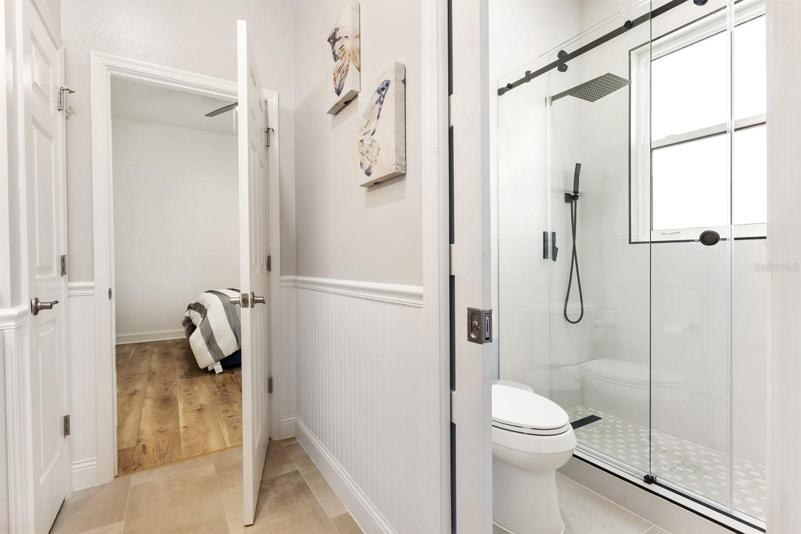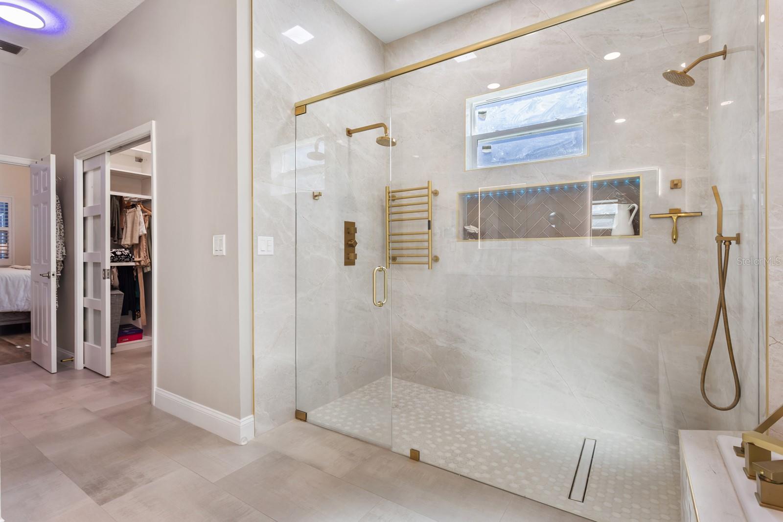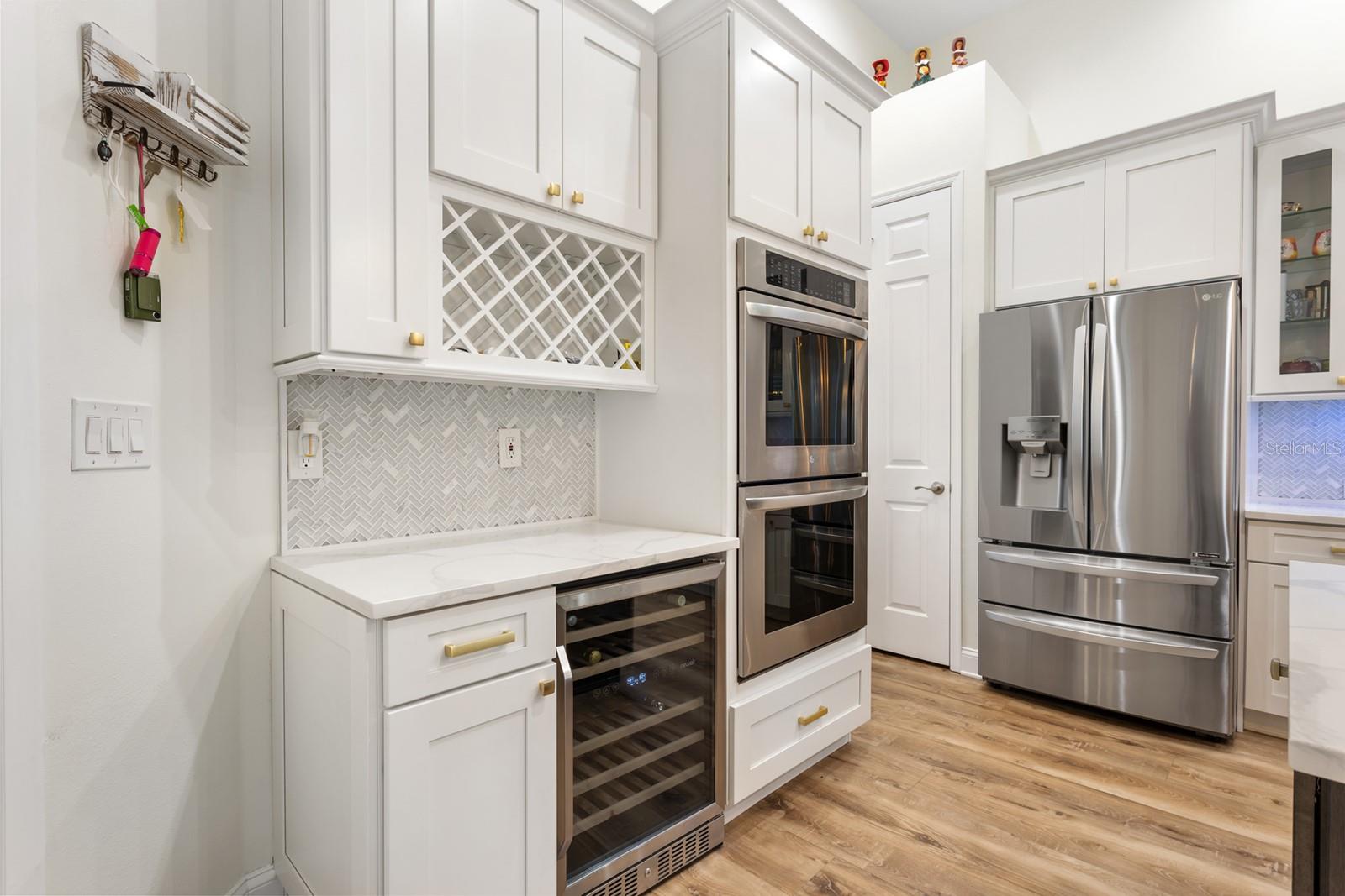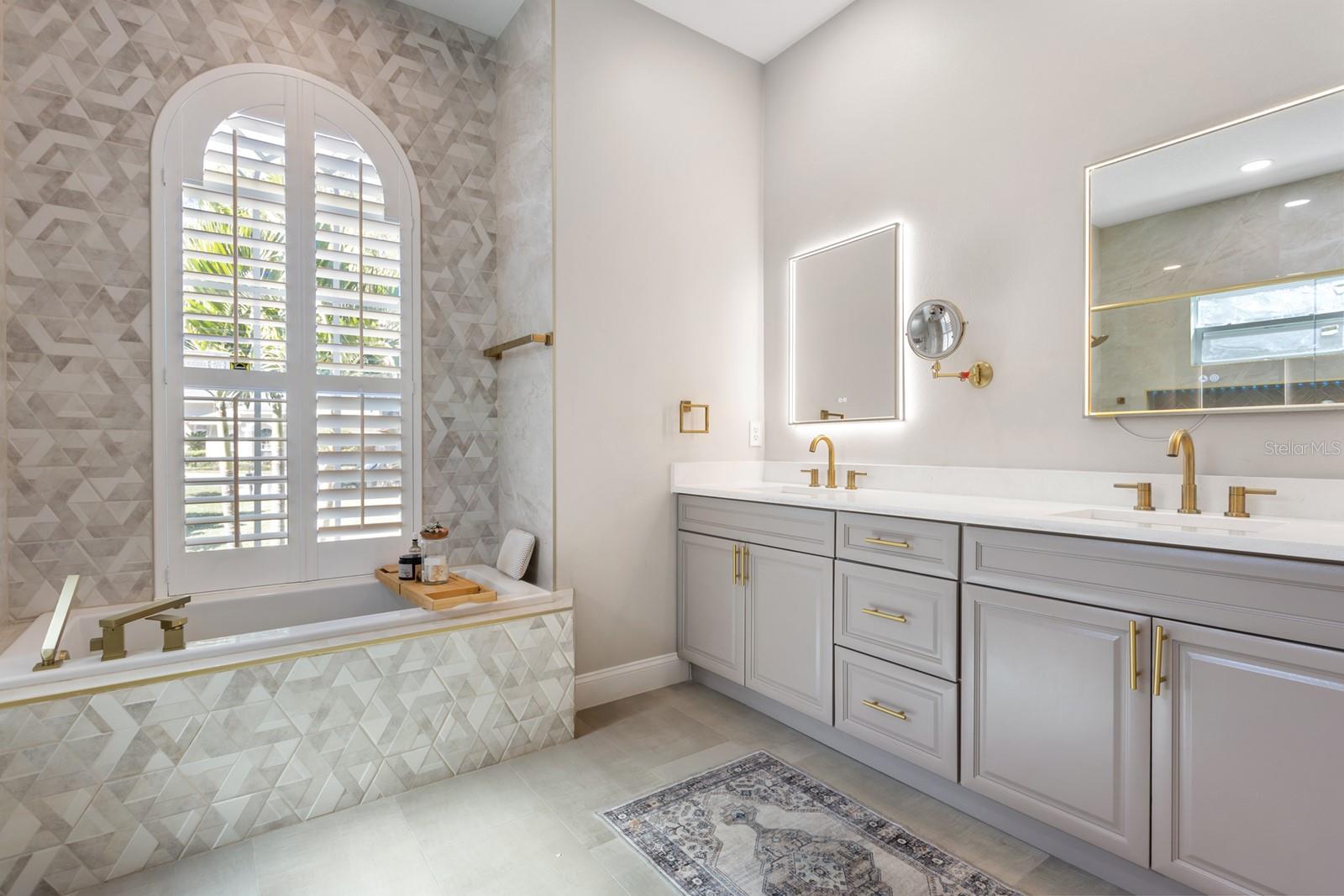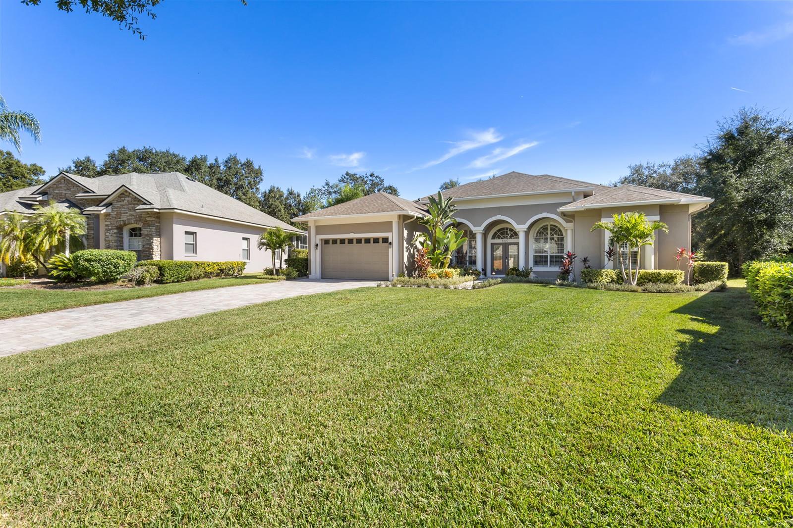 WYNTREE AT HEATHROW! Elegantly FULLY RENOVATED residence located in the prestigious, 24 hr man guarded GATED community of Heathrow. This modernized home sits on nearly 1/2 of an acre with a SALTWATER POOL powered by solar panels, a new water softening system 2024, custom lighting throughout, and a full irrigation and surround sound system for effortless indoor-outdoor living. The property features tinted windows, plantation shutters throughout, CUSTOM CLOSETS in EVERY BEDROOM, built-in dry bar in family room, lighted screen enclosure, water tank replaced in 2023 ensuring both comfort and efficiency. Every detail has been thoughtfully enhanced to deliver a move-in-ready experience with a clean, contemporary feel. This designer kitchen is the showpiece of the home, featuring custom white cabinetry, soft-close drawers, and gold hardware that adds a touch of elegance. A large oversized island with seating provides the perfect gathering space, complete with a contrasting dark finish for a high-end look. The gourmet kitchen includes built-in stainless steel appliances, a wall oven, microwave, and a beautifully integrated wine rack. Stunning pendant lighting, quartz countertops, and a sleek herringbone backsplash elevate the space, while wide-plank luxury Vinyl flooring brings warmth and continuity throughout. This open, bright layout flows seamlessly into the living areas, making it ideal for entertaining and everyday living. The home features elegant architectural details throughout, including crown molding, wainscoting, and 5-inch baseboards. The spacious primary suite offers dual walk-in closets, direct access to the lanai, and a well-appointed bathroom with a large shower, separate soaking tub, and dual vanities. Additional highlights include Jack-and-Jill bedrooms and a separate fourth bedroom with its own private bath—perfect for guests. Exterior was freshly painted in 2022, complemented by double glass leaded entry doors and triple glass sliders installed the same year. Nearly all windows have been replaced, with the exception of the kitchen nook. This home also offers security and access to Heathrow’s highly sought-after amenities.