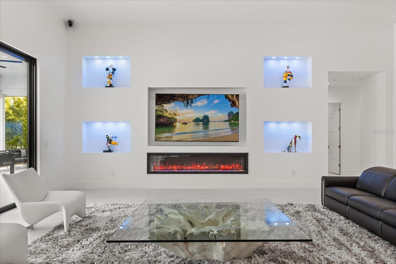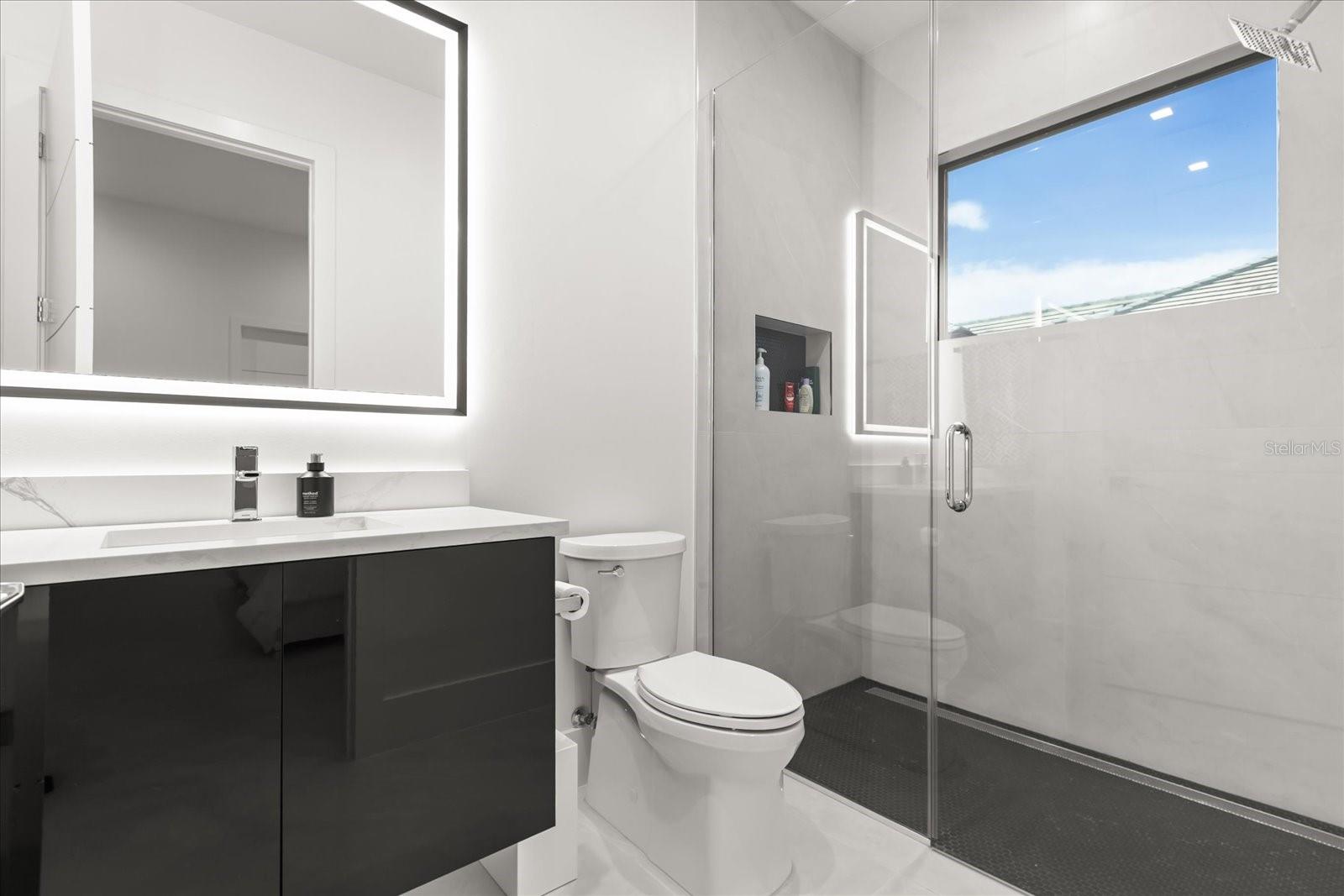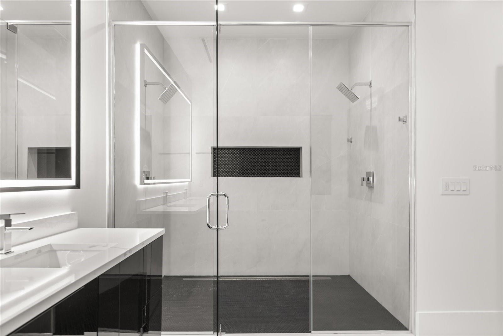 This custom-built, single-story masterpiece sits on just over an acre of manicured grounds in the heart of Lake Mary, offering an exceptional blend of modern elegance and everyday comfort. A 4-car garage with custom showroom floors and a turf-accented driveway sets the tone for the sophistication within. Inside, 48"x48" tile floors, level 5 drywall, soaring ceilings, and an open great room design create a dramatic yet inviting space for both grand entertaining and intimate gatherings. The show-stopping kitchen is a chef’s dream, featuring double quartz waterfall islands, top-of-the-line appliances including a gas cooktop and wine refrigerator, two dishwashers, and a hidden pantry. A glass enclosed wine display adds a striking focal point, while corner-sliding glass doors blur the line between indoor and outdoor living. The primary suite is a true private retreat, offering direct access to the back patio, a large custom walk-in closet, and a spa-inspired en-suite with an oversized walk-in shower featuring dual shower heads, and a double vanity. With five bedrooms—including one currently used as a sophisticated home office—and a large bonus/media room, this home offers remarkable flexibility. Automatic window shades, a security-ready office setup, two secondary bedrooms with private en suites, and an oversized “Costco” closet with a well-appointed laundry room add practical luxury. Step outside to an expansive lanai with hurricane-rated motorized screens, an outdoor kitchen, and a resort-style saltwater pool with basketball hoop and turf-lined deck, all framed by lush palm and bamboo landscaping for ultimate privacy. Located minutes from A-rated schools, upscale shopping, and fine dining, ready for you to move in and begin living the Lake Mary lifestyle at its finest.