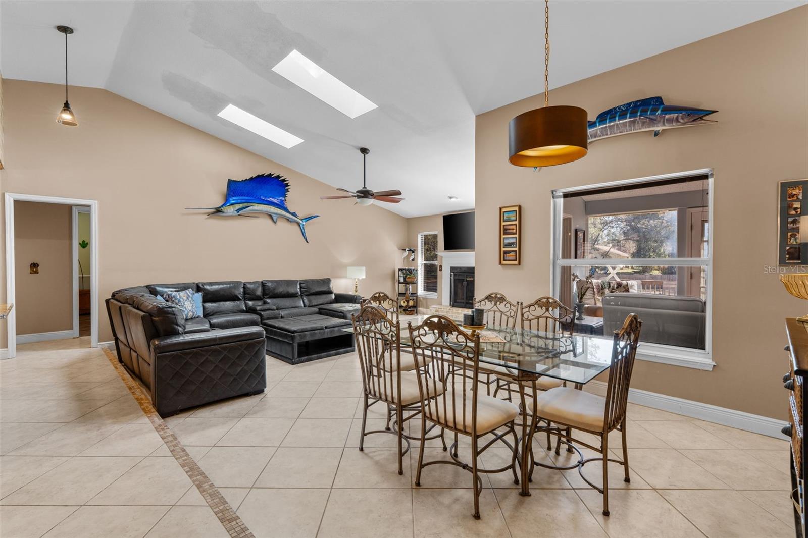 Here’s your opportunity to live in the much sought after Cardinal Oaks neighborhood. This beautiful home sits on .65 acres. As you enter the home you immediately notice the open floor plan and ample natural lighting. The kitchen has a large stone island with cooktop perfect for the chef in you. Built in oven with stone tiles throughout the kitchen, tile floors, wood ceiling, soft close drawers, stainless steel appliances, wet bar have all the makings of a custom kitchen. The living room has a fireplace perfect for those cold winter nights. The primary bedroom is located on the opposite side of the other 3 bedrooms and has hardwood floors and a bathroom with separate vanity sinks, a walk-in shower and large walk-in closet. French doors lead you onto the large raised desk out back which overlooks a sprawling green space. A large, majestic oak is incorporated into the deck and providers perfect shade on those warm summer days. The perfect place for cookouts and enjoying the Florida weather. The Florida sun room with hardwood floors is perfect for relaxing or as a home office. Come see this gem and make it your own retreat.