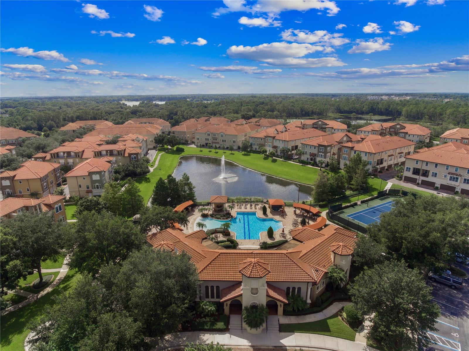 Come see one of the most desirable units in Fountain Park. With only a handful built, this 4 story unit features 3 private terraces for sitting outside and looking over the beautiful grounds and the surrounding area. A feature rarely found in condo's or townhomes. And if you're not into walking up stairs, no worries, each floor can be accessed by your own private elevator. Recently inspected, this units elevator has been full serviced and is completely updated to be safe and dependable. If a beautiful Kitchen is your wish, this one is not to be missed. Recently remodeled, it features all Stainless appliances, dark elegant wood cabinets all accented with a marble backsplash set behind the Quartz counter tops. You'll also find a large Island that comfortably seats 4 and provides extra storage and the pull out microwave. The living room is next to the kitchen which makes for a great entertaining space. Crown Molding and Hard wood floors are used in the main areas of the house with Tile for the floors and granite counter tops in the 4.5 baths rooms. Designed to allow for flexible and or multi generational living, the floor plan a ground floor bedroom with ensuite bath can also be used as an in-law suite or as an office. The bonus room on the upper level also has a full bath and 2 of the terraces are adjoining. The larger rear terrace has power and water that could be used for a summer kitchen. If it's amenities and easy of living you're after, Fountain Park might be for you. With a large Clubhouse, on site management, guarded entry front gate, resort style pool, fitness gym, walking trails, Dog Walk park, tennis and Pickleball, and more, you'll find something for almost everyone. Located in the heart of Central Florida, you're within an hour of the theme parks, the beach, and many more local attractions. And not to be forgotten are our 3 hospitals within 10 minutes of your front gate. So if you're looking for a luxury life style, you need to come see 4516 Messina Dr.