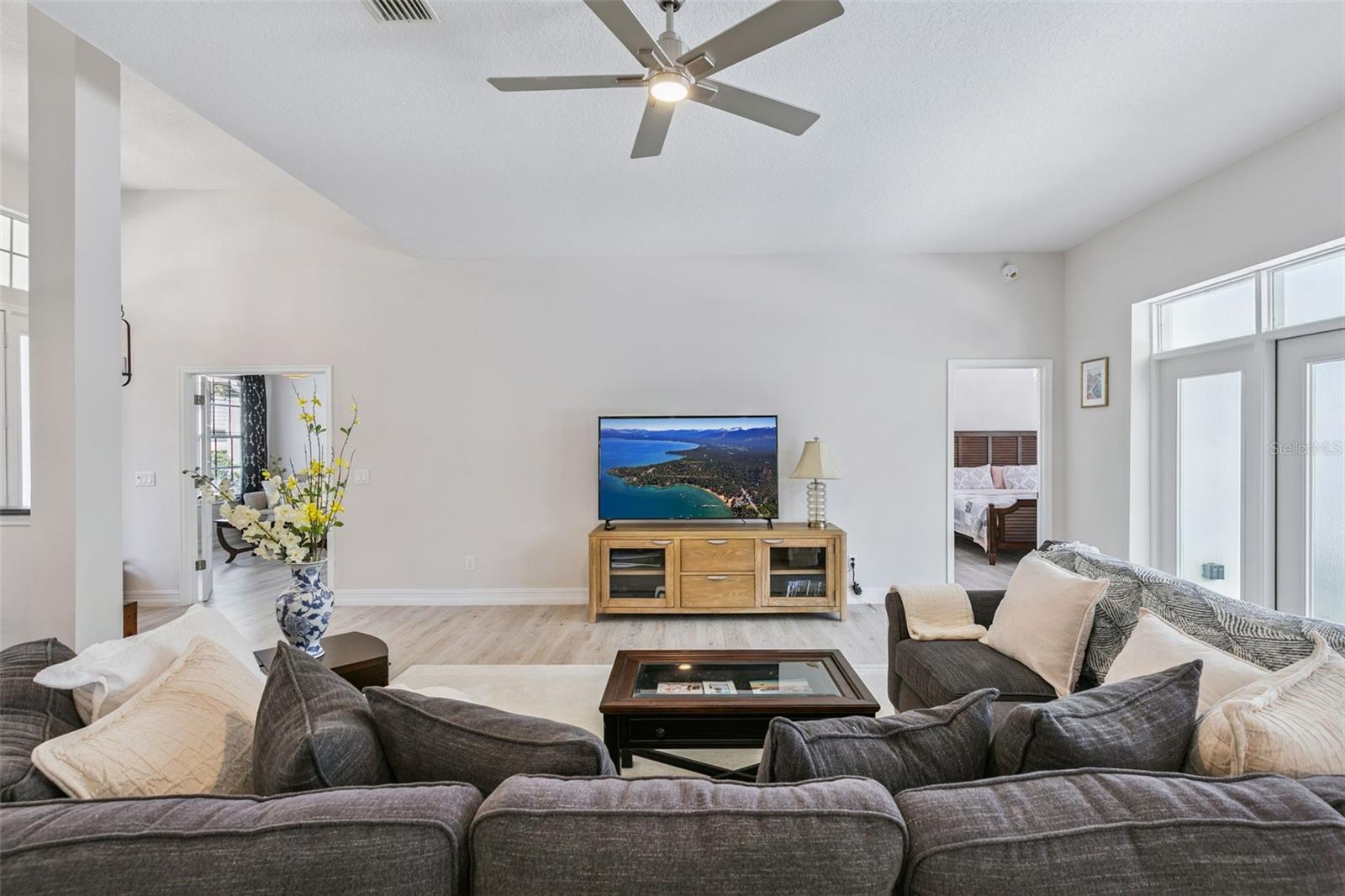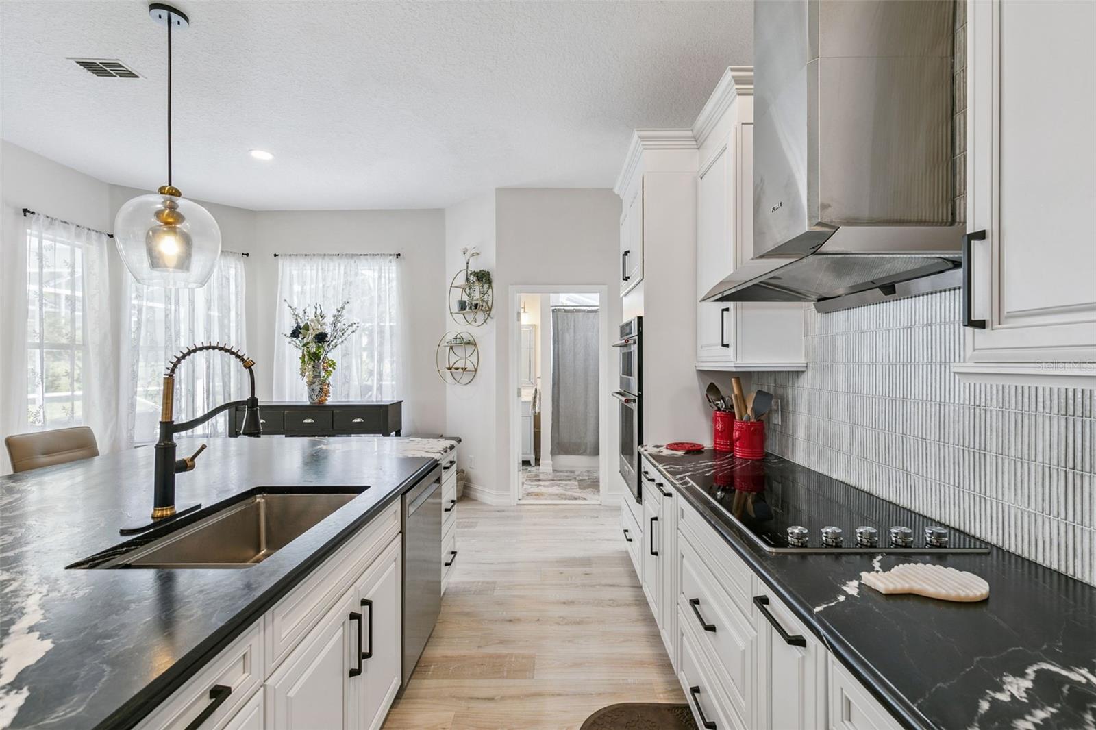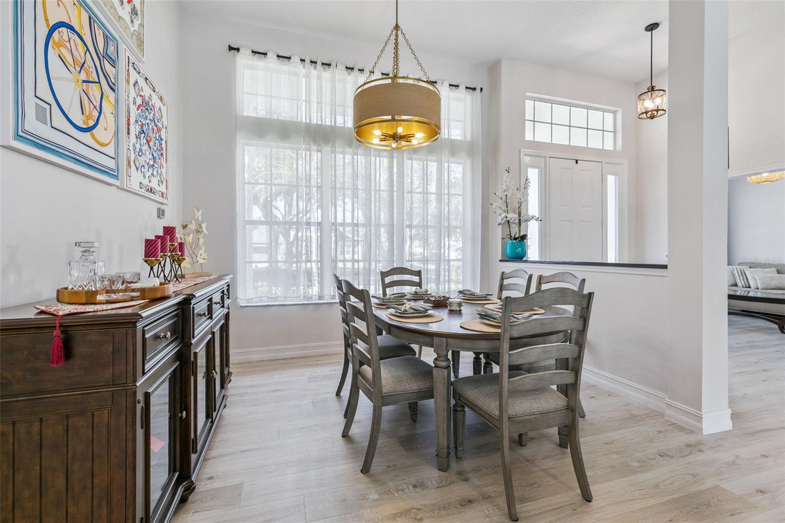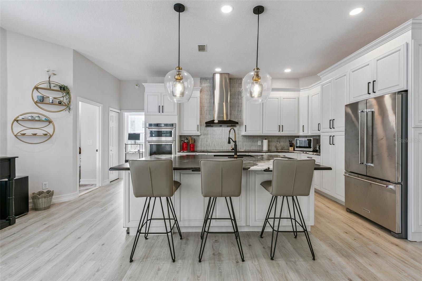 Expect to be impressed with this Completely Renovated Heathrow Pool Home. This home features 4 bedrooms, 3 bathrooms plus an Executive Office. Gourmet Kitchen with large granite island and countertops, New cabinetry, KitchenAid Stainless Steel Appliances to include refrigerator, microwave, dishwasher, oven, cooktop, and wine refrigerator. Open Floorplan with bedrooms in every corner for privacy. Executive office in the front of the home with French doors. Dining Room to the right as you enter. Then you have this amazing open space for the great room and Showcase Kitchen. Light and Bright Home. French Doors lead to the Screened lanai with pool and spa. Freshly painted interior and exterior. Great curb appeal. New flooring throughout includes luxury vinyl in the main areas and bedrooms. All bathrooms have large exotic porcelain tile. The primary bathroom updated with porcelain tile on the floors and in the expanded large shower with rain shower head. Walk in organized closet with barn door. Dual vanities with Quartzite exotic countertop. Updated lighting and fixtures throughout. You don't want to miss this one! This home may be under audio and video surveillance. Heathrow is a guard gated and highly respected neighborhood in Lake Mary. Heathrow Country Club offers optional memberships for a private pool, golf course, tennis courts, and pickleball. Close to I4 and 417 access, restaurants, hospitals, and shopping.
