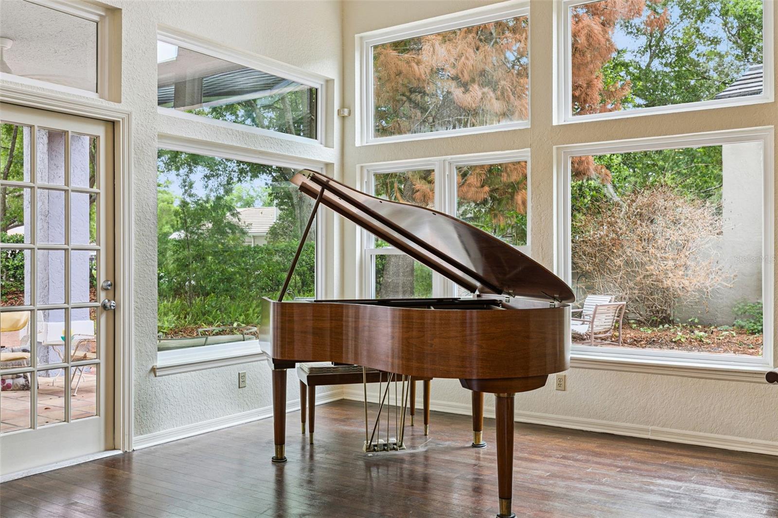 Welcome to Heathrow's Devon Green. A single family home located near the Heathrow Golf Course. This home features three bedrooms with three and a half bathrooms. As of 2026, Brand New Double Pane Windows throughout the 2 story home and fresh interior paint. As you enter, you see the light and bright home with windows that extend 2 stories. Living room with hardwood flooring and double sided fireplace shared with the formal dining room. Gourmet Kitchen with granite countertops, stainless steel appliances, and wood cabinetry. Family room off the kitchen. Downstairs you have one bedroom with private bathroom. And upstairs you have the primary suite and another bedroom with its private bathroom. Primary Suite has an enclosed balcony with golf course views. The outside open lanai is amazing for entertaining. This open space is expansive with some covered area as well. New HVAC August 2025 with warranty transferring to the buyer. This home may be under audio and video surveillance. Come preview this move in ready home today! Heathrow is a highly desired gated golf course community with an exclusive Country Club. 18 hole Golf course designed by Ron Garl just minutes from your front door. Highly rated School System.