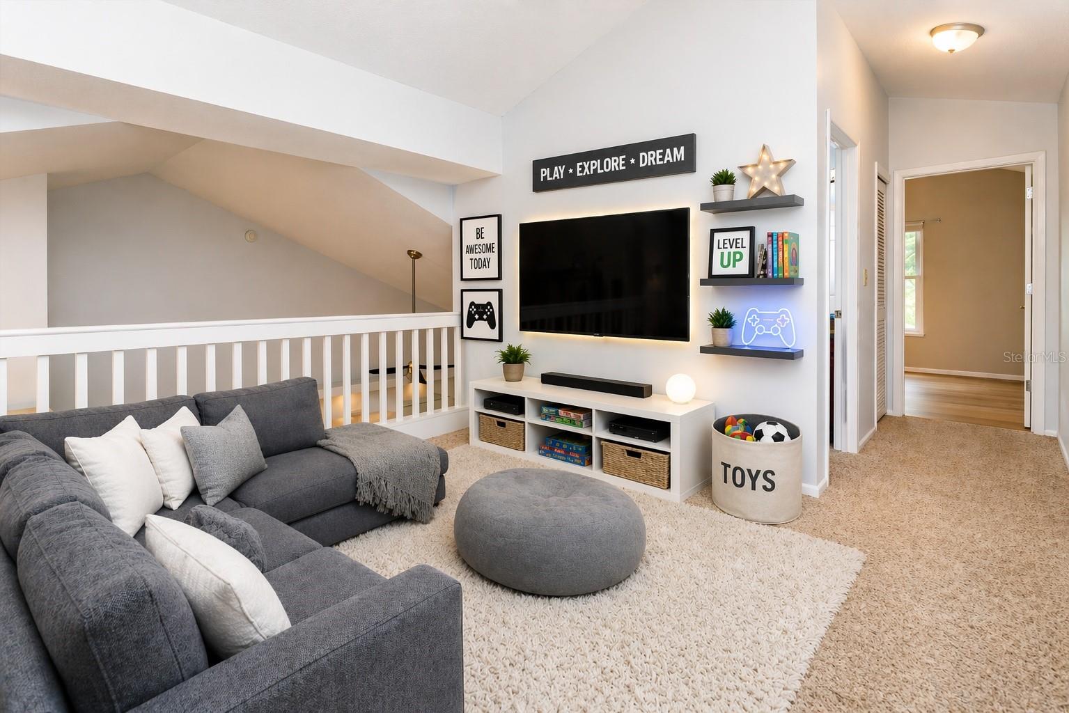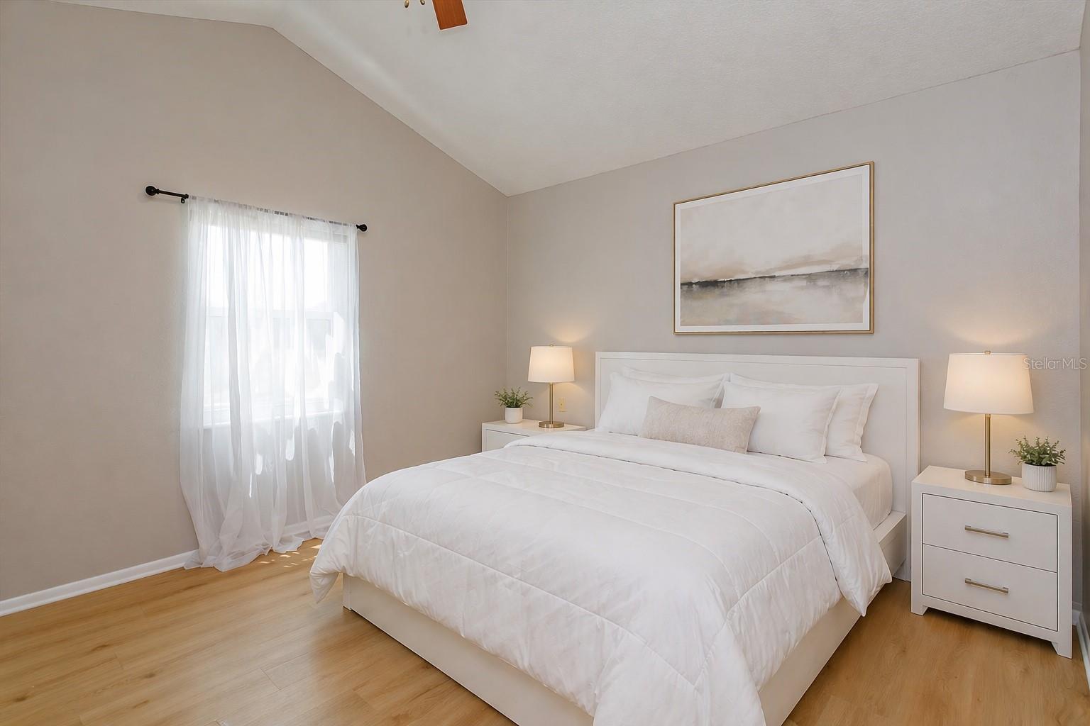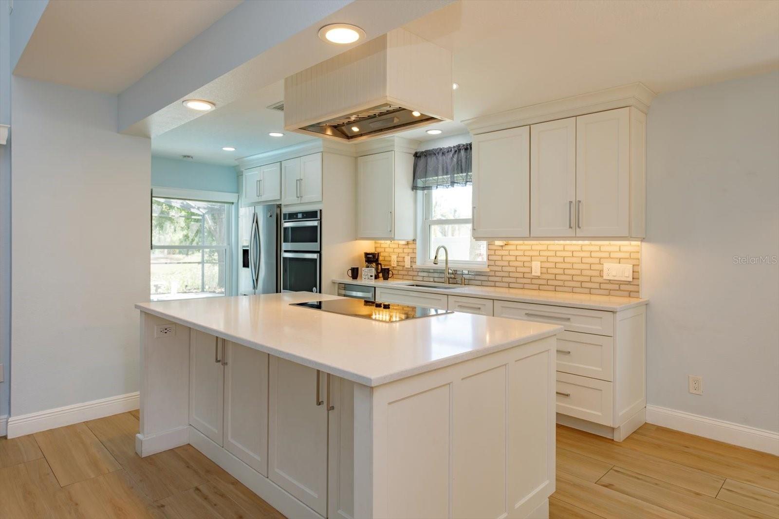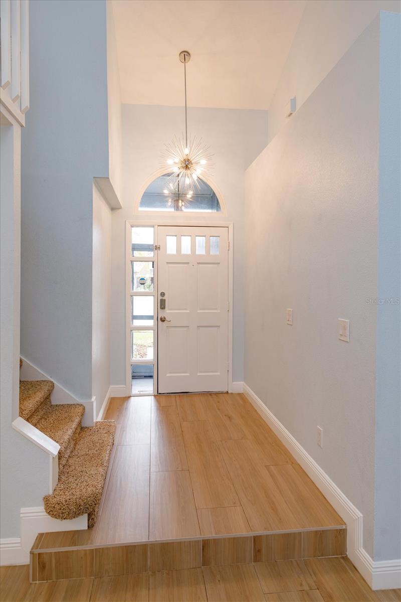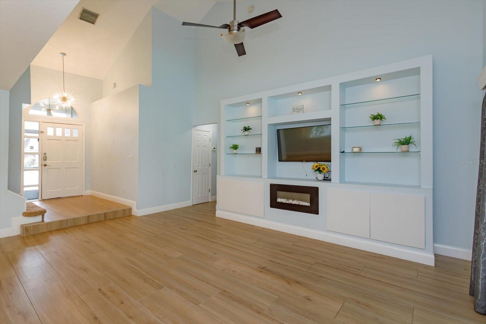 One or more photo(s) has been virtually staged. YOUR OWN BACKYARD OASIS! Beautifully updated and renovated Lake Mary home with water views on a cul-de-sac! Move-in ready home featuring a screen enclosed solar heated SALTWATER POOL with color changing pool light and a built-in cleaning system. Outdoor living is elevated with an expansive PAVER PATIO including fire pit, outdoor kitchen, prewire for hot tub, dog friendly PUTTING GREEN and lush landscaping with outdoor lighting. SERENE WATER VIEWS create an unforgettable setting! The completely RENOVATED KITCHEN offers 42 inch cabinetry with soft close drawers, QUARTZ COUNTERS, designer backsplash, stainless steel appliances including induction cooktop and built in oven. The open floor plan showcases wood-look tile flooring, a built-in entertainment center with electric FIREPLACE and designer finishes. Downstairs primary suite includes vaulted ceilings, custom walk-in closet, and a luxurious bath with dual vanities, soaking tub, walk-in shower plus direct pool access. Upstairs LOFT plus 2 freshly painted bedrooms with laminate wood flooring. Flexible layout features private downstairs office with closet/4th bedroom. Major updates include Roof (2022), A/C (2023), DOUBLE PANE WINDOWS AND SLIDERS with hurricane-impact (2018), and exterior paint (2020). Additional features include water softener, paver driveway, and outdoor shower. Great Lake Mary location near top-rated schools, Seminole Trail, shopping, and dining. READY TO MOVE IN NOW!