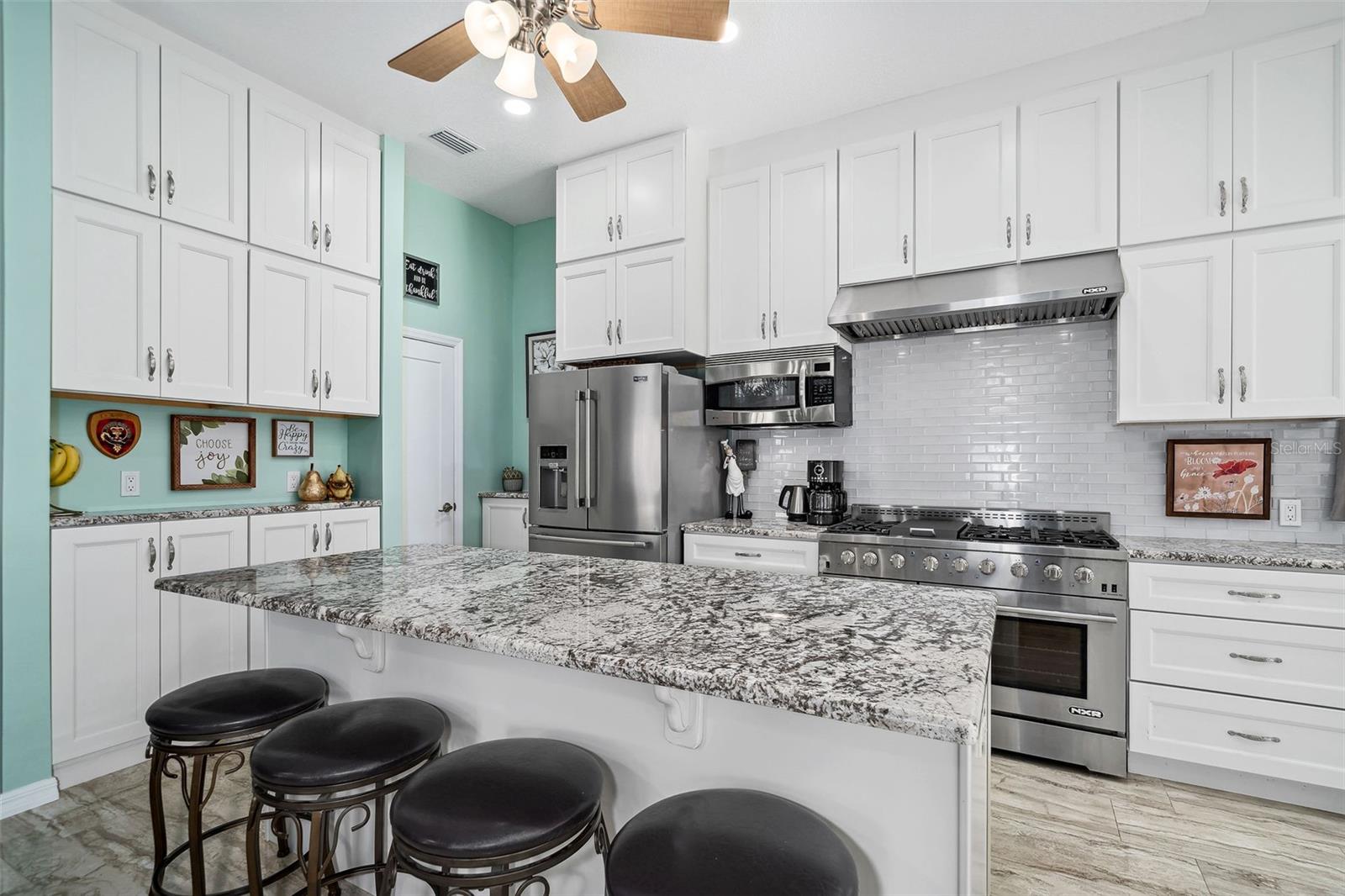 This beautifully landscaped four-bedroom home with large office was completely renovated and updated (2022), ROOF RECENTLY INSPECTED..offering 12 ft.ceilings in main rooms and in office, a spacious kitchen with 14 drawers, 23 cabinets, a self-lighting walk-in pantry, wine cooler, instant hot, new appliances, gas cooking, microwave/convention oven, granite counters, and huge island. Laundry/craft room features 8 cabinets, 9 drawers and 9 ft. counter. Gigantic family room has new gas fireplace and 12 ft.windows. Three linen closets, two hall closets, and a step-in closet in the master bath offer abundant storage, in addition to walk-in master closet. All new insulation, AC ductwork, and ceilings fans throughout (2022) keep this executive home comfortable year-round. All new lights and electric panel make for carefree future maintenance. Large living room opens into lanai thru 12 ft. pocket sliders. Dining room easily seats 10. Spacious covered lanai and large wet bar offer gracious outdoor entertaining around screened 15x35 salt water/solar heated pool 4ft. deep—great for pool games and keeping young children safe. Pool rescreened with special UV protective screen and refinished (2022) with all new equipment. Pool area features enclosed storage for pool and yard supplies and equipment. Two of the large secondary bedrooms open onto the pool through pocket slider. Large yard is beautifully landscaped and has an all-new (2022) sprinkler system. Oversized two-car garage has heavy-duty vinyl flooring, 17’ft.of enclosed floor to-ceiling storage- and space for a workbench. Sellers are willing to participate in Buyers loan buy down program..this could be your house and your deal !