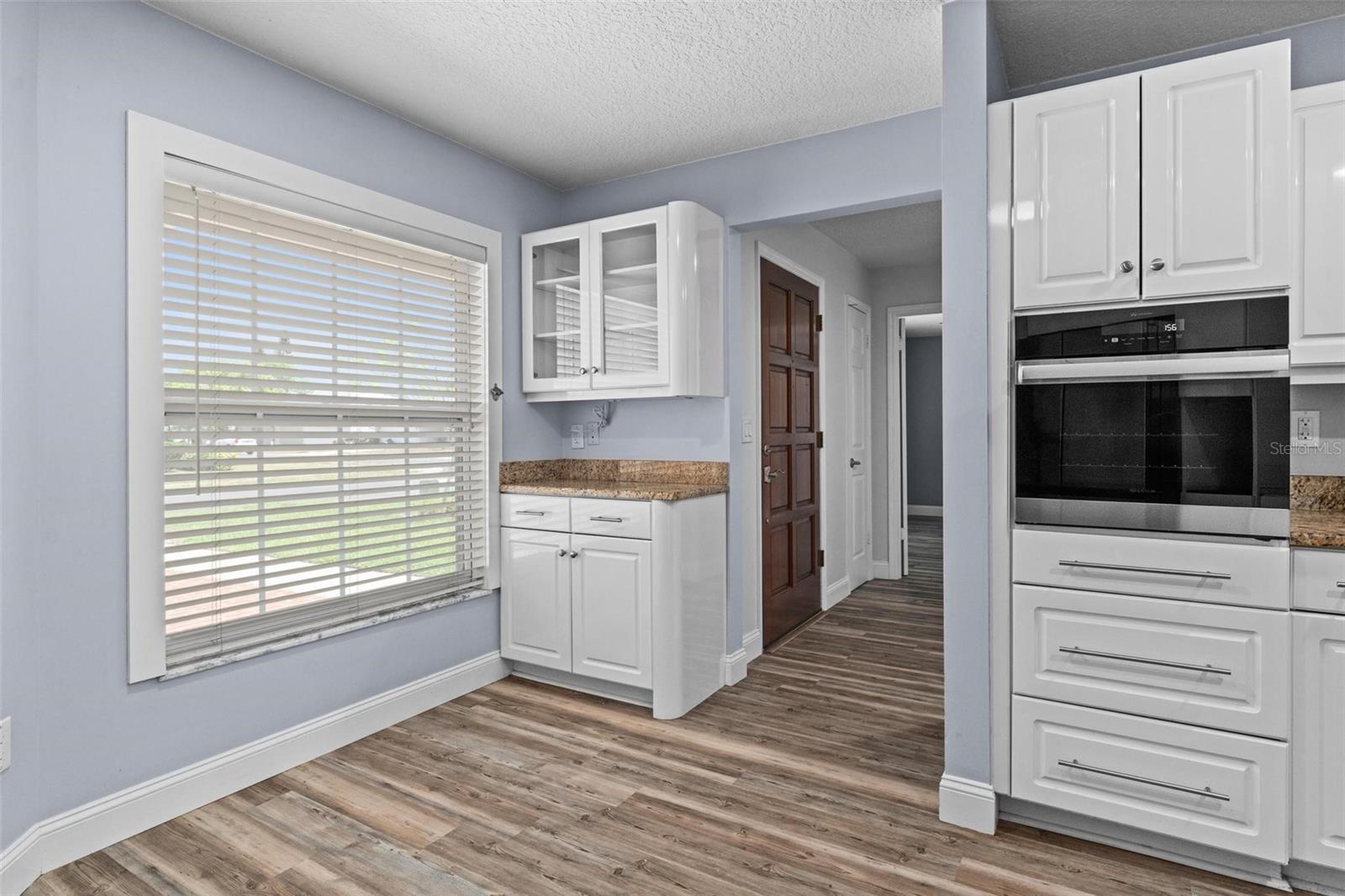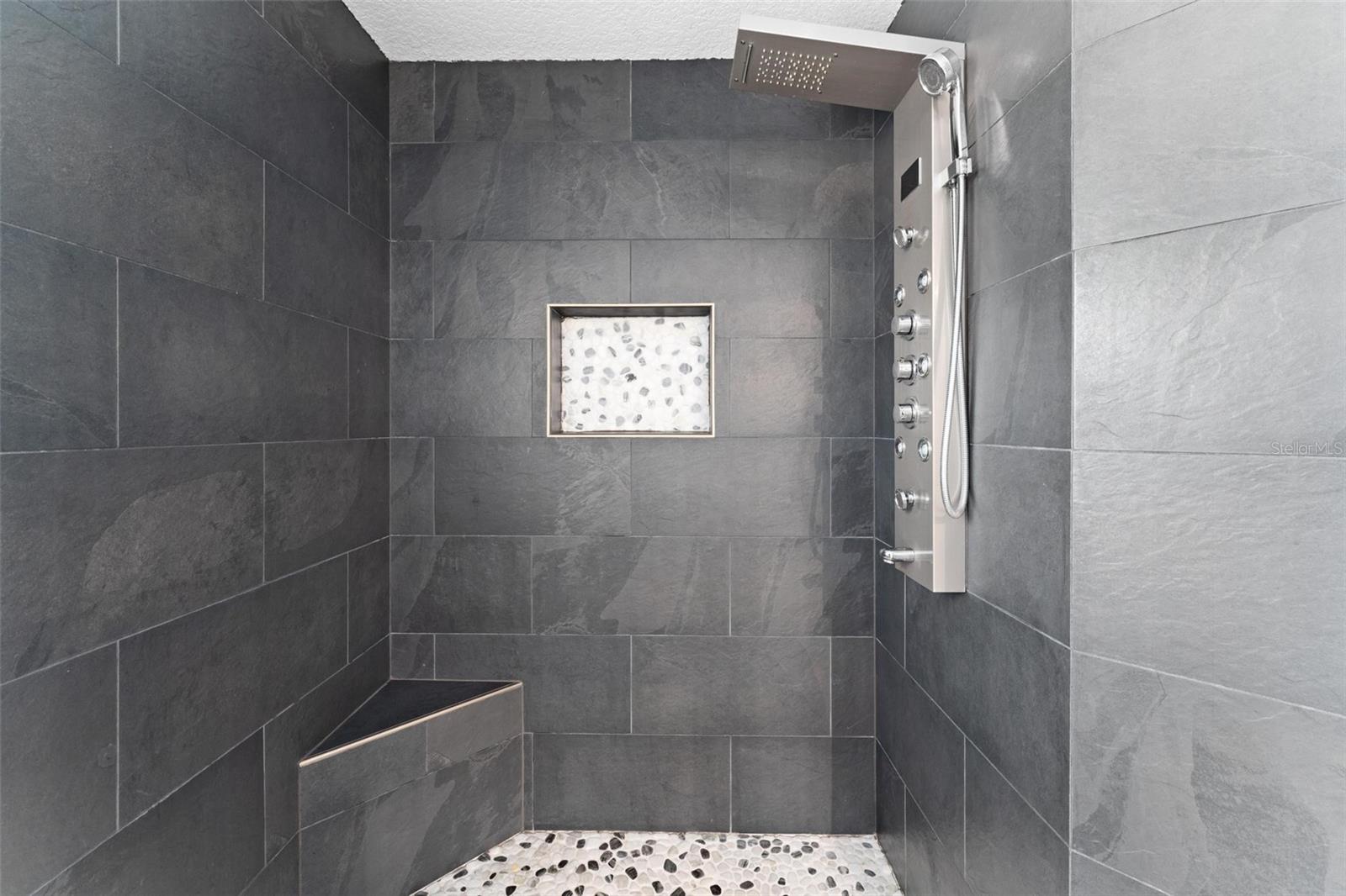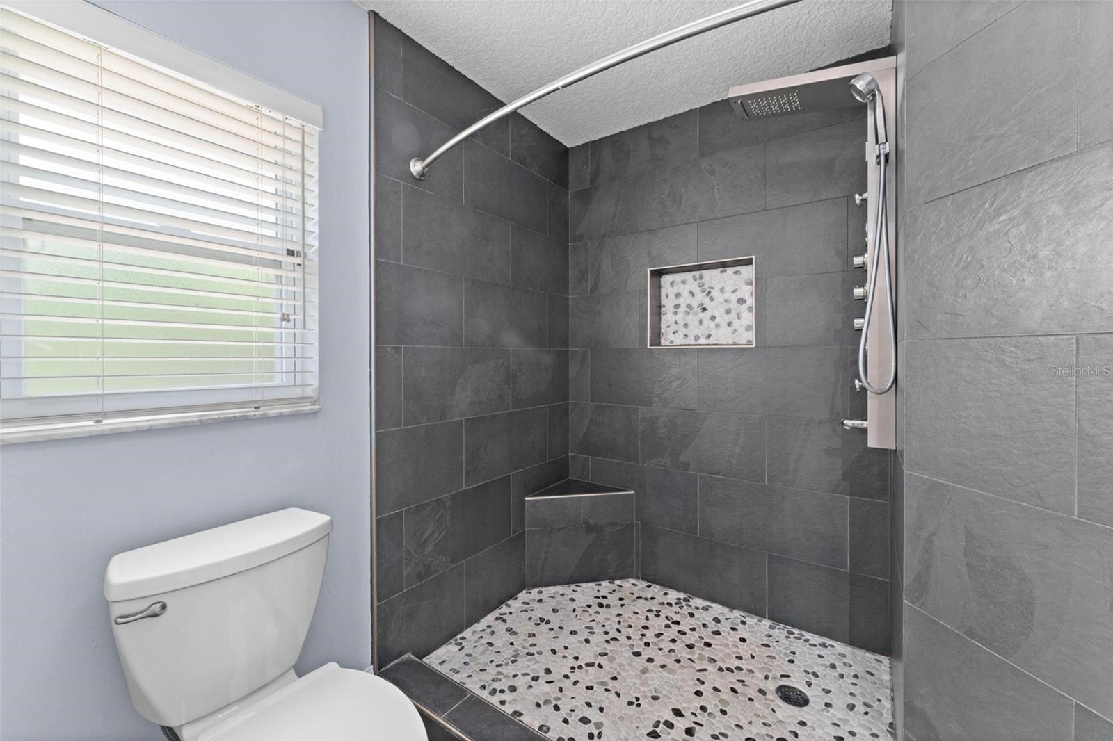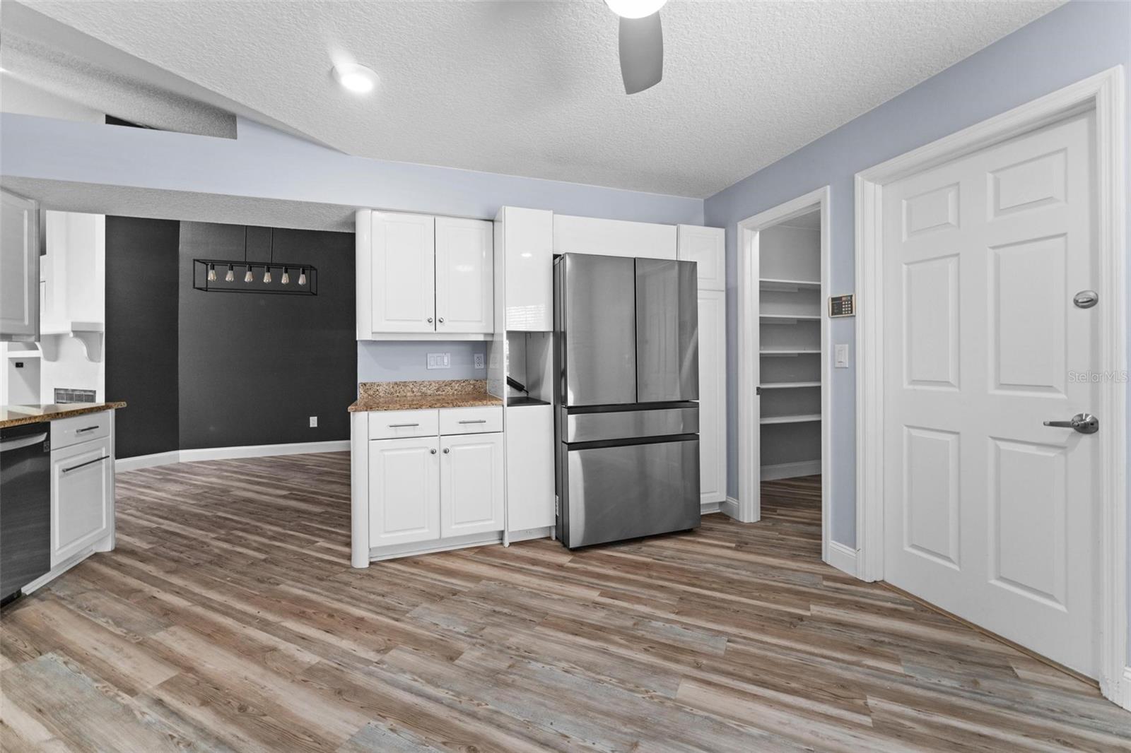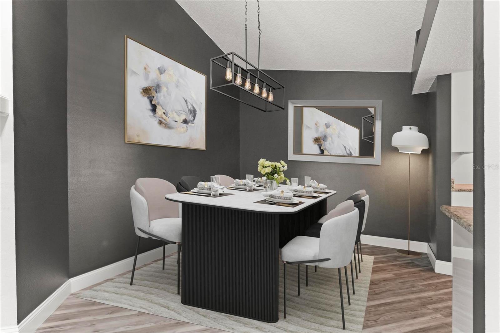 One or more photo(s) has been virtually staged. Nestled in the desirable Lakewood at the Crossings community, this meticulously maintained 4-bedroom, 2-bathroom pool home offers a serene retreat with modern amenities. The home features a split floor plan, providing privacy and comfort for all residents. The expansive living room boasts high ceilings, a wood-burning fireplace, and built-in surround sound, creating an inviting atmosphere. Sliding doors lead to an enclosed patio that overlooks a lush, tropical pool area, perfect for relaxation and entertaining. The spacious primary suite features French doors that open to the enclosed patio, offering pool views. The ensuite bathroom is a spa-like haven, complete with an upgraded double vanity with granite counters, modern lighting, and faucets. Two separate step-in closets provide generous storage, and the updated step-in shower includes a rain shower head and multiple shower options for a luxurious experience. NEWER ROOF (April 2022) HVAC (2015) with newer compressor, blower & A frame coil (2017), Water softener (2019), Exterior paint Sherwin Williams (2017), Dual Pane Low E windows (2006). Conveniently located just minutes from top rated schools,