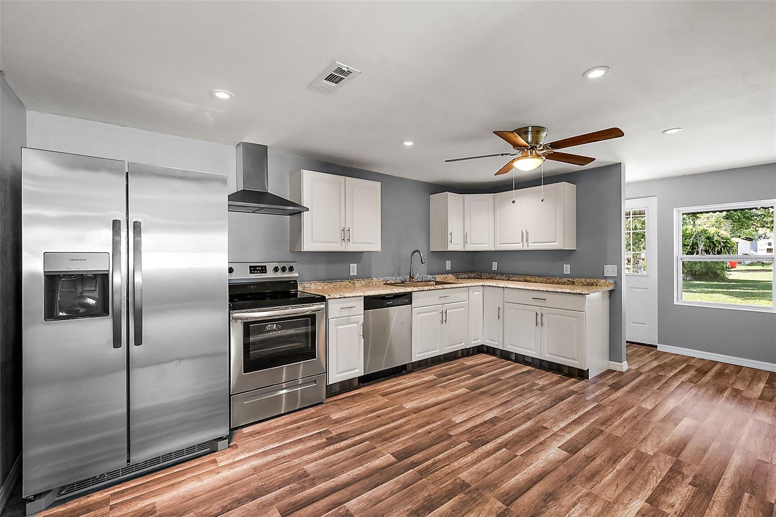 PRICE IMPROVEMENT. Welcome to this beautiful completely renovated home. This is 3 bedrooms, 1 bathroom, screen room with 2 parcels over 1/2 acre and no HOA so bring your boats and have enough room to park RV. Great for 1st time home buyer. All rooms have laminate floor and bathroom has new bath tub, toilet and vanity. Beautiful kitchen with laminate counter top, cabinets, new appliances, Range with Rangehood. Separate laundry room. The interior and exterior of the house is freshly painted. Also, the house is completely rewired and has upgraded electric panel, new water heater, new base board, trim and much more. Additional parcel has a garage or work shop that can be used as a storage. Conveniently located less than 10 miles from 1-75 and an excellent area near the neighborhood boat ramp to Withlacoochee River and Lake Panasoffkee for a great fishing and boating experience. Set up your appointment today.