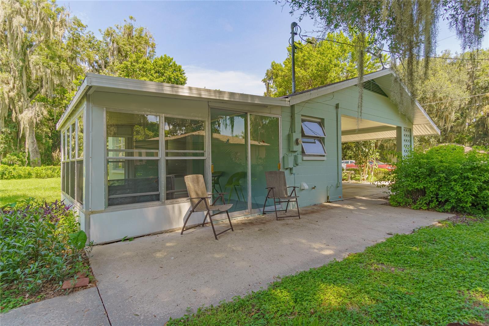 Rent or Buy! This charming and furnished Block Home located in the wonderful community of Tracys Point is being offered as both a rental and for purchase. With 2 Bedrooms 1.5 Baths and a modest 906 SqFt, you're afforded all the space you need and none you don't, allowing for easy upkeep and comfortable living. Home features include a built in carport, enclosed back porch, fenced in yard, and a utility shed. As a rental, 2 small animals will be allowed with a non refundable deposit, no smoking, 6 or 12 month lease. Lake Panasoffkee offers an A+ elementary school, Amazing Local Restaurants, and a true Spring-fed lake that is one of Florida's best hot spots for largemouth bass, bluegill, sunfish, and catfish. Enjoy Rural Living while being minutes from I-75, allowing easy commute to Orlando, Gainesville, Tampa, and The Villages.