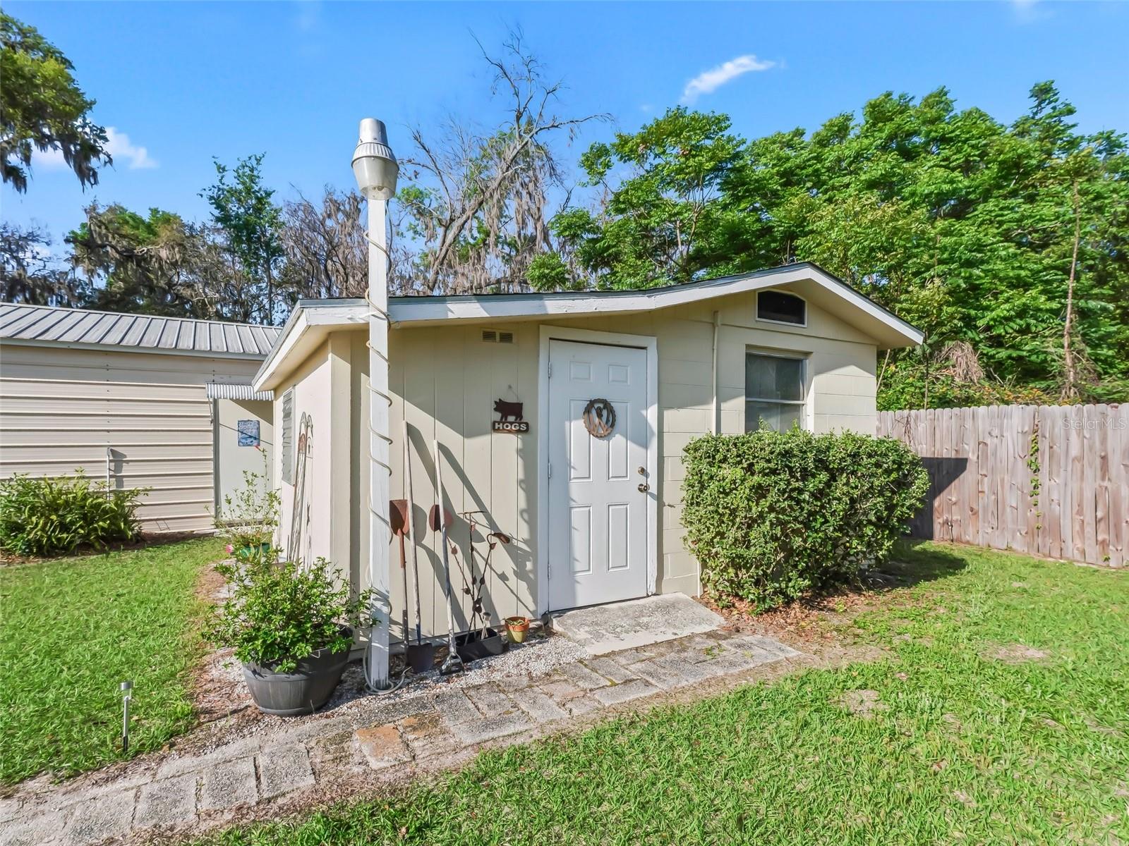 Two-bedroom with den, one bath home located in Tracy’s Point subdivision. Sitting on a little over half an acre, this home would make a great addition to your life. The home opens with a large living room leading into the kitchen. The kitchen has Silestone countertops/ backsplash, new soft close cabinets and a breakfast nook. All wood flooring except for both bedrooms, which have carpet flooring. The bathroom was updated with a new walk-in shower. The home has a laundry/utility room.12x14 Screened patio. The star of the home is the 24 x 36 RV shed with water and 30 amp electricity. Home has Generac generator. There is also a storage shed in the backyard with a fully functioning bathroom. Workshop /Open Carport ready for your Man Cave. The home is completely fenced with solar gate. A/C 2020, Metal Roof 2014. The home is located in Lake Panasoffkee which is a great fishing spot. Home is easy drive to The Villages and major Highways such as I-75, Florida Turnpike, and US 301. Approximately one hour from Orlando, & Tampa. Come and check out this place today!