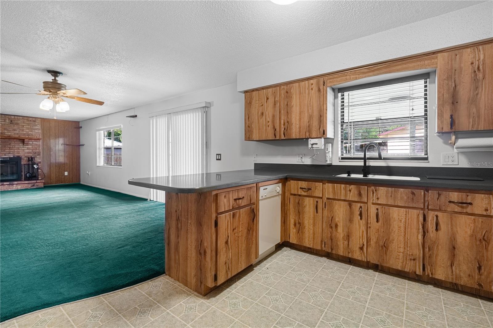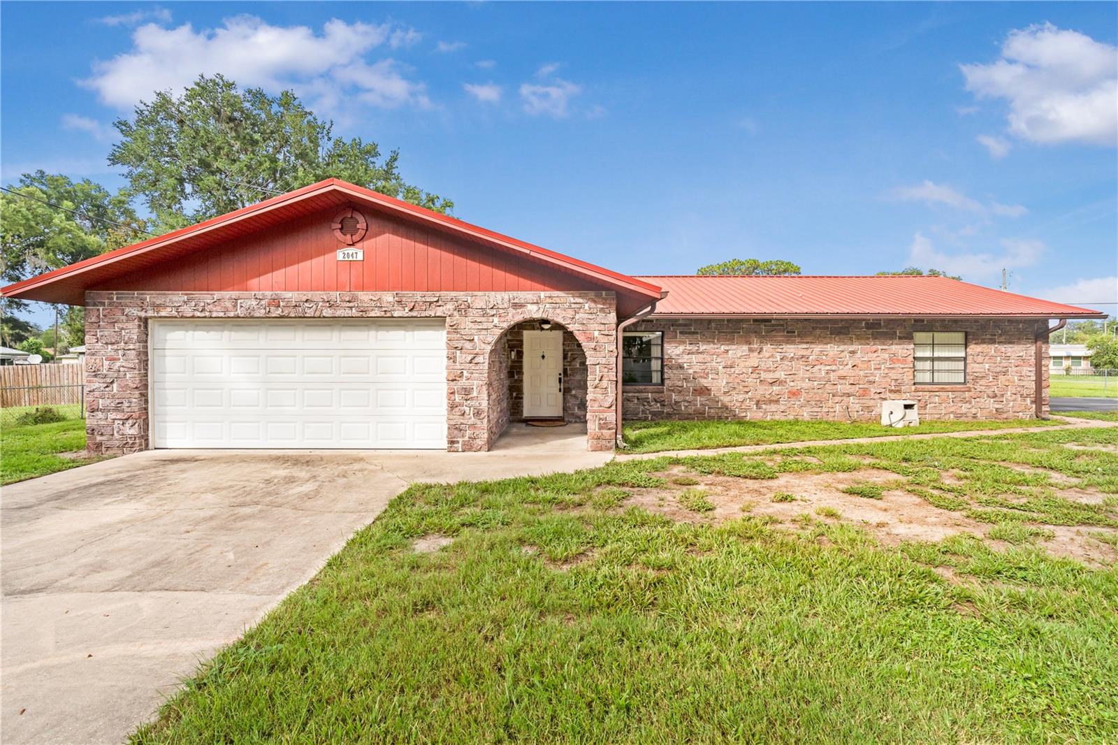 Discover this charming two-bedroom, two-bathroom block, faux brick home, ideally situated on a spacious corner lot in the highly sought-after Tracy’s Point neighborhood of Lake Panasoffkee. Fully fenced with two driveways and a two-car garage, this property offers both privacy and convenience. The home features a durable metal roof installed in 2005, an HVAC system from 2005, and a water heater updated in 2018. Enjoy cozy evenings by the electric fireplace or relax in the enclosed lanai. The kitchen is complete with an eat-in bar, a built-in oven and upgraded appliances. The garage is equipped with a slip resistant rubber floor covering, a split mini-AC unit, a ceiling fan, and houses the laundry for added functionality. Spanning over a quarter of an acre, the expansive yard provides ample space for outdoor activities. Perfectly located between Lake Panasoffkee and the Withlacoochee River, and just off I-75, this home offers quick access to the Gulf Coast, as well as proximity to the turnpike for easy travel to amusement parks and airports. Don’t miss the opportunity to own a piece of this premier lakeside community!