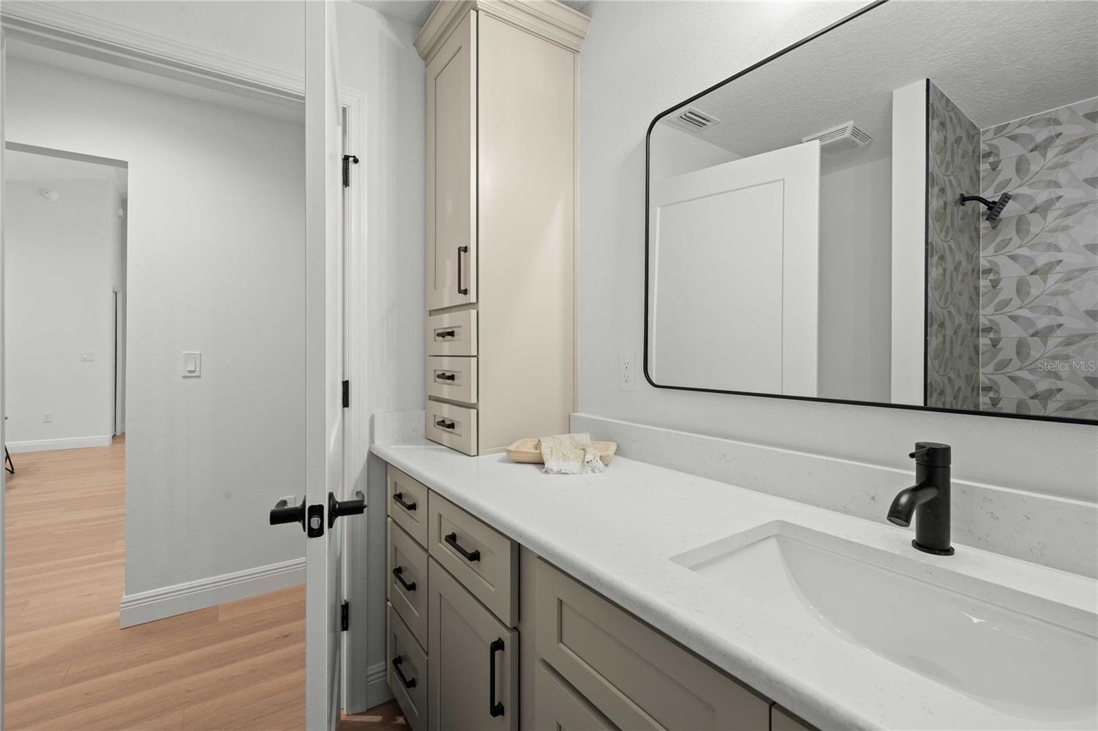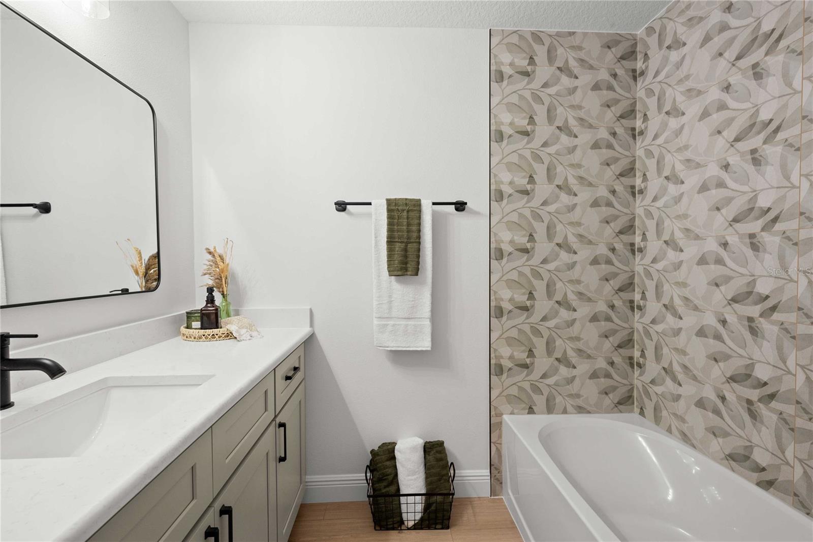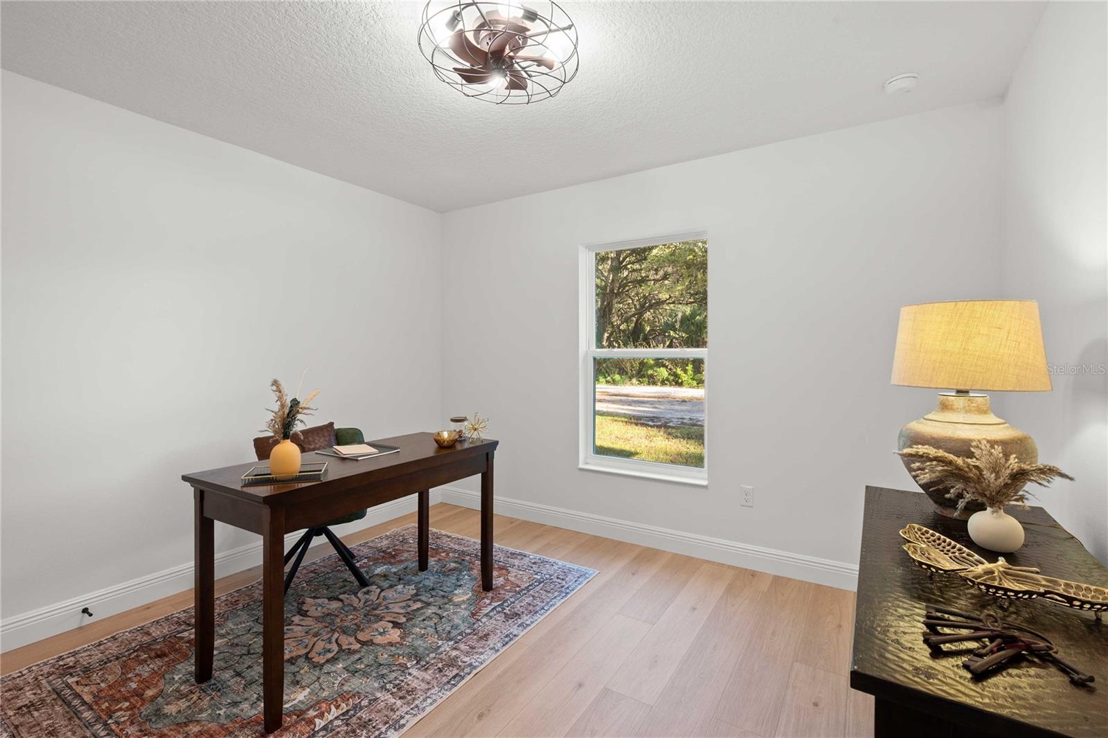Custom-Built New Construction on 1.1 Acres Welcome to your brand-new dream home, tucked away at the peaceful end of the road. This custom home was thoughtfully designed and beautifully staged by AS Collective Homes LLC, offering a perfect blend of charm, comfort, and functionality. From the moment you arrive, you’ll notice the rough-cut cedar shutters and cedar-wrapped pillars, setting the tone for the craftsmanship throughout. Be greeted in the foyer by an open great room anchored by a quartz kitchen bar, ideal for entertaining. The kitchen shines with sage green cabinets - well-appointed cabinets for a variety of storage solutions, a stylish tile backsplash, and a full suite of Samsung appliances (fridge, range, dishwasher, and microwave hood) — all covered by a transferrable warranty. Inside, you’ll find waterproof wooden laminate flooring, Sherwin Williams paint finishes, and thoughtful touches in every corner. A massive pantry could double as a desk/study nook, while the dedicated laundry room is conveniently located near the garage entry. A true split floorplan the right side of the home features two identical bedrooms with upgraded closet doors and fans that are actually a feature. The bathroom is centered in this space with abundant cabinetry. The tub shower combo will wow with this on-trend tile. The private primary suite or secluded sanctuary is one of a kind. Enjoy a spa-inspired en suite with a standalone soaking tub, walk-in shower, private water closet, dual-sink vanity, and a spacious 10’ x 5.8’ walk-in closet. Step outside to the lanai off the great room, where you can unwind while overlooking peaceful pasture views. Built with comfort and efficiency in mind, all windows are double paned with Low E, R-30 attic insulation, R-5 wall insulation, a salt system, well water, and septic tank. Don’t miss your chance to own this one-of-a-kind custom build on over an acre of land — a perfect mix of country living with modern design.