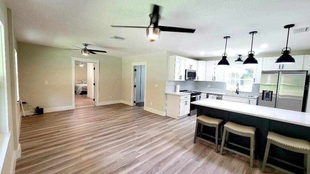 This beautiful tranquil home simply brings you peace of mind! Enter this "completely updated" oasis boasting (NEW) Roof, AC, Windows, Doors, Flooring, Kitchen & Appliances, Bathrooms, Walls, W/D Hooks Ups, Large Enclosed Patio, Water Heater, Plumbing, Electric Fireplace, Gutters, Waterproof Luxury Vinyl Plank Flooring/Ceramic Tile…and so much more! The serenity of this dwelling allows you to simply kick off your shoes and in a word, “relax.” If you want to be indoors or simply be in your oversized windowed patio enjoying the Fireplace, the choice is yours; Just a toss of the coin! If you want to be outdoors, you are walking distance away from Pana Vista Fishing Lodge (with Boat Lodging) or LAKE PANASOFFKEE for some Fishing, Kayaking, Manatee ventures or hiking. Take your boat out for a spin with good friends and just enjoy life; if you don’t have a boat, its easy access to several Marinas to make it happen! This home brings that level of comfort along with adventure. The area is near new and upcoming restaurants and entertainment, and a quick drive to The Villages for anything else.
