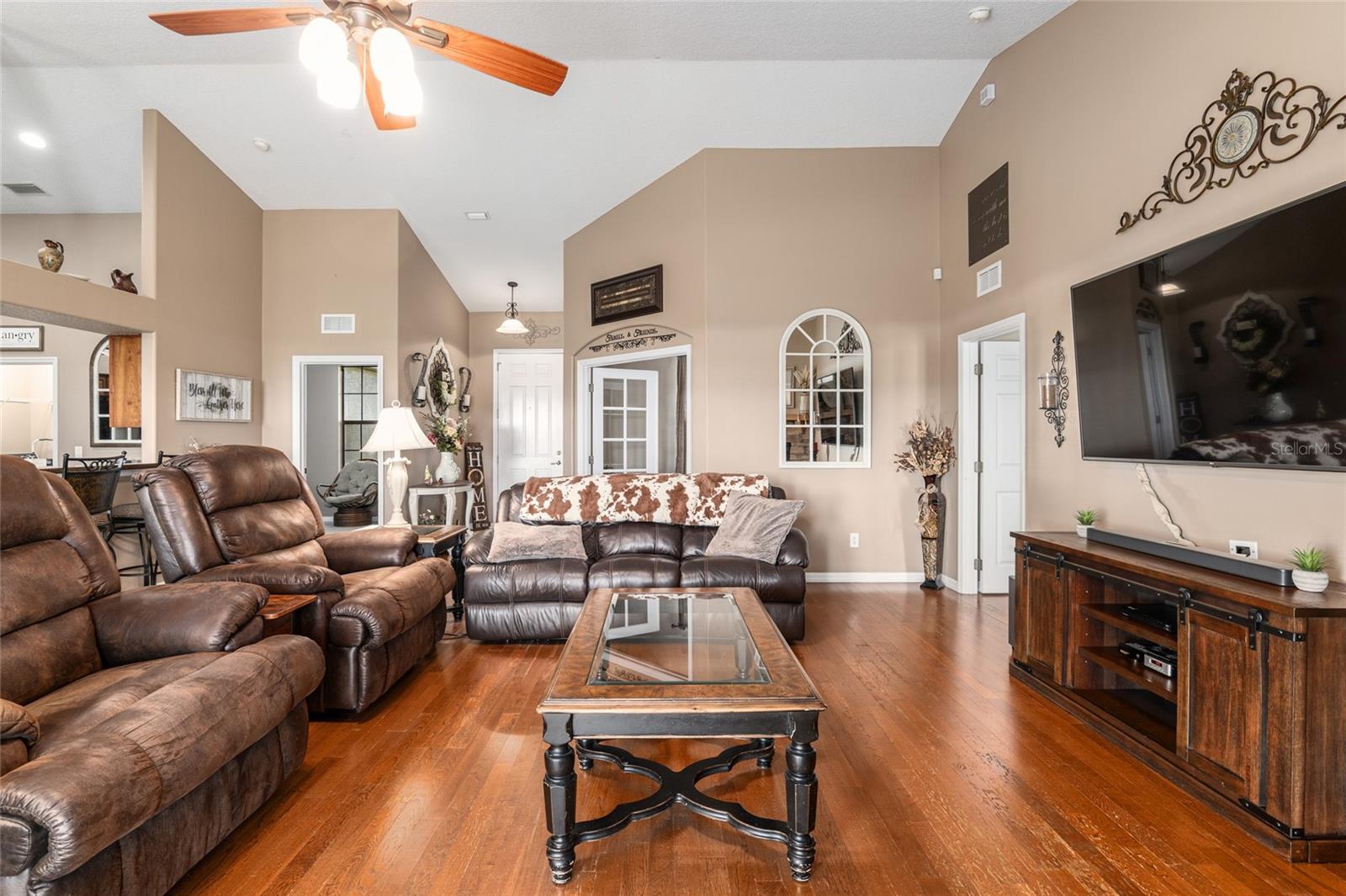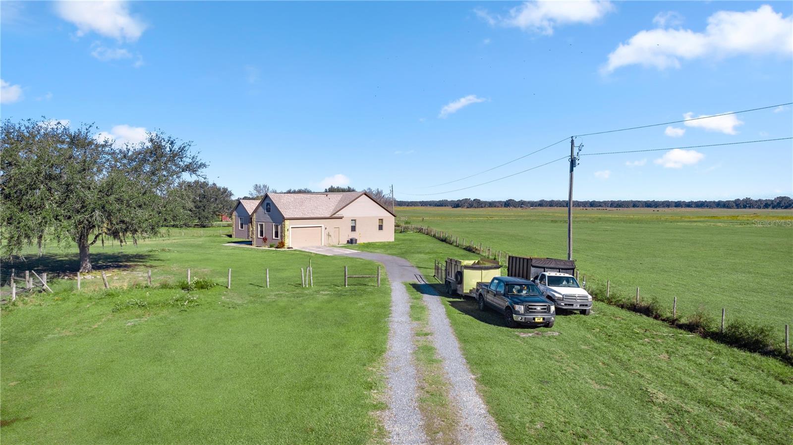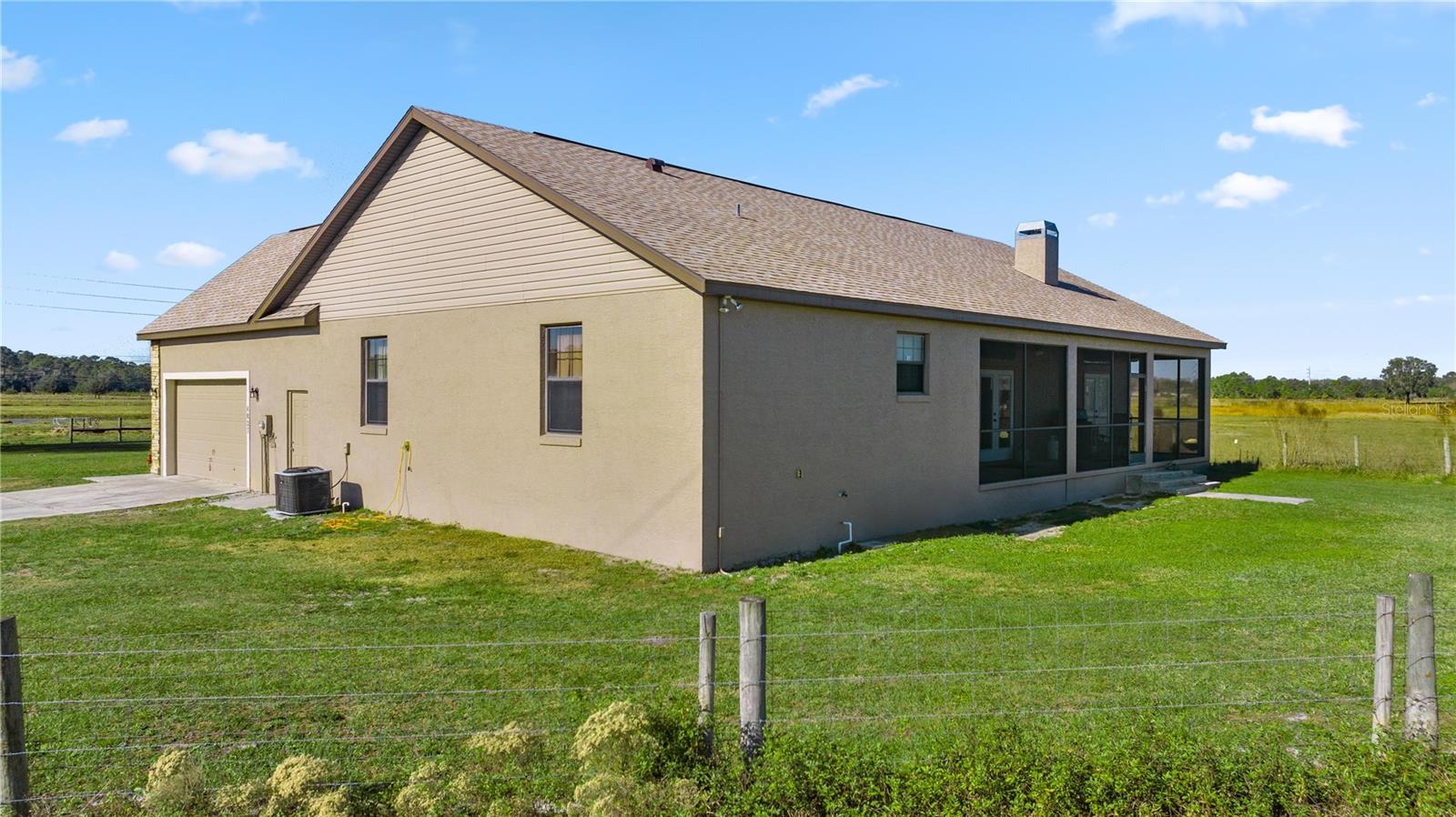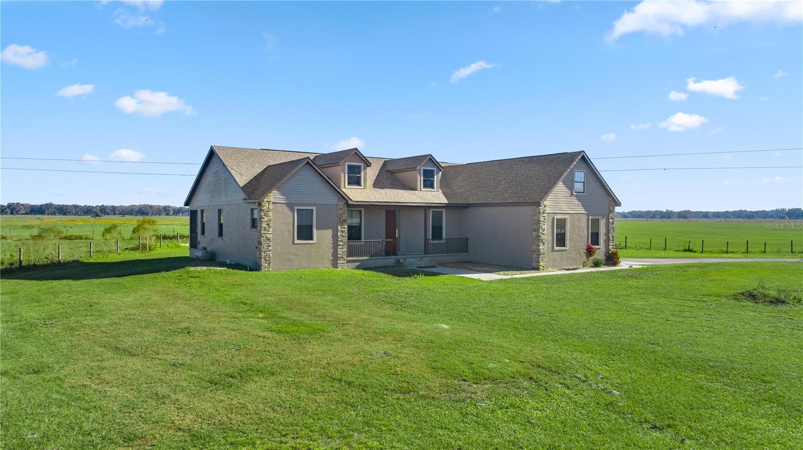 Welcome to your forever home! With NO HOA and NEW ROOF, this property is ready for you to move in and enjoy a peaceful, country lifestyle. This meticulously maintained 4-bedroom, 2-bathroom residence sits on an expansive 10.52-acre lot, offering plenty of space, privacy, and tranquility. As you drive up the lane, you’ll be greeted by the charm of this fenced property, complete with a manmade pond that adds to its beauty. Inside, the home features a split floor plan, perfect for both relaxing and entertaining. The open kitchen is a chef’s dream, with granite countertops, ample storage, and stainless steel appliances, making meal preparation a breeze. The living room, with its cozy fireplace, is the heart of the home, offering a warm and inviting space for family gatherings. The master suite is a true retreat, featuring vaulted ceilings, an exterior door, and his-and-hers walk-in closets. The master bath boasts dual vanities, a soaking tub for unwinding, and a walk-in shower for a spa-like experience. Guests will feel right at home with the oversized guest bathroom, which conveniently connects to the screened porch through a private exterior door—perfect for indoor-outdoor living. The screened back porch is an ideal spot to relax and enjoy the peaceful surroundings anytime of the day. Need a home office or a reading nook? There’s a bright and airy bonus room with high ceilings and large windows that let in plenty of natural light, making it an inspiring space for work or leisure. This stunning property offers the perfect blend of privacy, space, and comfort. Close to The Villages with all Villages amenities and without the fees. It’s a rare gem you won’t want to miss! No verbal offers will be considered or accepted.