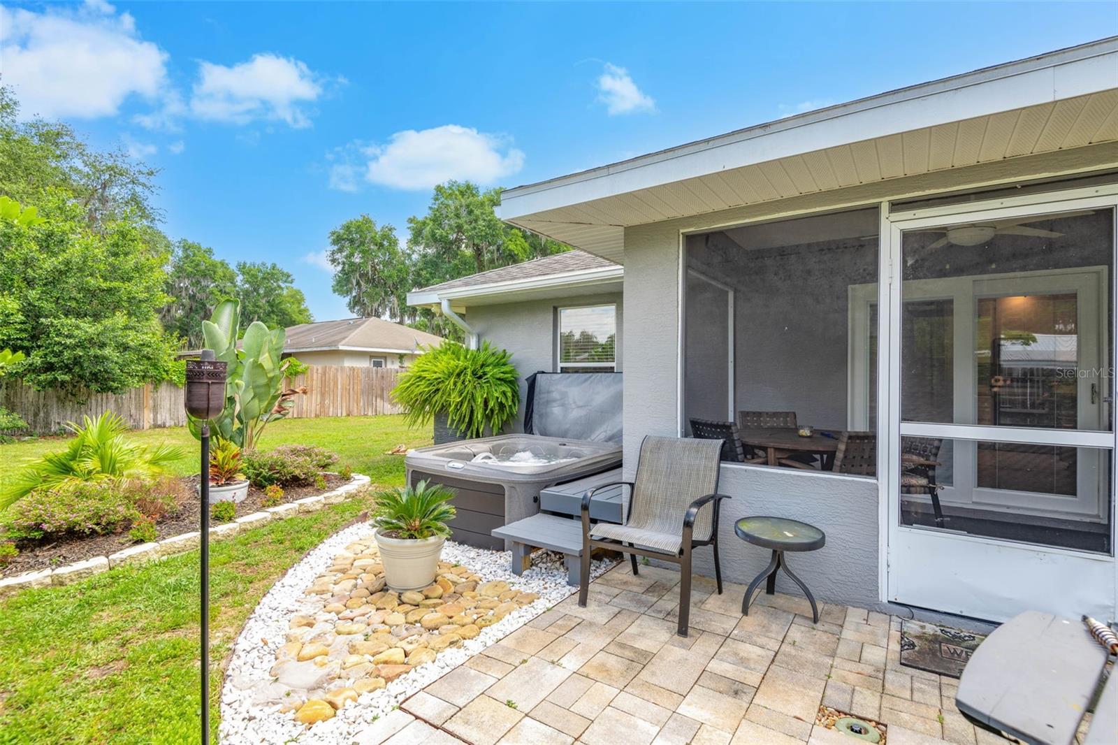 Privacy and Land with no restrictions come along with this 2/2/2 Beauty located in Lake Panasoffkee. Plenty of room for RV and boat parking. 15 minutes from The Villages! Live the Villages lifestyle without paying The Villages prices! 60 minutes from both MCO and TPA Airports. Easy access to I-75 as it is only 2 miles away. The yard has been beautifully landscaped, sits on a cul-de-sac so you will not have much traffic at all. There is a newer hot tub in the backyard which is in a private setting. The screened lanai will come with the patio furniture. There is a new tankless hot water heater, Samsung washer and dryer set, 2 refrigerators, and all appliances convey. Both bedrooms are Masters with custom tile showers. The exterior extra large lot has a Rainbird in-ground sprinkler system, plenty of fruit trees such as Lemon, Lime, Key Lime, Orange and Banana. A Ranger Bass Boat is available for separate purchase and this will be great as you will be only a few blocks from the lake for some of the best freshwater fishing anywhere in Florida! Average bills are Electric $100, Water $15, Trash $22. Very clean, private, move-in ready property that you won't find too often! Lake Panasoffkee is rated the 3rd best Bass lake in Florida where 10 to 13 lb. bass are caught regularly. No Flood Insurance required!