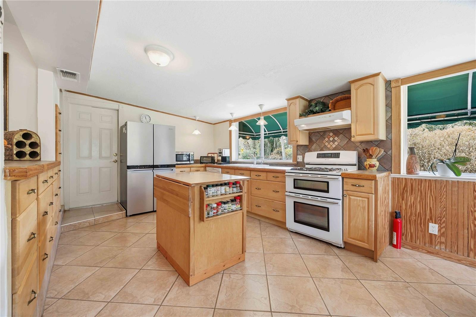 Awning(s), French Doors, Lighting, Rain Gutters, Sidewalk