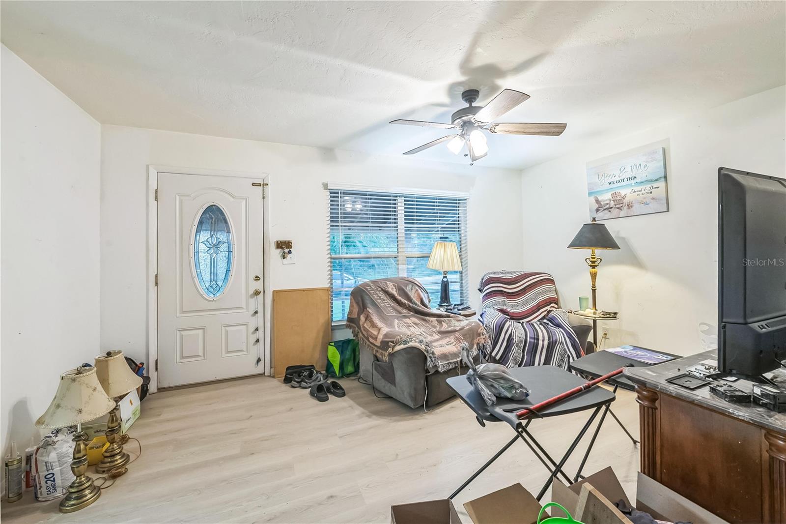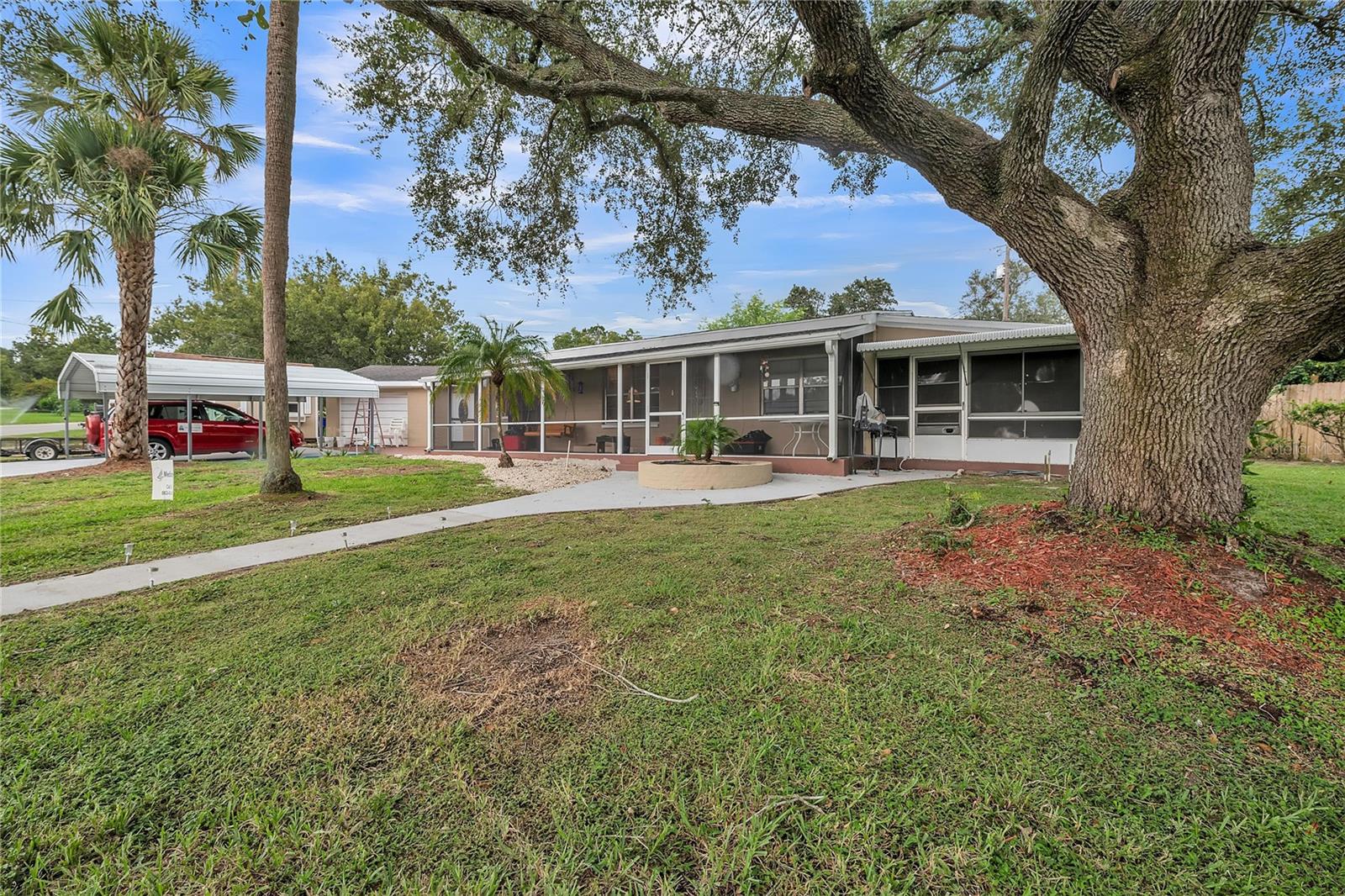 Well-maintained 3-bedroom, 2-bath concrete block home on a 0.25-acre lot with recent updates. Roof replaced around 2018-2019 (prior owner). New water heater (2024), well pump (2025), and updated irrigation system (2025). Includes remodeled detached studio (2024), 16x10 shed, screened lanai, generator plug-in, and RV outlet. Bathroom leak from old water heater has been remediated. Some flooring and outlets may need updates. No HOA. Quiet neighborhood with well and septic. Block construction with dry attic.