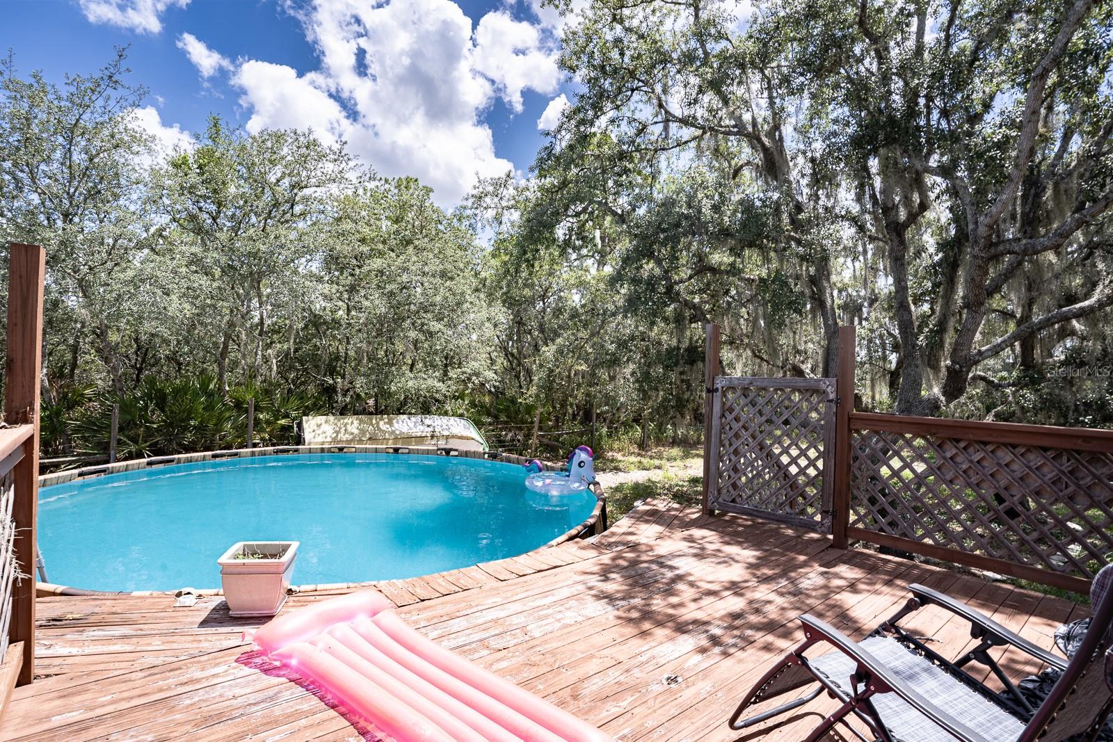 Welcome to your new oasis! This cozy 3 bedroom, 2 bathroom home sits on an oversized lot, nearly half an acre, offering ample space and privacy. Nestled among mature oak trees, this property provides a serene and picturesque setting with no HOA restrictions. Step inside to find a bright and inviting home with tile flooring throughout. One of the bathrooms has been renovated to add a touch of modern elegance, while the kitchen boasts stainless steel appliances, perfect for culinary enthusiasts. Outside, enjoy the large wooden deck and above-ground pool, ideal for entertaining or relaxing on warm days. The detached garage offers additional storage and versatility for your needs. With its spacious lot, charming features, and prime location, this home is perfect for those seeking comfort and freedom. Don't miss the opportunity to make this wonderful property your own. Schedule a viewing today!
