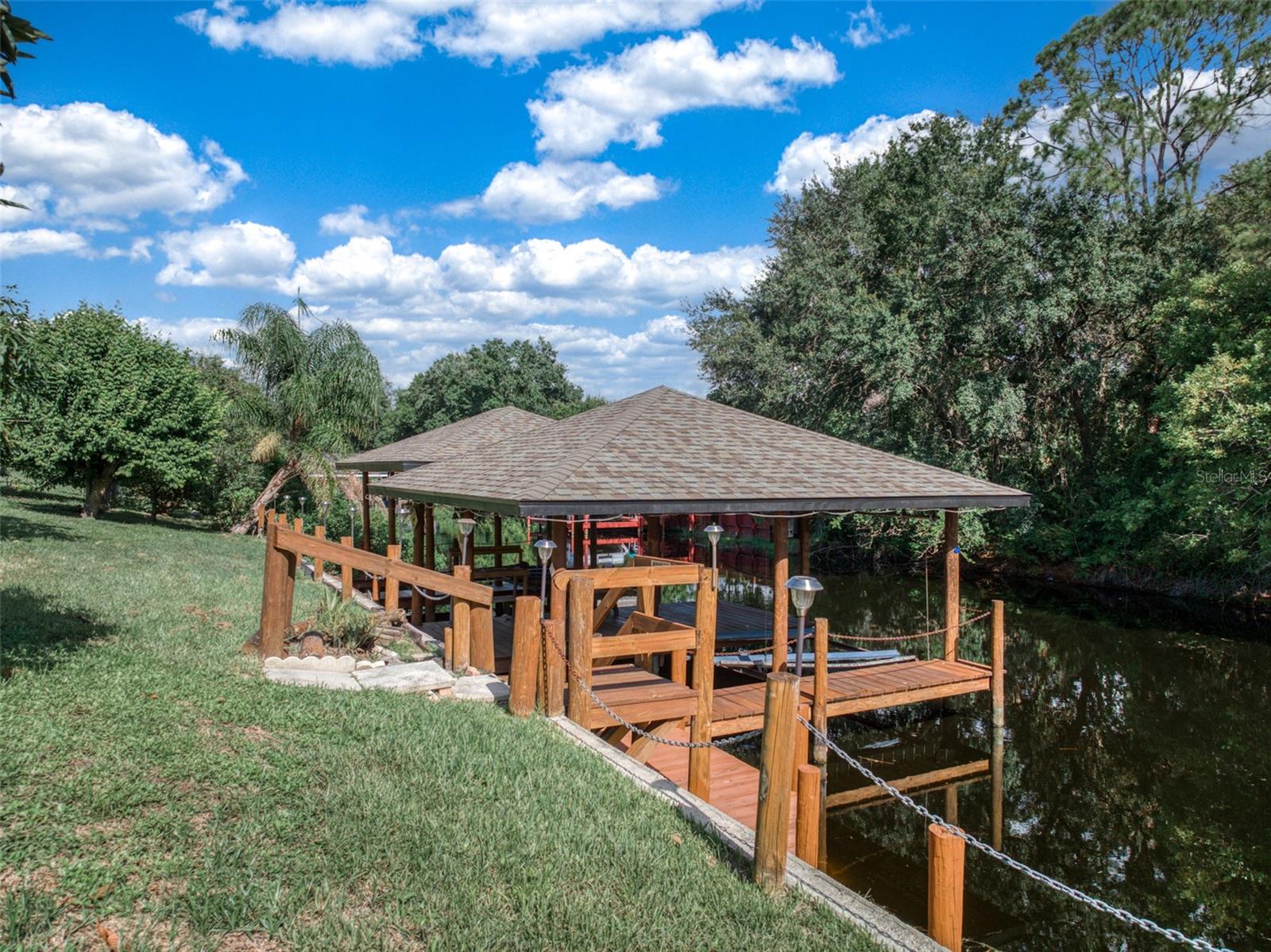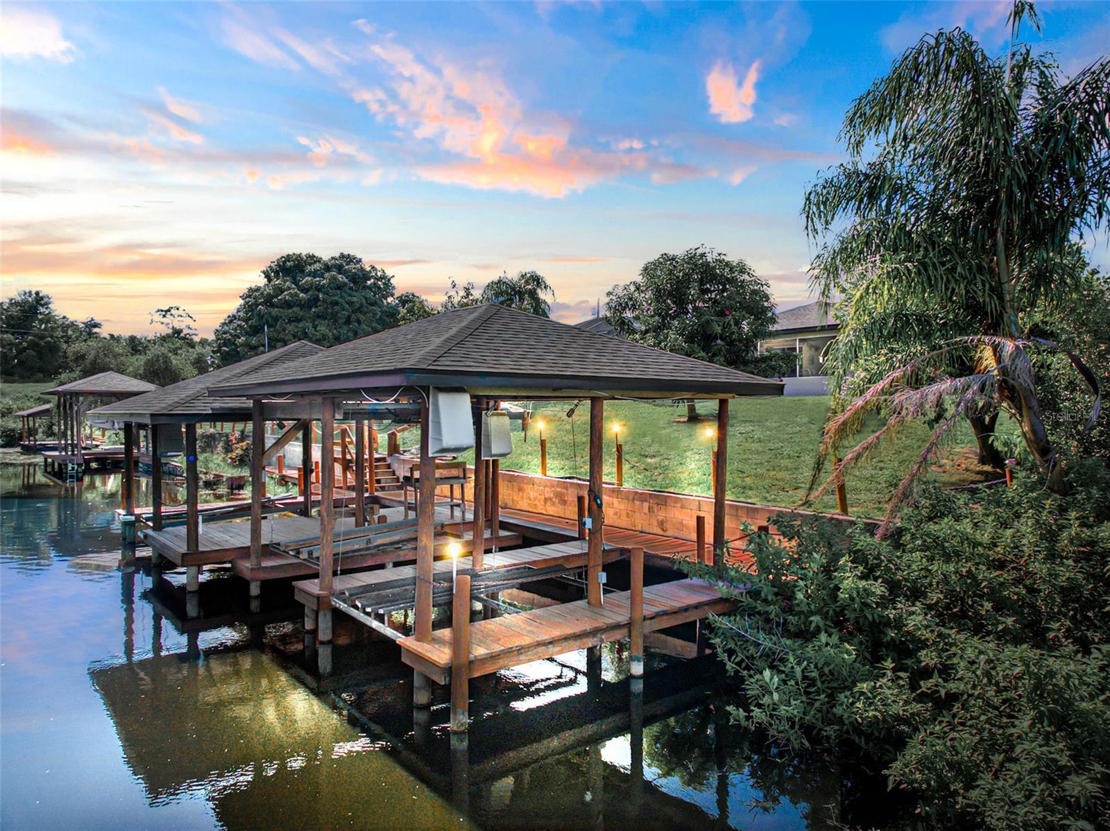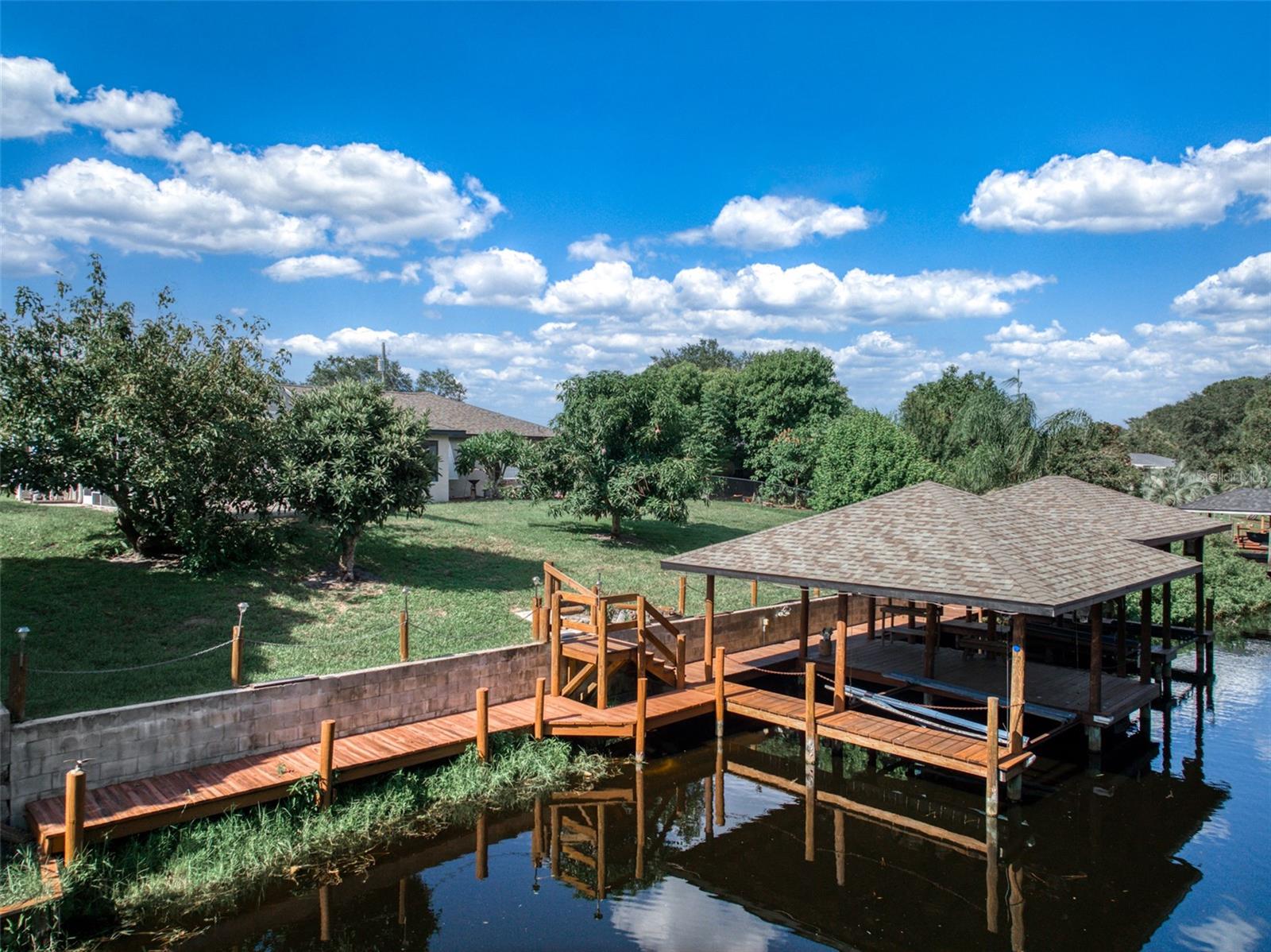 Gorgeous 3-bedroom 2 bath POOL HOME ON A GREAT CANAL TO LAKE JUNE IN WINTER...now available!! This open split floor plan offers vaulted ceilings with lots of natural light throughout and plenty of space for family and friends to enjoy this charming retreat. Designed for both inside-outside living, the dining room opens through glass sliders onto a very spacious screened lanai with brick flooring, adjacent to a beautiful caged splash pool and spa that overlooks the NATURAL SETTING OF TROPICAL FOLIAGE surrounding your 2 BEAUTIFULLY RENOVATED BOATHOUSES with all new decking, new shingle roofing, 3 boat slips with lifts, the dock and concrete seawall extend the width of the property and there is even a deck under roof for entertaining or just enjoying your own private oasis with some of the best canal views around and surrounded by nature.... The back yard gently slopes with mature fruit trees, mango, loquat and avocado, an irrigation system, outdoor lighting, storm shutters and more. This charming home has been meticulously maintained, freshly painted, a NEW ROOF, NEW AC, new stainless-steel appliances, new pool pump and filter and more... If you love water sports, fishing or just cruising the lakes, you won't want to miss seeing this unique property, it could be the perfect place to make your forever home, a seasonal or a great weekend retreat!