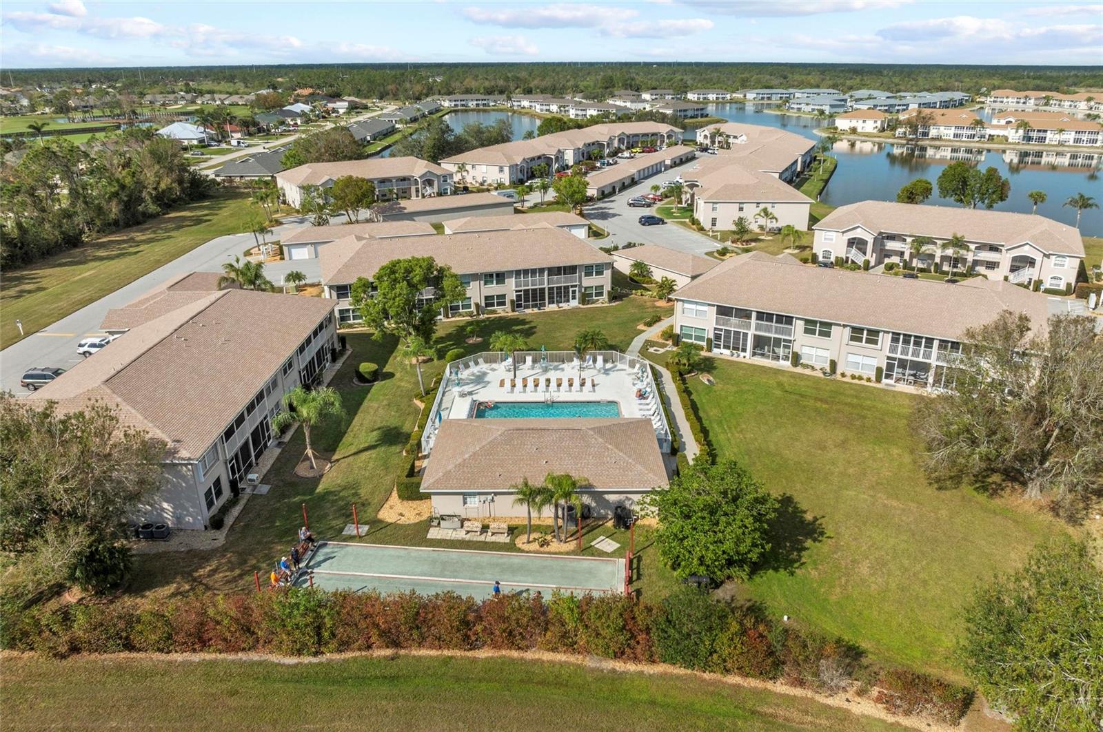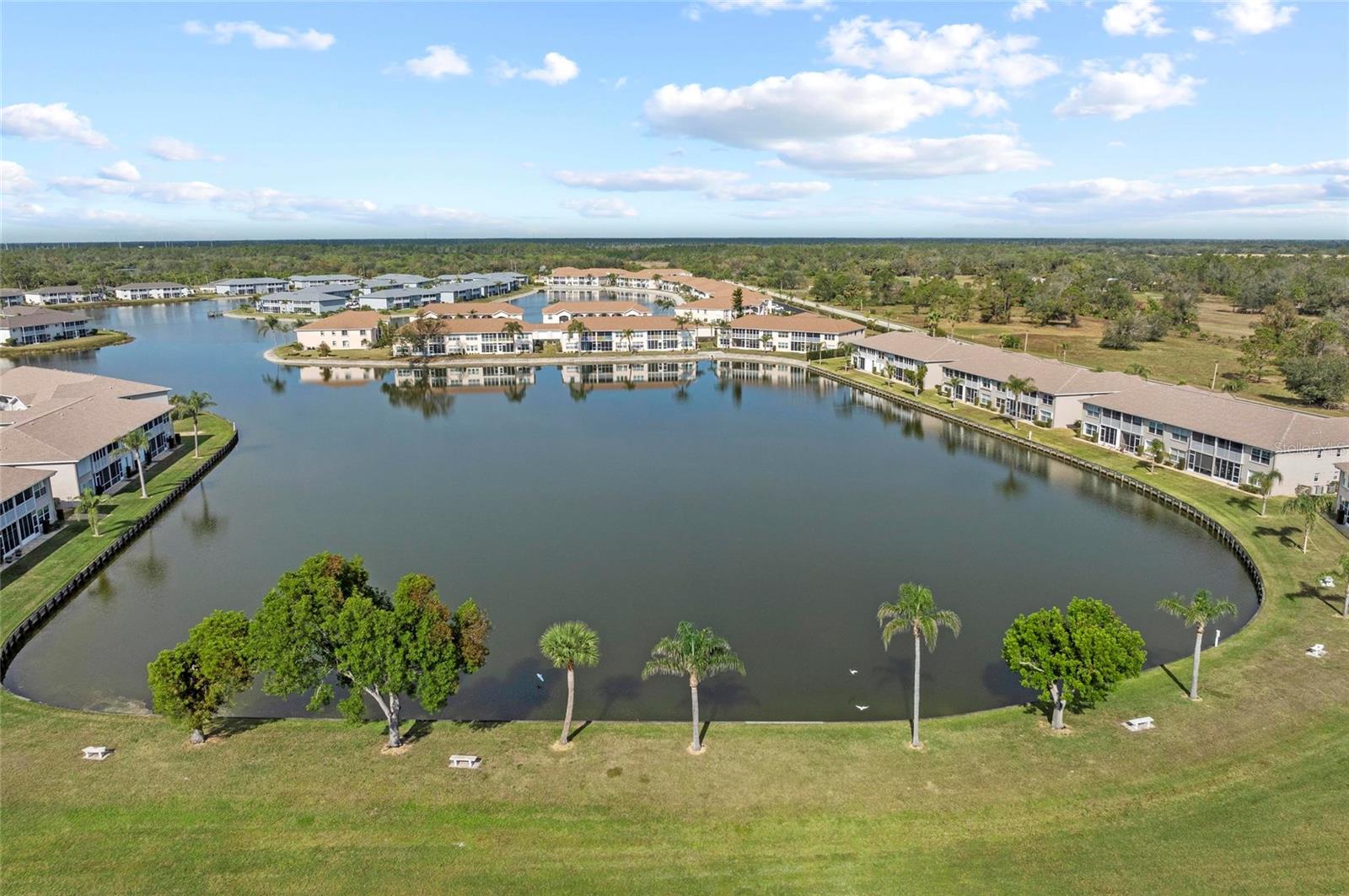 NEW PRICE!!! Pack your bags and move right into this stunning lakefront condo where breathtaking views and modern comforts converge. From the moment you step inside, SPARKLING WATER VIEWS greet you, creating a serene and welcoming ambiance you'll never want to leave. No milestone or reserve studies required here! This beautifully designed 3-bedroom, 2-bath condo has many updates and plenty of storage space! Brand-new HURRICANE-IMPACT WINDOWS throughout the home are energy efficient, give piece of mind and enhance natural light. Elegant finishes include LUXURY VINYL FLOORING in the living room and bedrooms, with durable tile in the kitchen, foyer, and bathrooms—NO CARPET anywhere! At the front of the home, two guest bedrooms with brand-new CUSTOM BLINDS provide comfort and privacy, perfectly separated from the serene primary suite at the back. The owner’s retreat also with brand new custom blinds offers spanning water views, large windows, and an en-suite bathroom with GRANITE countertops, UPDATED light fixtures, a BRAND NEW walk-in shower, and a spacious walk-in closet. To the left of the foyer, the stylish kitchen shines with stainless steel appliances including a BRAND NEW REFRIGERATOR, GRANITE countertops, and ample cabinetry, including a perfect spot for a coffee bar. A cozy dinette area with PLANTATION SHUTTERS invites casual dining, while the recessed ceiling with new light fixtures and SHIPLAP detail adds charm. The kitchen flows into the grand living room, complete with an extended bar-height seating area, ideal for entertaining and creating an open, inviting space. TRIPLE SLIDERS at the back of the home lead to the NEWLY screened-in lanai, offering UNOBSTRUCTED VIEWS of the SHIMMERING WATER. This peaceful outdoor sanctuary is perfect for savoring sunsets and watching wildlife at play. No need to worry about storage — this condo has you covered! Enjoy abundant closet space throughout, a versatile bar area with both overhead and under-counter storage, and a generously sized laundry room with even more storage options and extra space for your needs. Located in tranquil Lake Suzy, North Shore offers lower HOA's and fantastic community amenities, including a pool, clubhouse, bocce ball court, community events, and a picturesque pier and gazebo by the lake. Also included in the fees are maintenance of the grounds, exterior of building, sewer, and trash. Nature lovers will appreciate the nearby walking trails with sightings of horses, cows, donkeys, and birds. Plus, you're just a short drive from the new Sunseeker Resort on Charlotte Harbor, offering world-class dining, entertainment, and waterfront experiences. Also close by are Port Charlotte and Punta Gorda, home to charming shops, dining, the Harborwalk, and Fisherman’s Village. This remarkable home offers the perfect blend of natural beauty, modern comforts, and vibrant community living in a location where endless coastal adventures await. Don't miss your chance to make this gorgeous condo your Florida retreat!