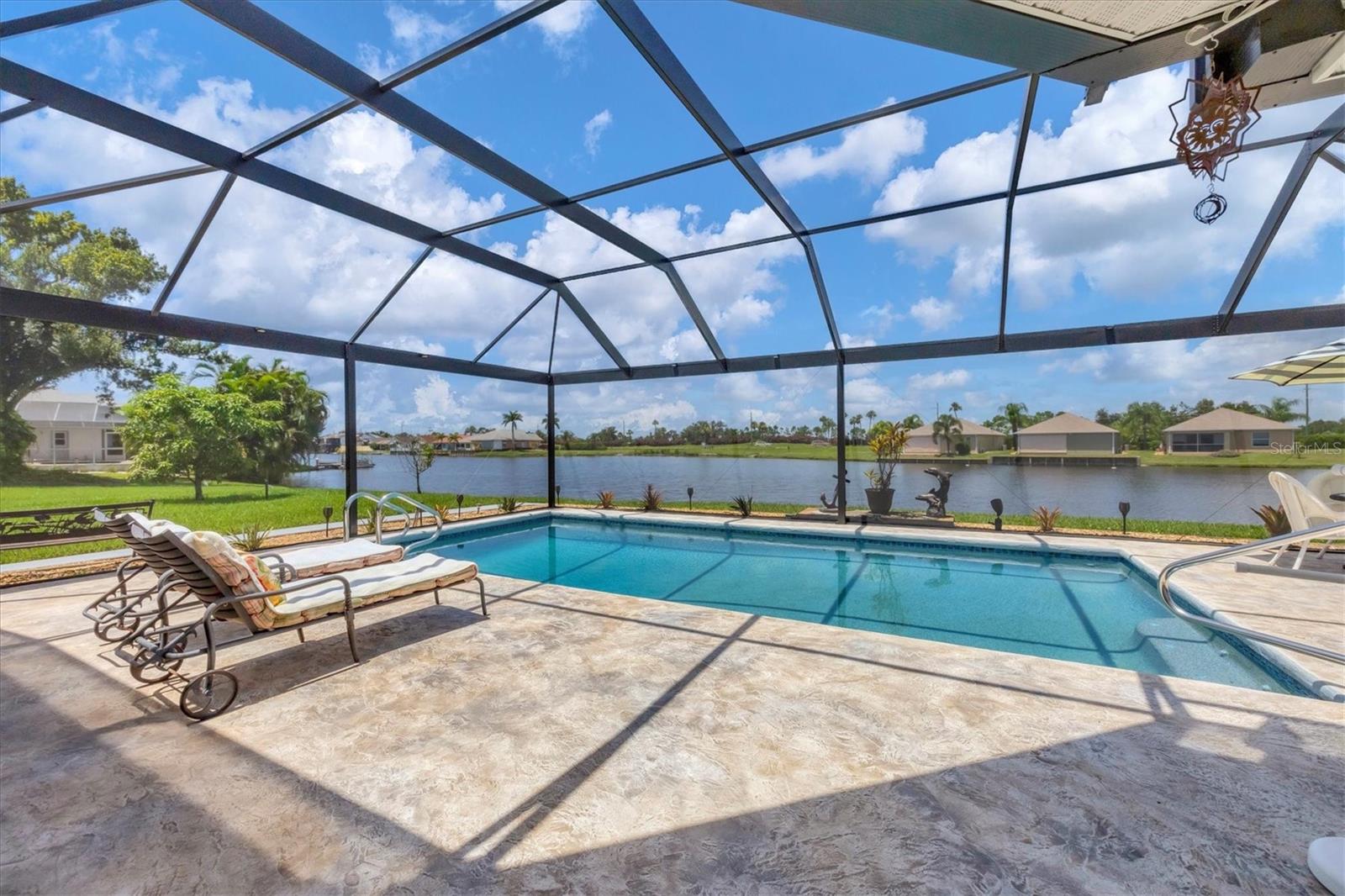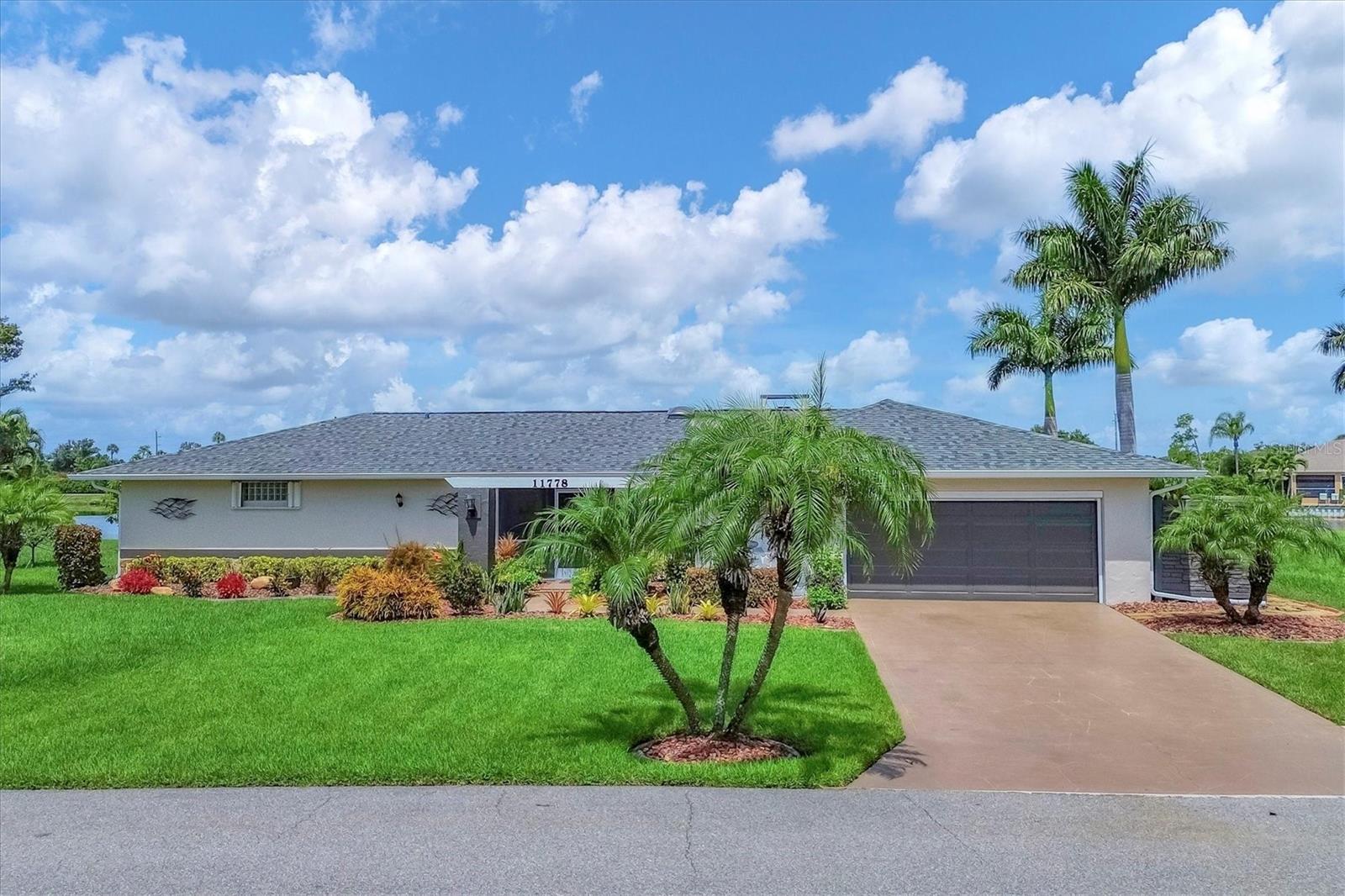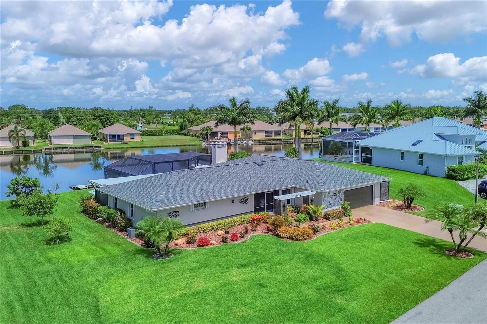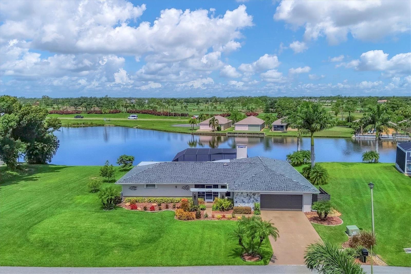 Motivated Seller!! Magnificent western-facing water views from this pristine turn-key home in Lake Suzy on a Double Lot. Available with or without the furniture! The fantastic water view greets you as you walk in through the elegant double doors. The home boasts 3 bedrooms and an office/den, living room, family room featuring a fireplace and the family room is open to the kitchen. This home has been well-maintained and EVERYTHING is up to date. Recent updates include: • New roof (2023) • Re-surfaced pool and deck (2021) • New vinyl flooring (2022) • Freshly painted exterior (2023) • New pool cage (2023) • New septic tank and drain field (2024) • New windows (2020) • New well pump (2019) • Extra insulation (2023) And there's more. ASK for a list of all updates. You will feel at home immediately as you walk through the front door. You won’t know which way to go first. You are drawn to the large, covered lanai with a salt-water pool, but look to the right and you will want to explore the large, updated kitchen with abundant cabinetry and granite counters. Relax or work in your den with built-in desk and storage. There are HURRICANE Shutters for every opening in this home.The oversized garage has epoxy floors as of 2023, ample storage, and an electric roll-up screen. The lanai features a spacious covered area and plenty of room to sit in the sun under the pool cage. Come sit in this comfy furniture and relax! The primary bedroom with en-suite bath features dual sinks, make-up vanity, shower, and soaking tub. This home is designed to take advantage of the view from almost all of the rooms. The landscaping and yard are impeccably maintained. The yard is lush, thanks to the well and irrigation. KAYAK or Canoe from your backyard! Or travel around the lake with an electric motor boat! Shopping, medical, and restaurants are minutes away! Access to I-75 is convenient. Enjoy peace in paradise with all the amenities you need close by. Don't miss out! This is a one of a kind opportunity!