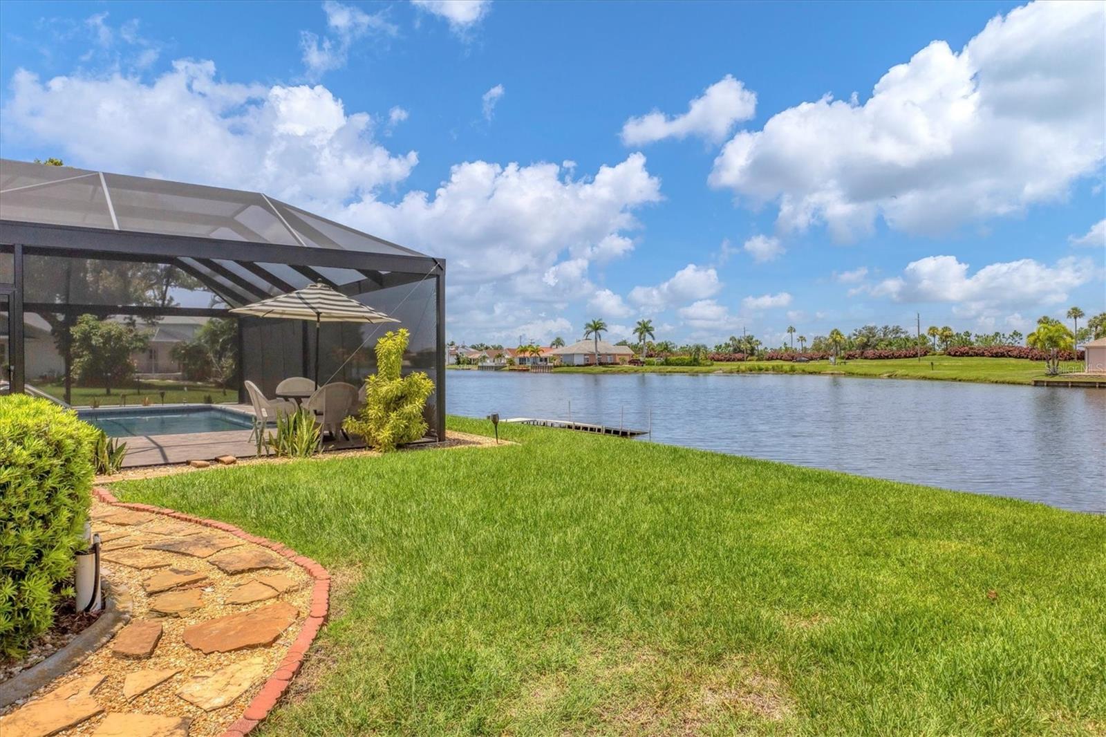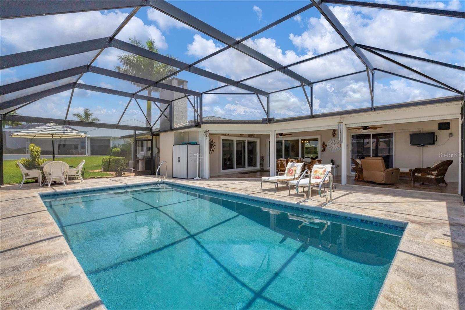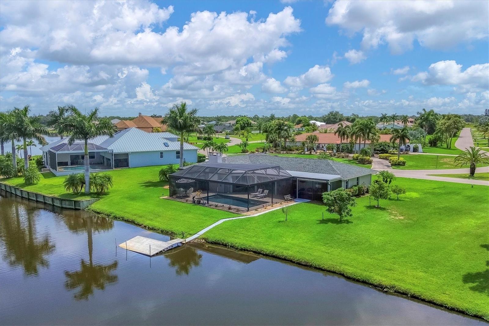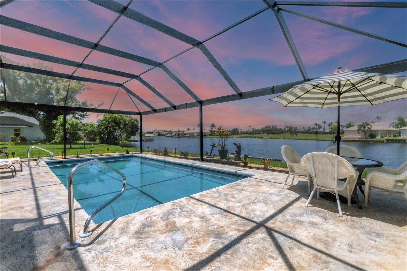 Motivated Seller!! Magnificent western-facing water views from this pristine turn-key home in Lake Suzy on a Double Lot. Available with or without the furniture! The fantastic water view greets you as you walk in through the elegant double doors. The home boasts 3 bedrooms and an office/den, living room, family room featuring a fireplace and the family room is open to the kitchen. This home has been well-maintained and EVERYTHING is up to date. Recent updates include: • New roof (2023) • Re-surfaced pool and deck (2021) • New vinyl flooring (2022) • Freshly painted exterior (2023) • New pool cage (2023) • New septic tank and drain field (2024) • New windows (2020) • New well pump (2019) • Extra insulation (2023) And there's more. ASK for a list of all updates. You will feel at home immediately as you walk through the front door. You won’t know which way to go first. You are drawn to the large, covered lanai with a salt-water pool, but look to the right and you will want to explore the large, updated kitchen with abundant cabinetry and granite counters. Relax or work in your den with built-in desk and storage. There are HURRICANE Shutters for every opening in this home.The oversized garage has epoxy floors as of 2023, ample storage, and an electric roll-up screen. The lanai features a spacious covered area and plenty of room to sit in the sun under the pool cage. Come sit in this comfy furniture and relax! The primary bedroom with en-suite bath features dual sinks, make-up vanity, shower, and soaking tub. This home is designed to take advantage of the view from almost all of the rooms. The landscaping and yard are impeccably maintained. The yard is lush, thanks to the well and irrigation. KAYAK or Canoe from your backyard! Or travel around the lake with an electric motor boat! Shopping, medical, and restaurants are minutes away! Access to I-75 is convenient. Enjoy peace in paradise with all the amenities you need close by. Don't miss out! This is a one of a kind opportunity!