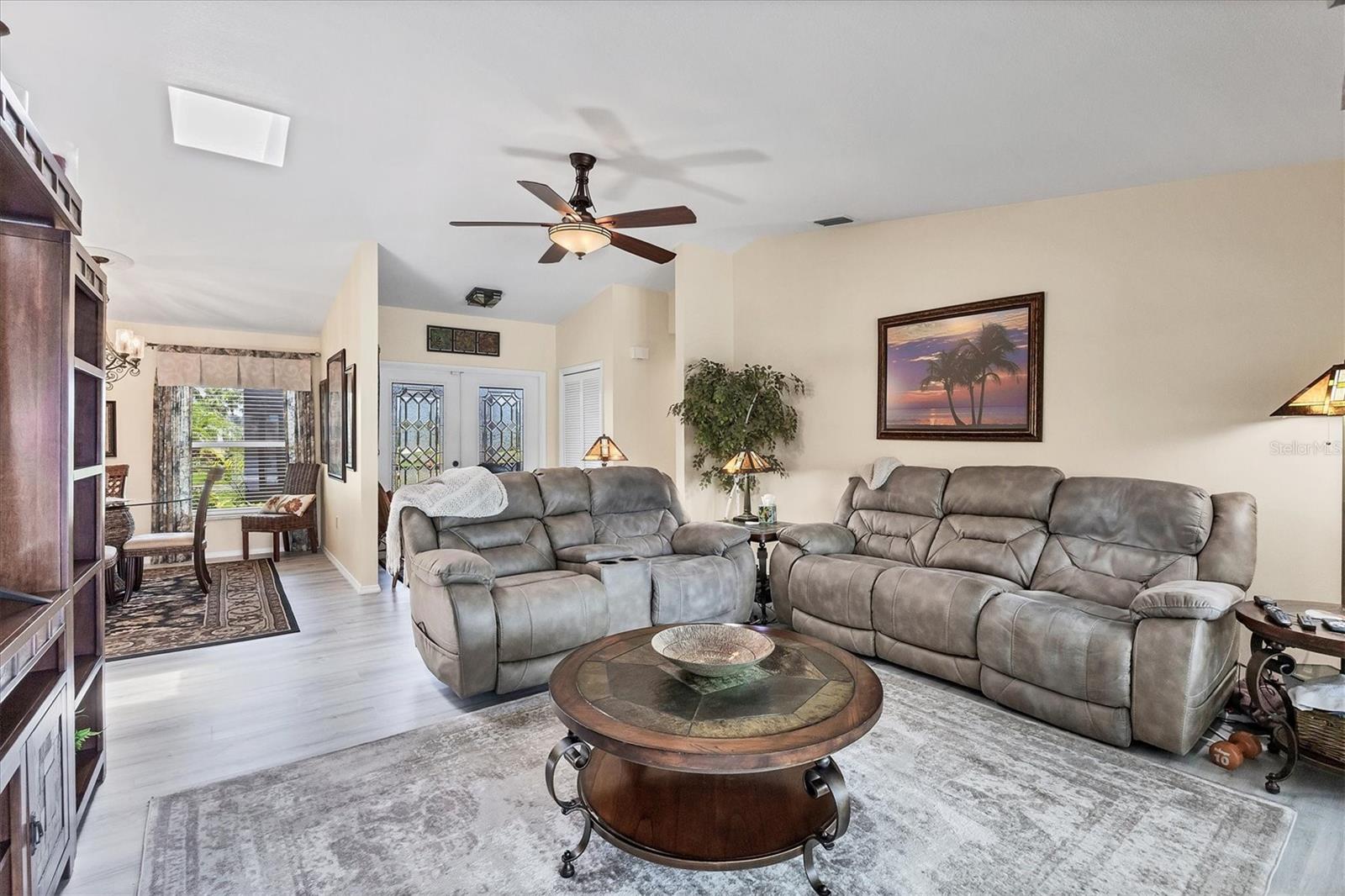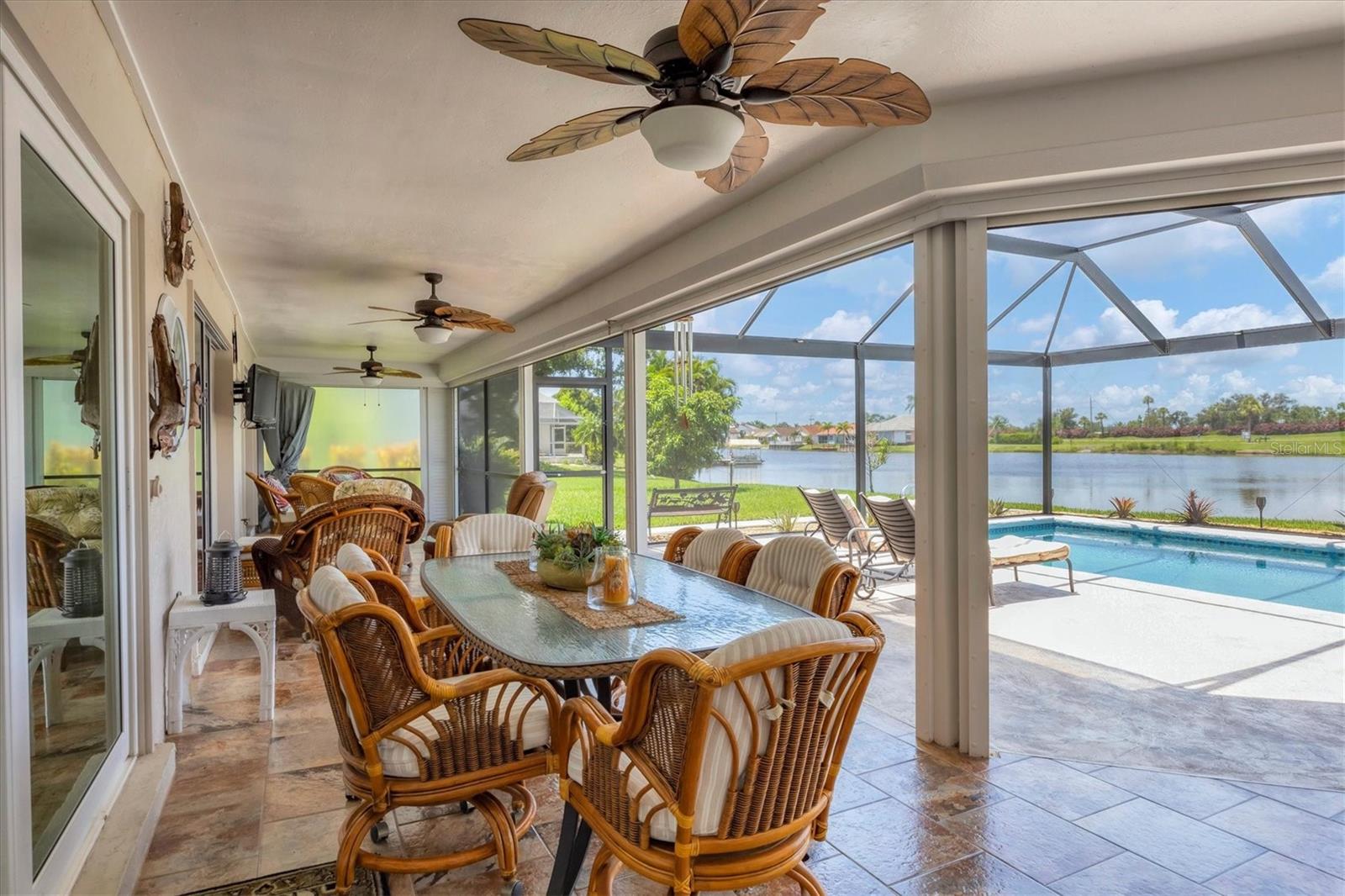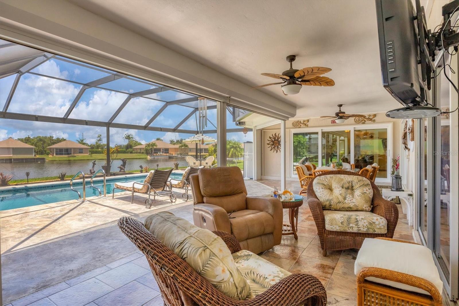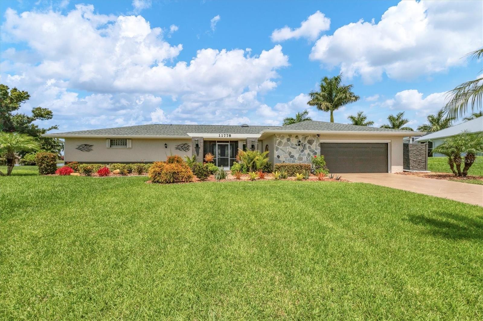 Motivated Seller!! Magnificent western-facing water views from this pristine turn-key home in Lake Suzy on a Double Lot. Available with or without the furniture! The fantastic water view greets you as you walk in through the elegant double doors. The home boasts 3 bedrooms and an office/den, living room, family room featuring a fireplace and the family room is open to the kitchen. This home has been well-maintained and EVERYTHING is up to date. Recent updates include: • New roof (2023) • Re-surfaced pool and deck (2021) • New vinyl flooring (2022) • Freshly painted exterior (2023) • New pool cage (2023) • New septic tank and drain field (2024) • New windows (2020) • New well pump (2019) • Extra insulation (2023) And there's more. ASK for a list of all updates. You will feel at home immediately as you walk through the front door. You won’t know which way to go first. You are drawn to the large, covered lanai with a salt-water pool, but look to the right and you will want to explore the large, updated kitchen with abundant cabinetry and granite counters. Relax or work in your den with built-in desk and storage. There are HURRICANE Shutters for every opening in this home.The oversized garage has epoxy floors as of 2023, ample storage, and an electric roll-up screen. The lanai features a spacious covered area and plenty of room to sit in the sun under the pool cage. Come sit in this comfy furniture and relax! The primary bedroom with en-suite bath features dual sinks, make-up vanity, shower, and soaking tub. This home is designed to take advantage of the view from almost all of the rooms. The landscaping and yard are impeccably maintained. The yard is lush, thanks to the well and irrigation. KAYAK or Canoe from your backyard! Or travel around the lake with an electric motor boat! Shopping, medical, and restaurants are minutes away! Access to I-75 is convenient. Enjoy peace in paradise with all the amenities you need close by. Don't miss out! This is a one of a kind opportunity!