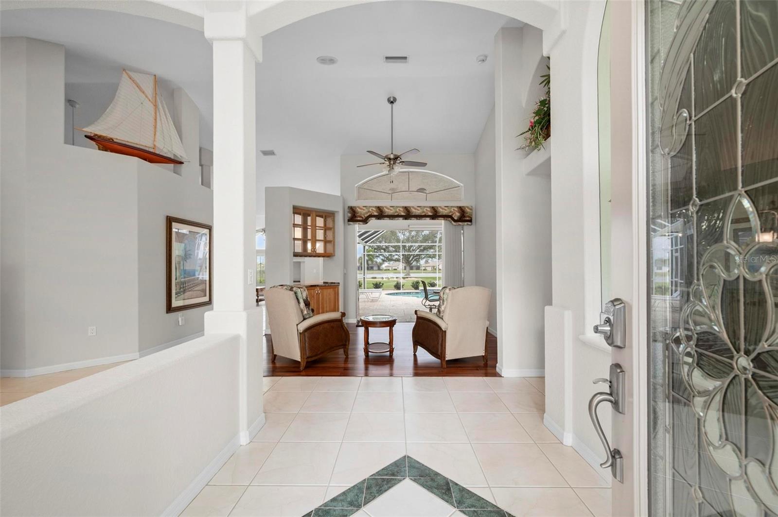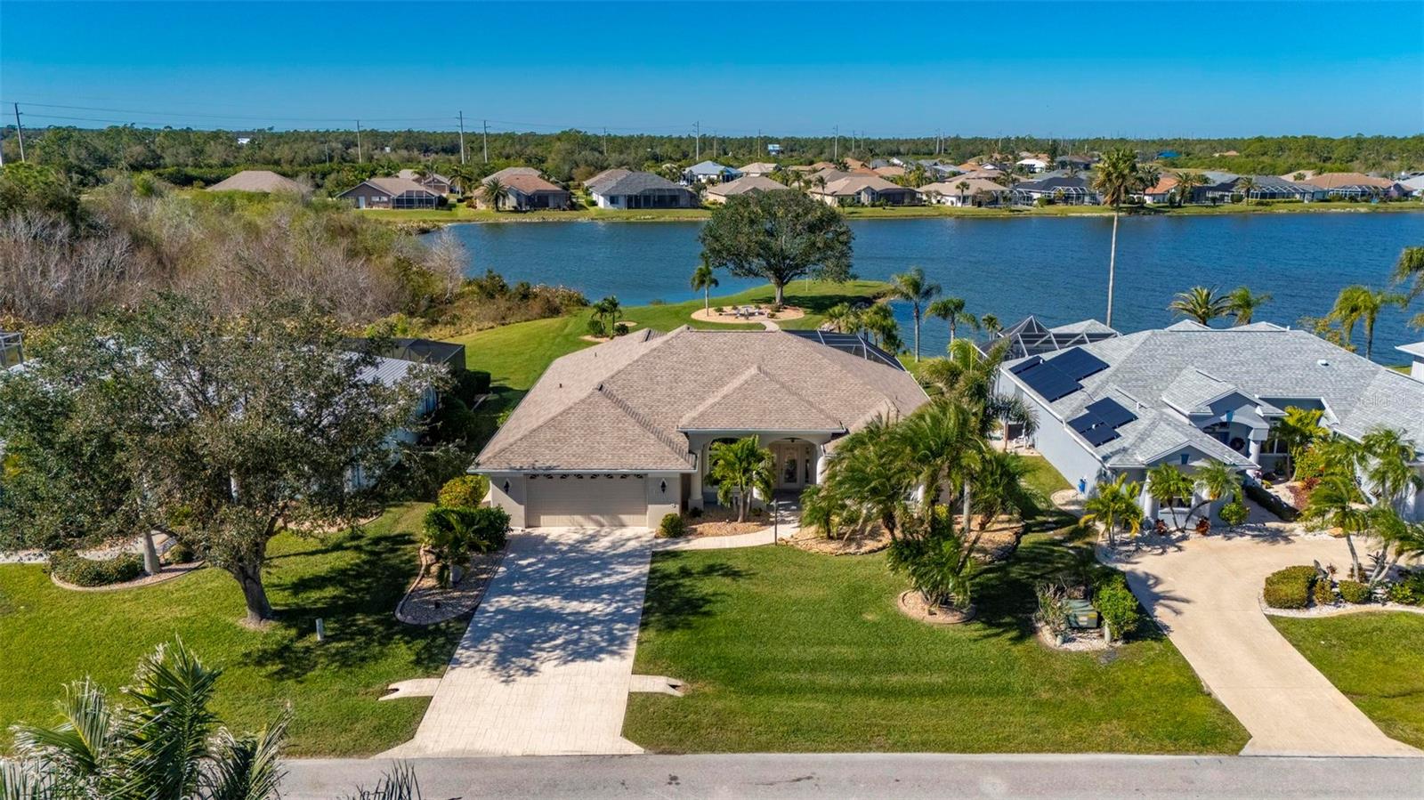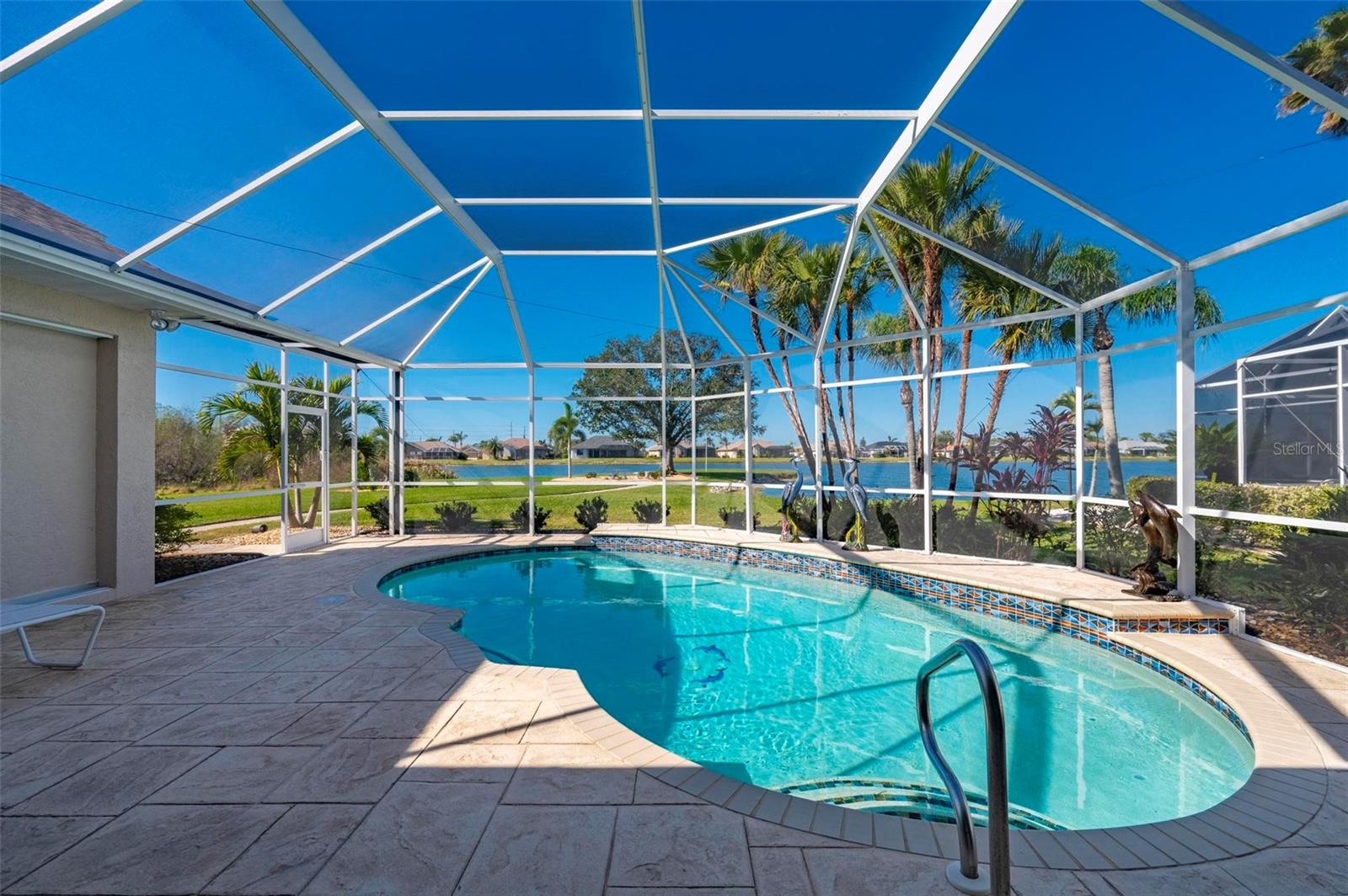 Gorgeous waterfront retreat in Lake Suzy, Florida. Welcome to your dream home just a stones throw from Aileron Golf Club & Punta Gorda! This exceptional former model home is ideally situated on an expansive 3/4-acre lot complete with its own private peninsula... truly a bird and wildlife lovers dream. Designed with both relaxation and entertainment in mind, the split floor plan offers privacy and functionality for families and guests. The open-concept design features a spacious "chef's dream" kitchen with ample counter space and gorgeous views of the pool and lanai area, creating a perfect setting for hosting gatherings or enjoying tranquil mornings. Additional highlights include: Large laundry room with storage, heated salt water pool, electric fireplace, air conditioned garage, jetted tub in owners suite, insulated impact windows and doors, 8500 watt generator included, real wood floors and located just minutes to I-75. This is more than a home; it’s a lifestyle of elegance and serenity.