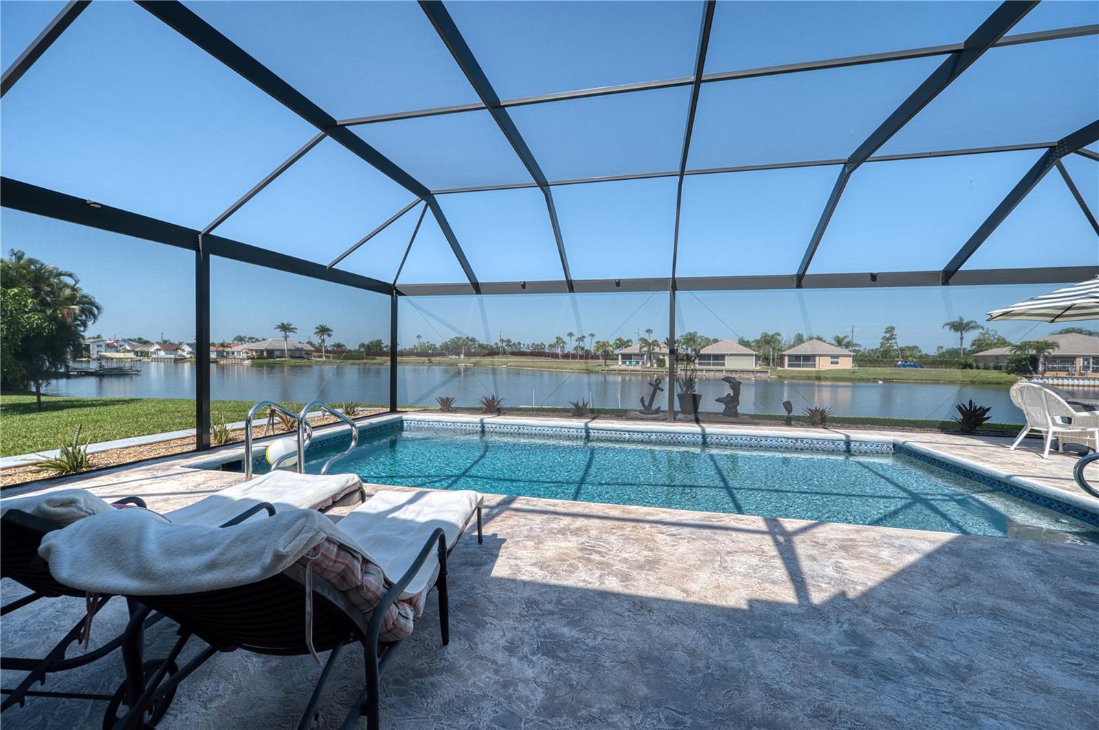 Immaculate lakefront home on a double lot in the quiet and highly desirable community of Lake Suzy Estates. Enjoy spectacular views of the abundant wildlife and natural beauty of Lake Suzy. This home comes COMPLETELY FURNISHED and MOVE-IN ready! The home features many updates with modern amenities. There is a split bedroom configuration, living room, and family room with fireplace. The kitchen boasts many upgrades including newer appliances and granite counters. Step into your Master Bedroom with walk-in closet and en-suite Master Bathroom with vanity, dual sinks, jacuzzi tub, and shower. The Laundry Room is located indoors and separate from the 2-car garage. Upgraded Sliders provide multiple accesses to the covered, screened lanai. The lanai area provides plenty of room for entertaining and features a heated 14x28 pool. There are many recent upgrades to this home. In 2023 the home had a newly shingled roof, freshly painted exterior, new pool cage, and extra home insulation added. A new Septic tank with drain filed was placed in 2024. New luxury flooring was installed in 2022, resurfaced pool and deck in 2021, new windows in 2020, and new well pump in 2019. A complete list of all upgrades can be provided. Hurricane protection has been placed on all windows. The garage features a rolldown and screen and an epoxy floor. Whole house replumbing was completed in 2019. This home also provides a whole home water softener system and irrigation system. Completely Furnished!!! - all furniture, appliances, and window dressings convey with sale. See the lake from just about every room in the house so you can enjoy the abundance of wildlife in Lake Suzy including Eagles, Cranes, Egrets, and Pelicans. Take advantage of the convenience and proximity of local shopping, dining, and Interstate 75 - Just 1 mile off exit 170. Lake Suzy is a 42 acre, self-contained, catch and release, freshwater lake. Lake Suzy Estates is a deed restricted, voluntary HOA community.
