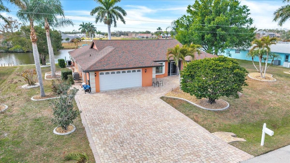 Impressive lakefront pool home offering nearly half an acre with 150 feet of shoreline in the desirable community of Lake Suzy Estates. This beautifully maintained 3-bedroom, 2-bath residence features over 2,100 square feet of living space, including a living and dining area, spacious family room, and an extended lanai overlooking the pool and expansive lake views. A true nature lover’s retreat, enjoy peaceful mornings on the lanai or private dock watching abundant wildlife and waterfowl. The open great room floor plan offers flexible living and showcases soaring vaulted ceilings with plant shelves, tile flooring throughout, accent walls, decorator lighting and fans, and a stunning bay window in the dining area. The kitchen is designed for both everyday living and entertaining, featuring warm wood cabinetry, granite countertops with tile backsplash, stainless steel appliances including a four-door refrigerator, a large closet pantry, breakfast bar, built-in buffet between the kitchen and family room, and a pass-through window to the lanai with granite counter space. The spacious primary suite provides a relaxing retreat with two walk-in closets, a bump-out sitting area, and an en-suite bath offering dual granite vanities and a custom tiled shower. Both guest bedrooms also feature walk-in closets, and the third bedroom includes a queen-size Murphy bed with built-in cabinetry and shelving. The second bath offers a jetted soaking tub and direct lanai and pool access—no more wet footprints through the house. Outdoor living takes center stage with a screened lanai, heated pool, and tranquil lake views. Stroll down the new paver walkway to your private dock to fish or simply unwind and enjoy the scenery. Additional highlights include new fan and motor on pool heater (2025), new windows, storm shutters, hurricane-rated garage door, new roof (2022), AC in the garage, dedicated laundry room with wall-to-wall pantry storage, lake-fed irrigation system new pump 2025, and public water service. The home boasts impressive curb appeal with double etched-glass front doors, screened entry, brick-paver driveway and walkway, landscape curbing with decorative rock, lush tropical foliage, and mature palms. Ideally located near shopping, dining, golf courses, and area waterways, you’ll enjoy easy access to Charlotte Harbor, the Peace River, the Myakka River, and the Gulf of Mexico. Explore nearby parks, walking and biking trails, and waterfront destinations such as Fishermen's Village or historic downtown Punta Gorda and Arcadia. This exceptional lakefront property captures the very best of the Florida lifestyle. Schedule your private showing today. **PLEASE ENJOY THE 3D INTERACTIVE VIRTUAL TOUR ASSOCIATED WITH THIS LISTING**
