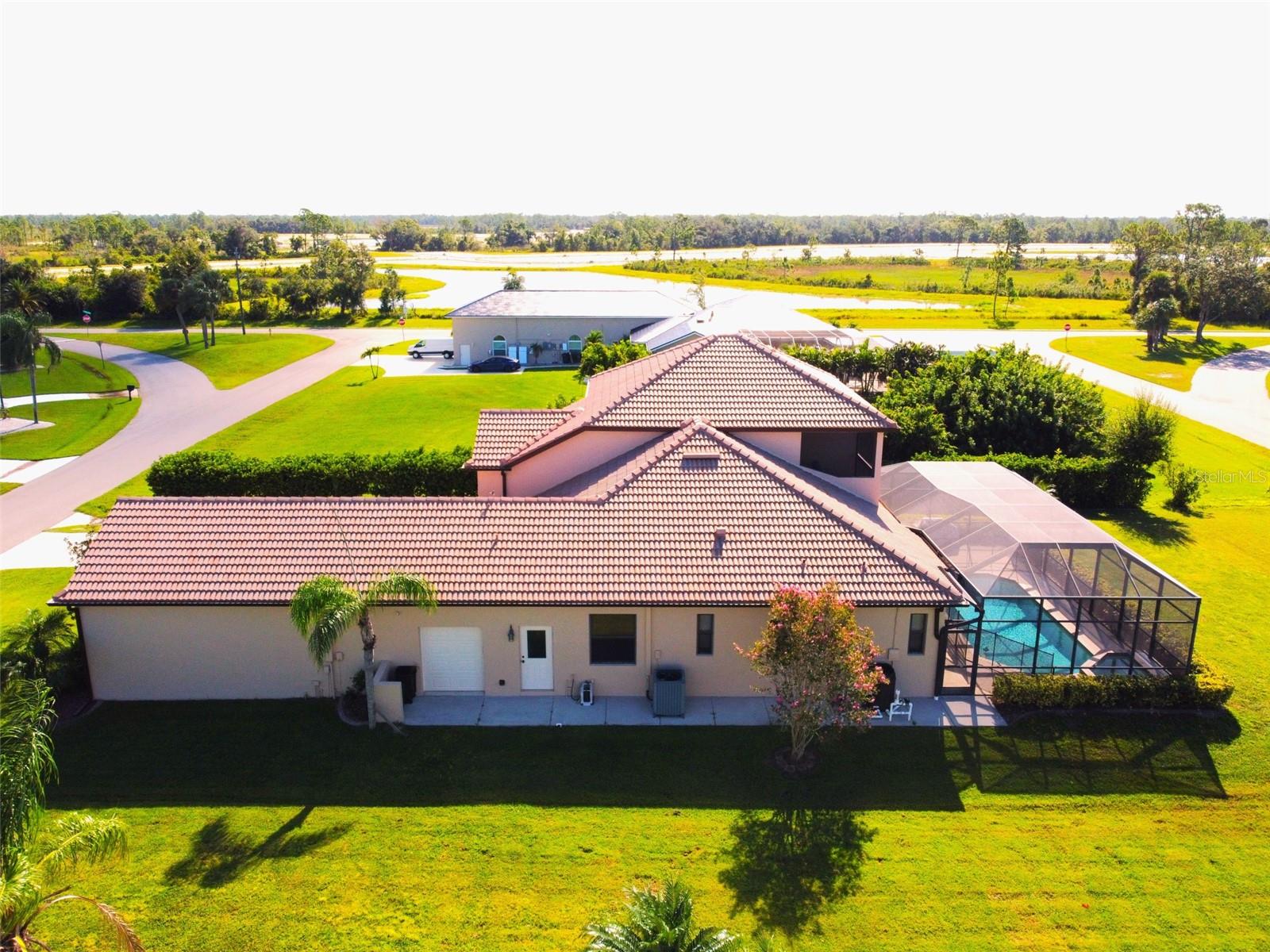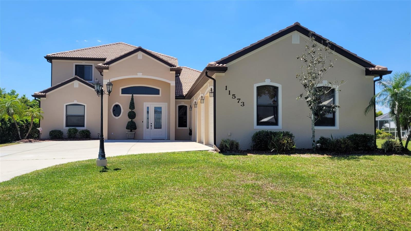 Gorgeous custom built 3,375 sqft home with 3 bedrooms, 2.5 baths, plus den/office. Car lovers dream with 3 1/2 car oversized garage with each bay having its own overhead door. Home sits on double lots totaling .34 acres with water views from the front and rear. There is plenty of extra room behind the pool to build an additional garage, pool house, outdoor kitchen or entertainment area. Freshly painted exterior, cleaned and resealed tile roof, full concrete block construction, impact windows and sliding doors, screened in large custom heated pool/spa with new heater, and all surrounded by mature landscaping with irrigation system. Home features upgrades galore with porcelain tile and crown molding throughout main living area, 10ft ceilings downstairs, 9ft ceilings upstairs, custom large eat in kitchen with granite countertops, 42' upper wood cabinets, island station, and a large 5x10 pantry. Kitchen has newer stainless appliances. Over sized aquarium glass window over looking pool/spa. Living room has a pool view out the large pocketing sliding glass doors and features a beautiful built-in entertainment center with stone work and an electric fire place. Nice size walk in full laundry room features upper and lower cabinetry with a large sink and w/d hookups. The first floor Master Suite is oversized and features a large walk in closet (appox 10x13), and a sliding door overlooking the pool. The Master bath has his and her vanities with granite tops, roman shower, and a soaking tub. Upstairs you will find the 2 guests rooms. These bedrooms are located off of a large game room/family room area which boasts a 9x11 screened outdoor patio with lake views. Bedrooms are carpeted and have ample storage. Bedrooms share a full bath with a granite dual vanity counter top and tub/shower. There are lots of additional storage spaces throughout this home, including a nice sized attic, to store all of your extras. Located on the border of Port Charlotte /Desoto County, you will find yourself close to shopping, grocery stores, as well as I75. Lake Suzy is a very quiet and desirable neighborhood. Most of the homes are on oversized lots so it gives you enough room between you and your neighbor. Right across Kings Hwy you will find Aileron, Sunseeker Resorts newly redesigned, championship Golf Course. This is Suncoast living at it's finest! DON’T WAIT TO SEE THIS FABULOUS, LAKE SUZY ESTATES HOME!
