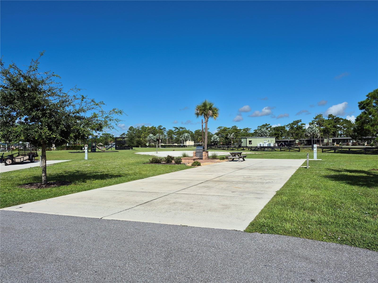 Welcome to the Resort at Canopy Oaks in Lake Wales, Florida! Surrounded by the beauty of natural Florida, this premier RV destination offers resort style amenities including a large pool and hot tub, a 12,000 sq. ft. clubhouse, full-service tiki bar, on-site café and general store, pickleball courts, shuffleboard, bocce, fishing ponds, dog parks, and picturesque walking trails. This deeded premium site provides a peaceful, private setting with plenty of space to relax, a beautiful brick paver fire pit, and close proximity to the clubhouse and activities. The generous 20’ x 70’ concrete pad features full hookups (20/30/50 amp) and easily accommodates Class A, Class C, fifth wheels, travel trailers, or even a small park model—making it the perfect carefree seasonal retreat.