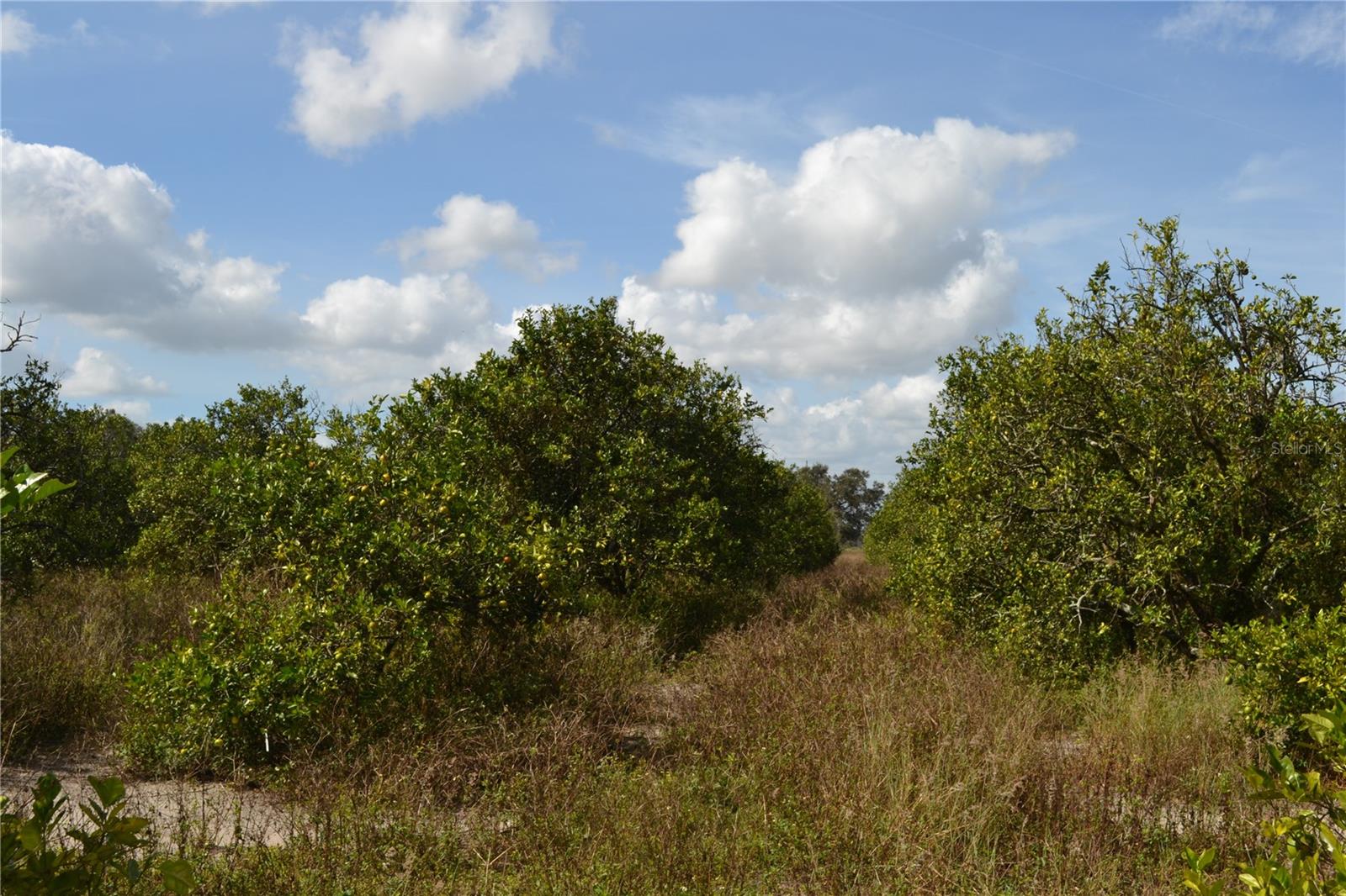 The south portion of a larger tract. Currently planted to an active citrus grove. Great location for a single family home site or combined with adjacent parcels for development.