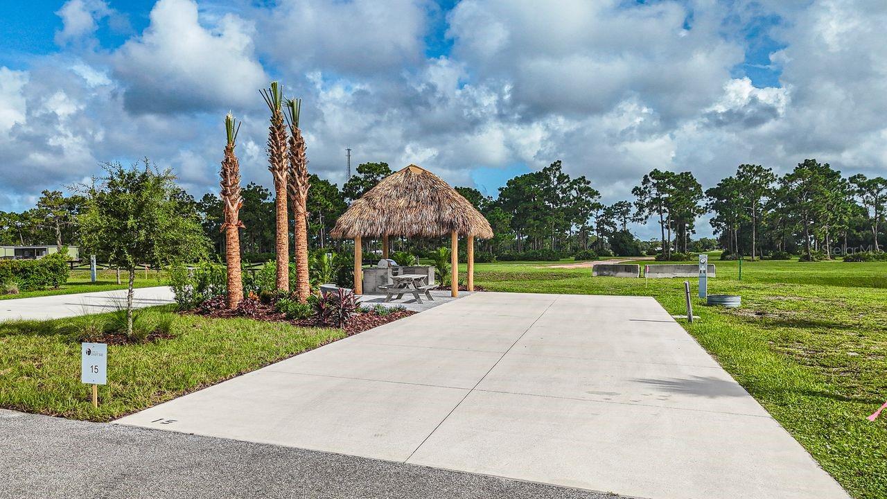 Discover an exceptional opportunity to own a slice of luxury in one of Central Florida’s most sought-after RV resorts at Resort at Canopy Oaks. Whether you're seeking a refined personal retreat or a professionally managed income-producing property, this rare 45’ x 90’ RV site offers the best of both worlds. Set within a 435-acre gated paradise, ownership includes access to a tropical tiki bar, resort-style pool and hot tub, pickleball courts, fitness center, full-service spa, and on-site dining — all designed for effortless luxury living in a carefree, managed community. Lot 15 is a Diamond site featuring a custom tiki hut, beautiful landscaping, and a paver patio with built-in seating. It also includes an outdoor kitchen complete with a gas grill and stainless-steel sink. Situated on a perimeter lot for maximum privacy, this site offers the perfect blend of comfort, functionality, and outdoor living. For those considering investment potential, Diamond sites typically book faster and command higher rental rates, making this property an attractive opportunity for both personal enjoyment and income generation. . **Developer incentives are currently available, adding even more appeal to this exceptional opportunity.**