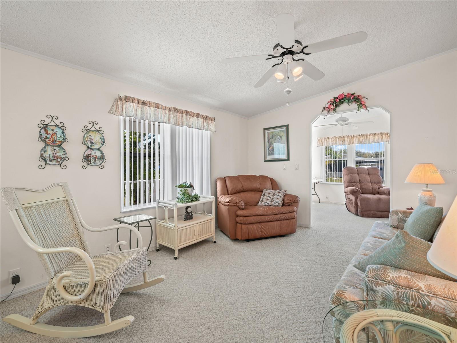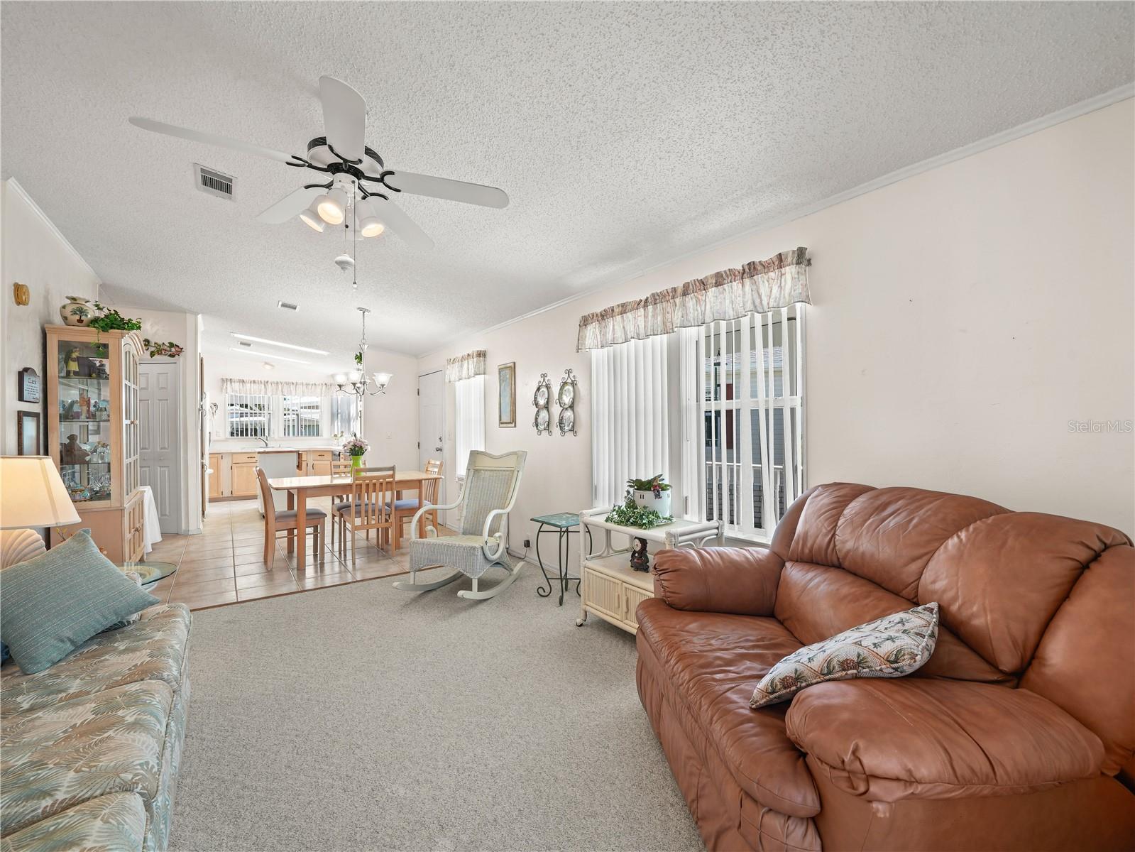 Well appointed and meticulously cared for, this two bedroom/two bathroom manufactured home has a new driveway and carport that will accommodate two vehicles, and has a covered porch and ramp for easy handicapped accessibility. The kitchen has beautiful solid wood cabinets and plenty of counter space, plus an island, and comes with a complete appliance package. The free-flowing open concept floor plan leads to a spacious family room, which is perfect for large gatherings of family or friends. Outside you will find a Club Car GOLF CART which is included in the list price, a shed that houses a washer and dryer that conveys to the new owner, and a patio with a view of the lake. You own the land here at Saddlebag Lake Resort, a premiere 55+ gated community, and the low HOA dues gives you access to all the amenities, including a clubhouse with planned activities, a sparkling heated community pool, a screen-enclosed hot tub, pickle ball and tennis courts, shuffleboard courts, horse shoe pits, a beach house that you can use at no cost for private parties, a driving range, a rec room with fitness equipment, saunas and pool tables, even a dog park for your furry family members. Of course, you can go boating and fishing in Saddlebag Lake! Don't let this home get away, call now for your private tour.