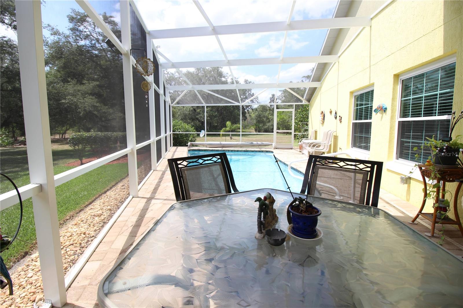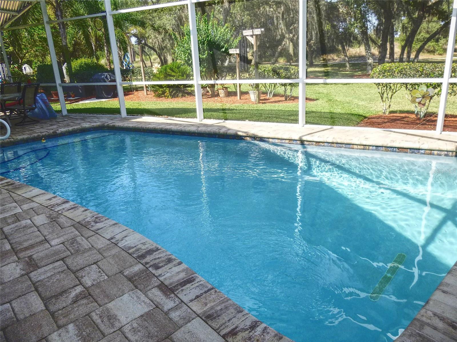 This beautiful pool home is located in a desirable area in the Oakwood Community. The home is a spacious two bedroom and two bath home. You will enjoy the open floor plan with split bedrooms. There is a large primary bedroom suite and en-suite bathroom that has a walk-in closet, dual sinks and walk-in shower. The large kitchen has been updated with quartz counter tops, ceramic tile floor, island breakfast bar and a closet pantry. The home boasts of a amazing view of your backyard oasis which is a peaceful setting with no backdoor neighbors. You can step out on your screened in patio/pool area, it’s the perfect place for entertaining family and friends. The swimming pool is heated and is a salt water pool. The home has additional amenities include a garage screen, inside laundry room with washer and dryer included, an irrigation well so you can water your lawn without increasing your water bill. Oakwood Community is a gated and the gate is closed at 6PM. The property is conveniently located just outside the city limits of Lake Wales and is approximately 1 1/2 hour drive to Tampa or Orlando.