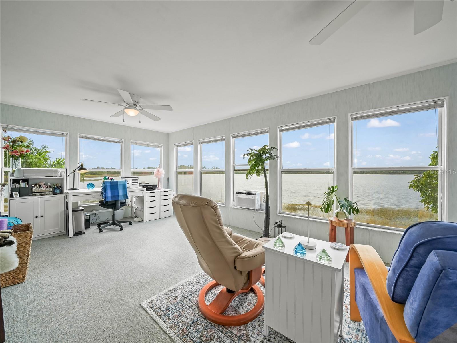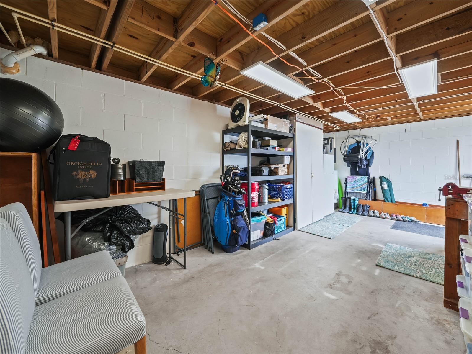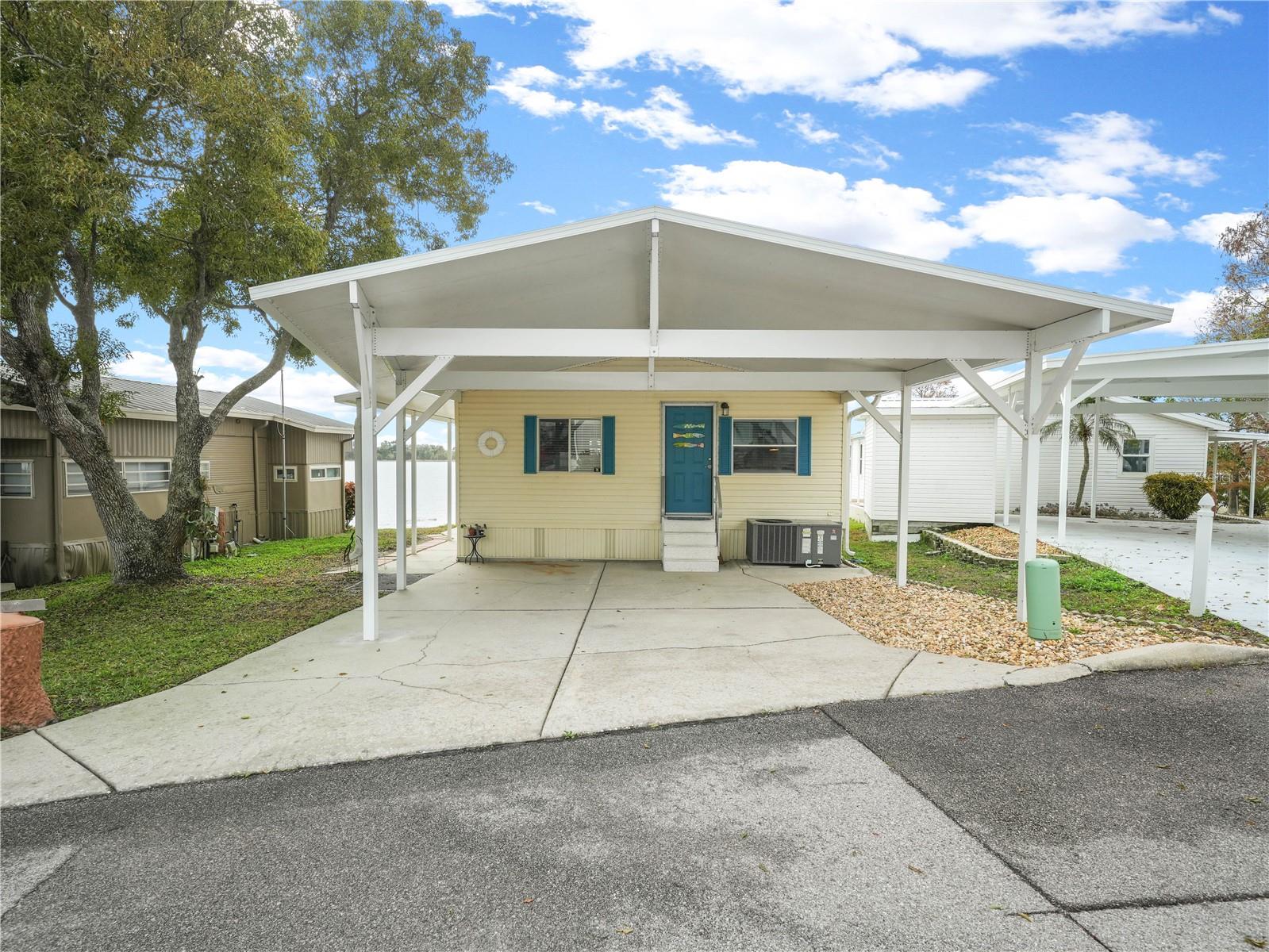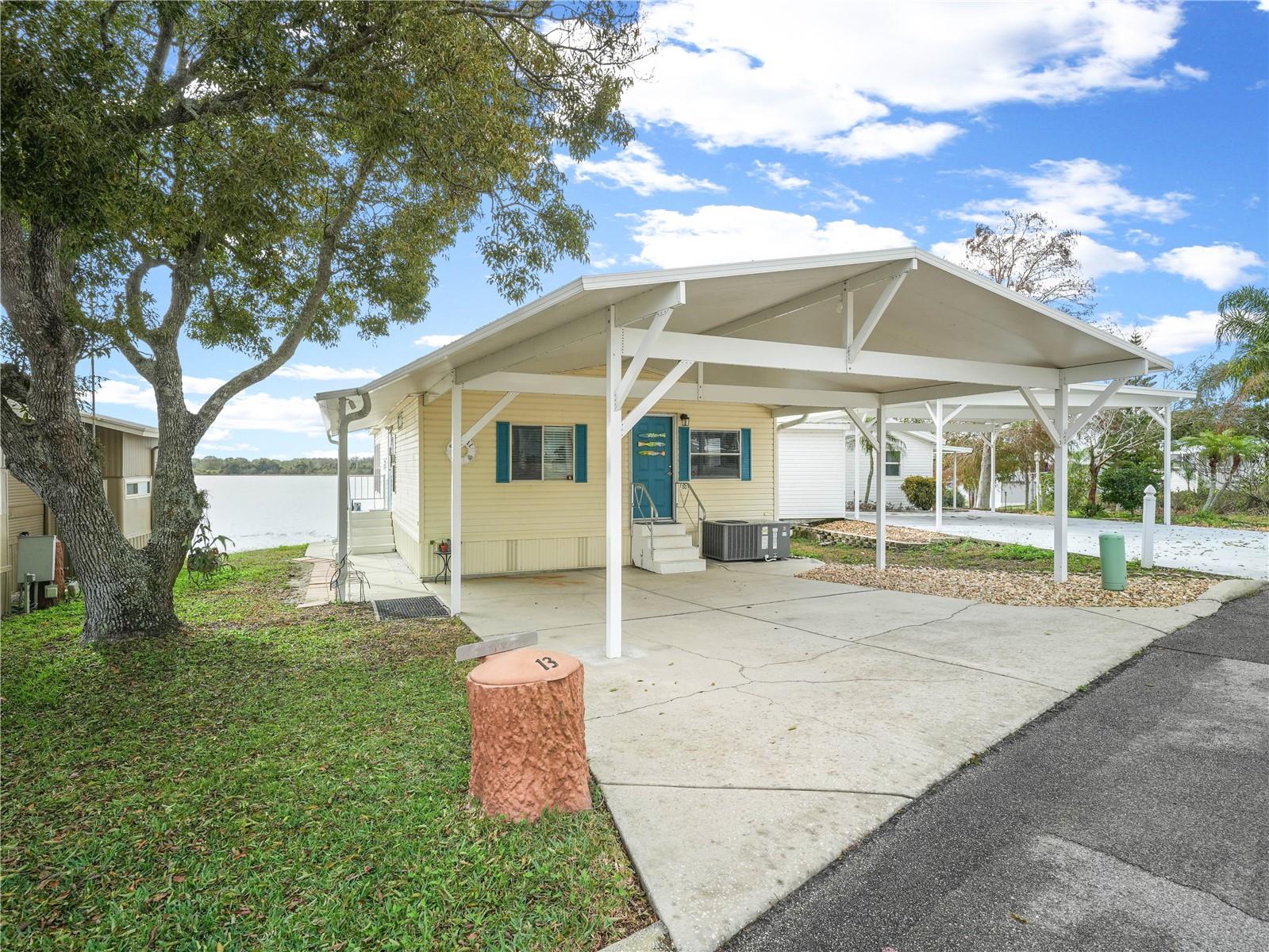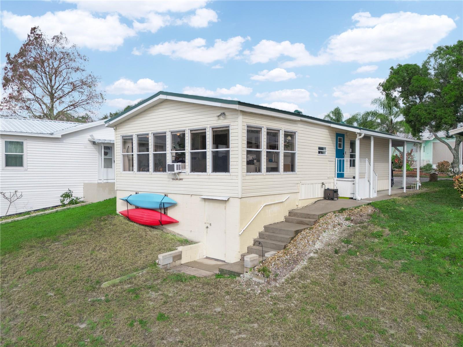 **Lake Front 2 Bedroom, 2 Bathroom Spacious Home with Basement** This magnificent lakefront home boasts two bedrooms, two bathrooms, and an expansive basement on your own deeded lot. Unlike other homes on the lake, this elevated lot exempts it from flood insurance requirements. The Florida room features large windows that reveals breathtaking views of Saddlebag Lake, providing an ideal setting for morning coffee and tranquil mornings. The home’s metal roof ensures additional security during severe weather conditions. The master bedroom boasts mirrored glass doors leading to the built-in closet. The spacious kitchen and dining area features modern storage cabinets and an island with a butcher block countertop and additional storage drawers. Many furnishings included with home (complete listing available upon request). The bathrooms are both luxurious and functional. One bathroom features a corner shower with glass enclosure, while the other offers a walk-in shower with fold-down seat and grab bars. The nearly 23x11 basement provides a unique and secure space offering ample storage and room for an air conditioned home workshop. The HVAC system is a heat pump model, providing cost-effective heating and cooling. The community offers an array of amenities, including a golf driving range, dog park, boat ramp, fishing pier with private marina, boating access to the lake and canals, beach house and community clubhouse, a large pool and spa, tennis courts, pickleball courts, professional-grade shuffleboard courts, horseshoe pits, a community pavilion for events and picnics, and an extensive list of clubs and activities. With its lakefront location, carport, modern elegant interior, basement workshop, and comprehensive community amenities, this home embodies the perfect blend of tranquility, security, and active lifestyle. Don’t miss the opportunity to experience your dream home! Contact us today for a tour and schedule your move.
