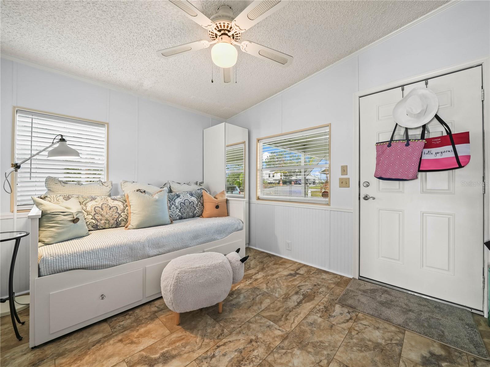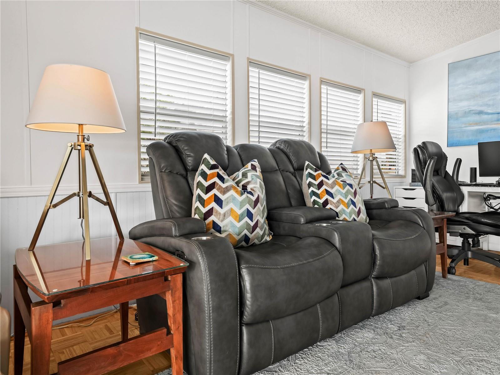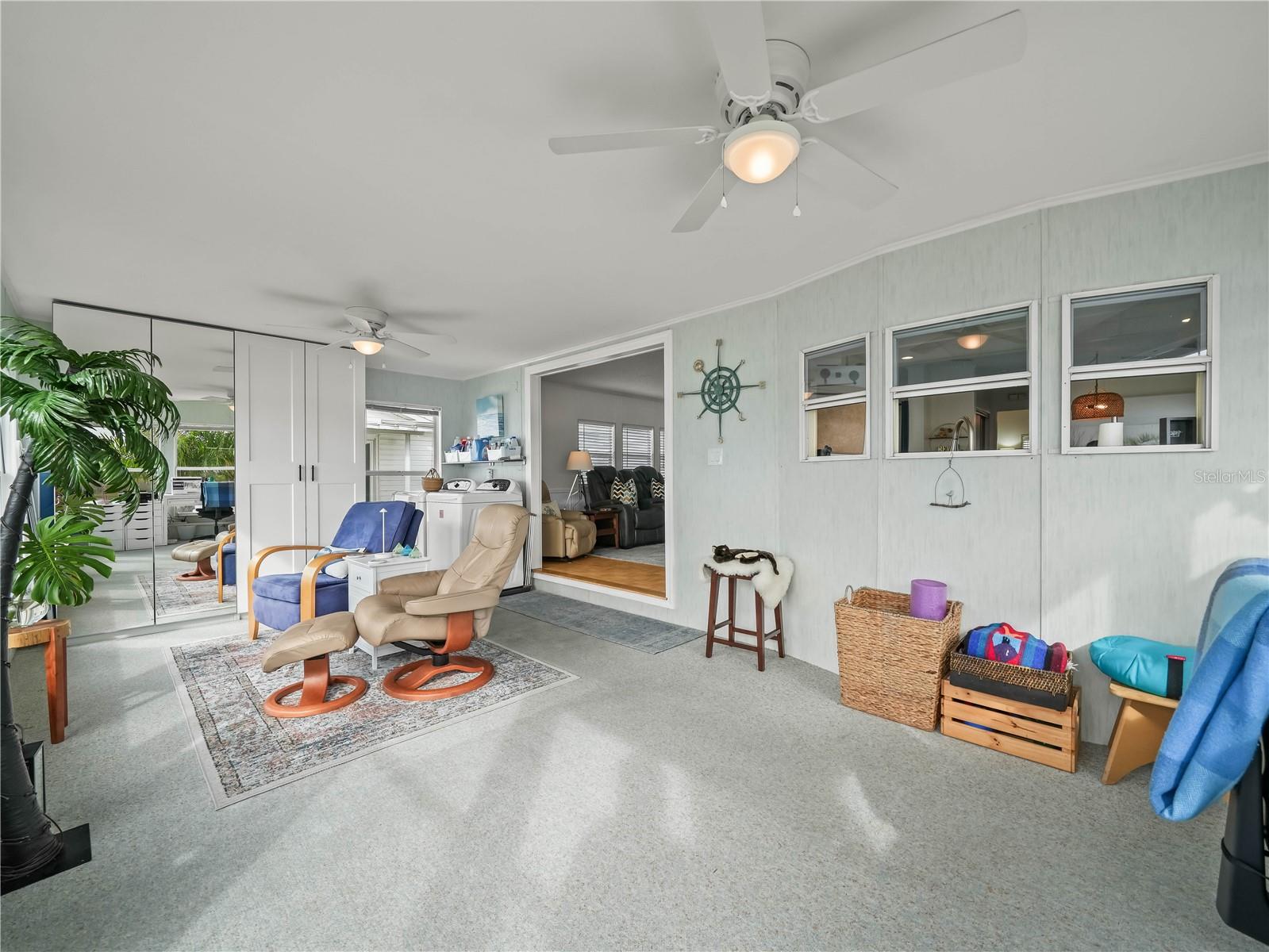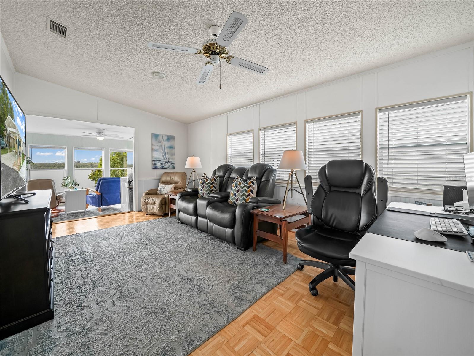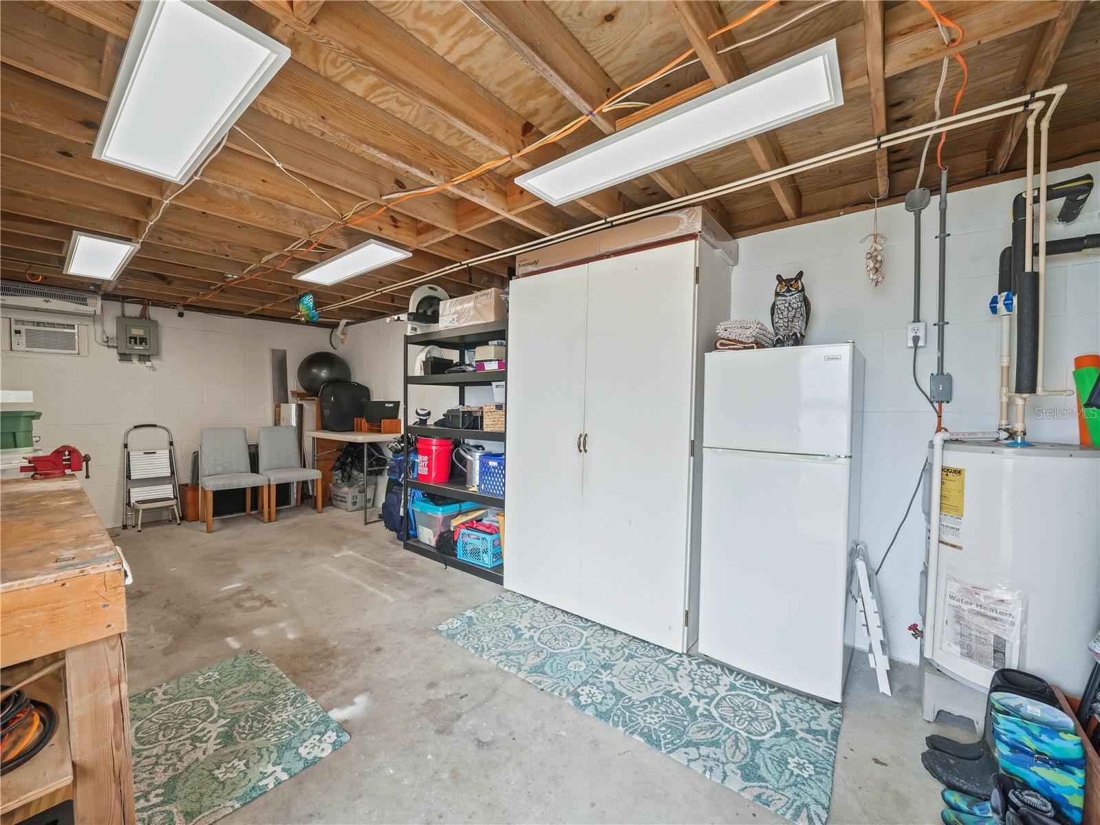 **Lake Front 2 Bedroom, 2 Bathroom Spacious Home with Basement** This magnificent lakefront home boasts two bedrooms, two bathrooms, and an expansive basement on your own deeded lot. Unlike other homes on the lake, this elevated lot exempts it from flood insurance requirements. The Florida room features large windows that reveals breathtaking views of Saddlebag Lake, providing an ideal setting for morning coffee and tranquil mornings. The home’s metal roof ensures additional security during severe weather conditions. The master bedroom boasts mirrored glass doors leading to the built-in closet. The spacious kitchen and dining area features modern storage cabinets and an island with a butcher block countertop and additional storage drawers. Many furnishings included with home (complete listing available upon request). The bathrooms are both luxurious and functional. One bathroom features a corner shower with glass enclosure, while the other offers a walk-in shower with fold-down seat and grab bars. The nearly 23x11 basement provides a unique and secure space offering ample storage and room for an air conditioned home workshop. The HVAC system is a heat pump model, providing cost-effective heating and cooling. The community offers an array of amenities, including a golf driving range, dog park, boat ramp, fishing pier with private marina, boating access to the lake and canals, beach house and community clubhouse, a large pool and spa, tennis courts, pickleball courts, professional-grade shuffleboard courts, horseshoe pits, a community pavilion for events and picnics, and an extensive list of clubs and activities. With its lakefront location, carport, modern elegant interior, basement workshop, and comprehensive community amenities, this home embodies the perfect blend of tranquility, security, and active lifestyle. Don’t miss the opportunity to experience your dream home! Contact us today for a tour and schedule your move.