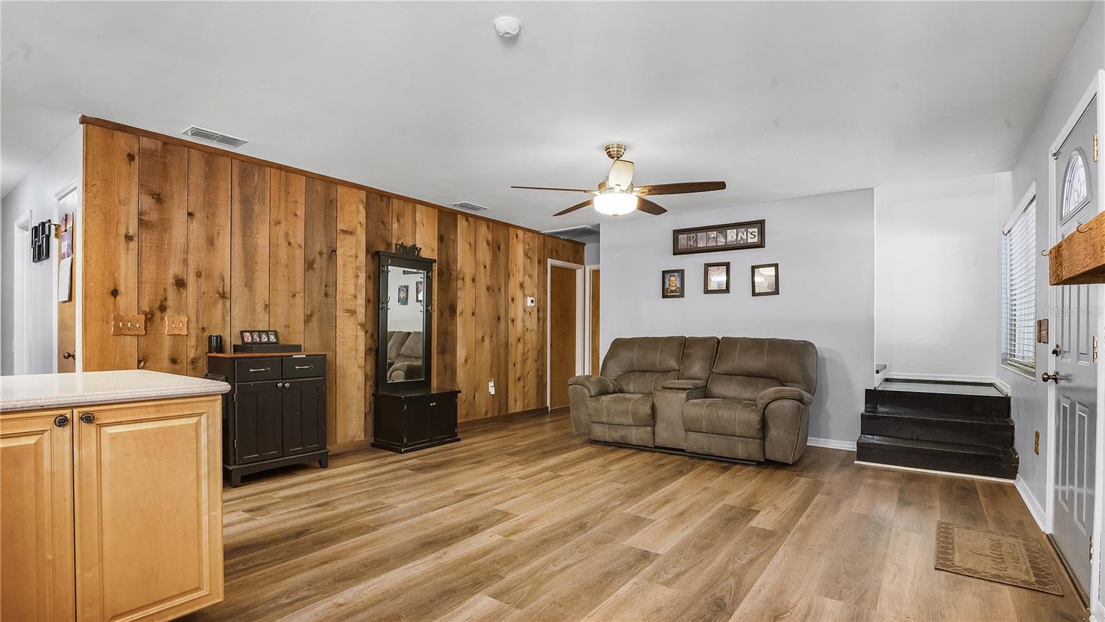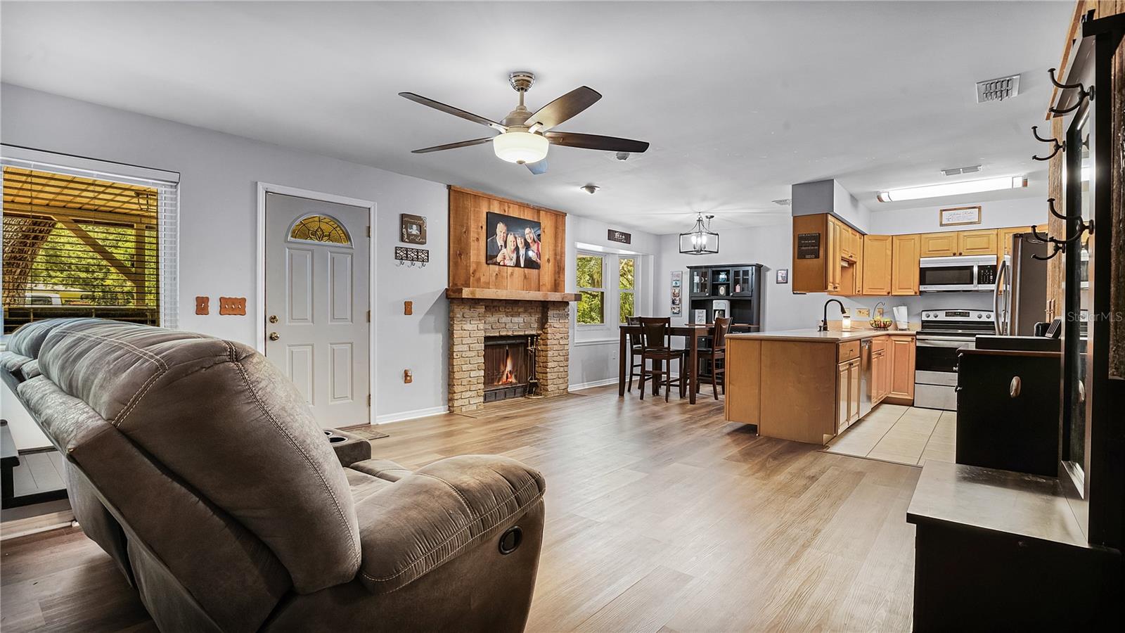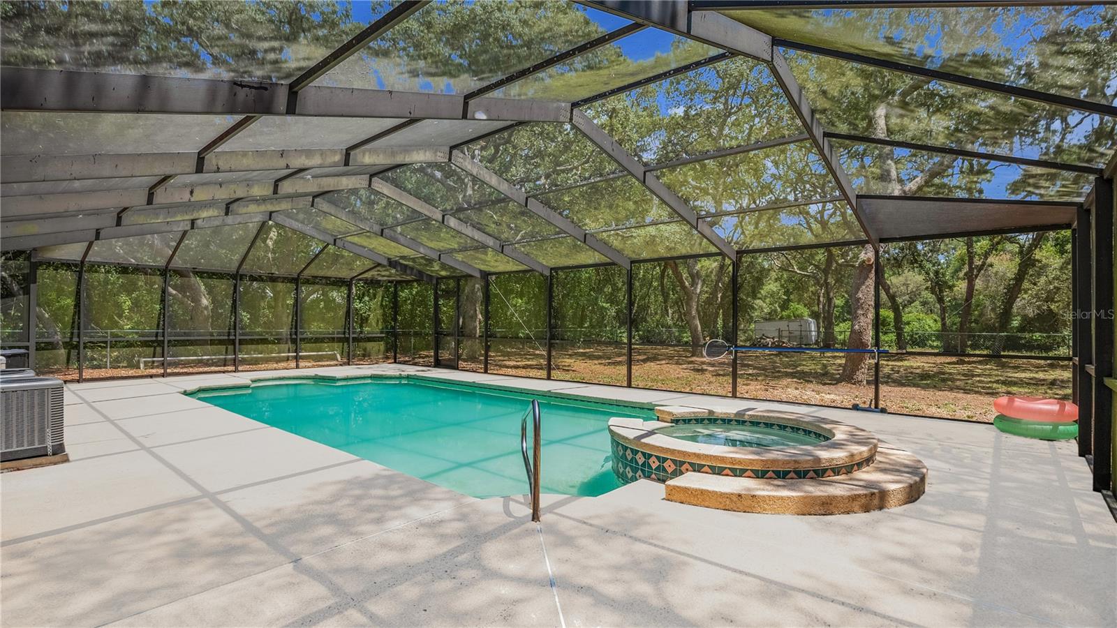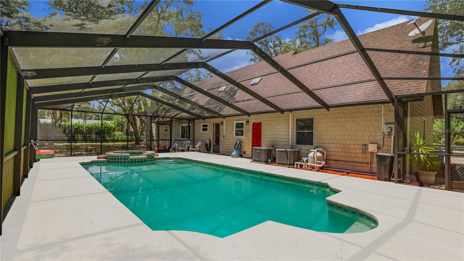 Check out this stunning 4-bedroom, 2.5-bath Hulbert-built pool home, perfectly positioned on a large lot with plenty of room for everyone! The fenced backyard is ready for kids and pets, and there’s even extra space beyond the chainlink backyard fence to park your RV, boat, or truck—no HOA restrictions! Recent updates include a new A/C system installed in 2019 and energy-efficient hurricane windows added in 2018. The kitchen features solid surface countertops, wood cabinetry, and stainless steel appliances, seamlessly flowing into the open living and dining areas, complete with a cozy fireplace. Most of the home features beautiful new vinyl flooring. The spacious Master Suite with an ensuite bath is located downstairs, along with a guest room, while upstairs offers two additional bedrooms, a full bathroom, and a generous family room and office space. Enjoy year-round outdoor living with a screened-in pool, Jaccuzzi tub, and an expansive patio—ideal for both relaxing and entertaining.