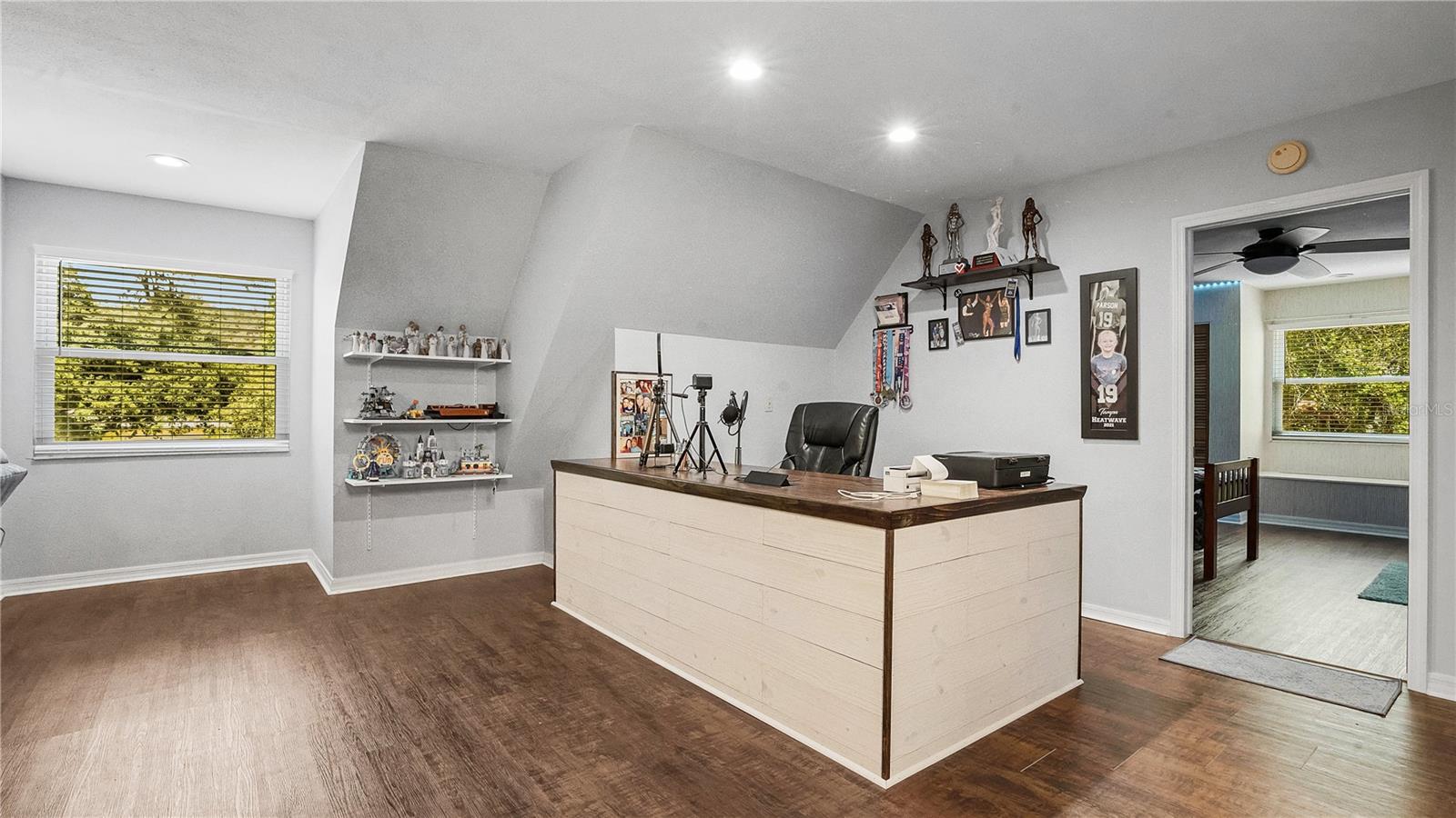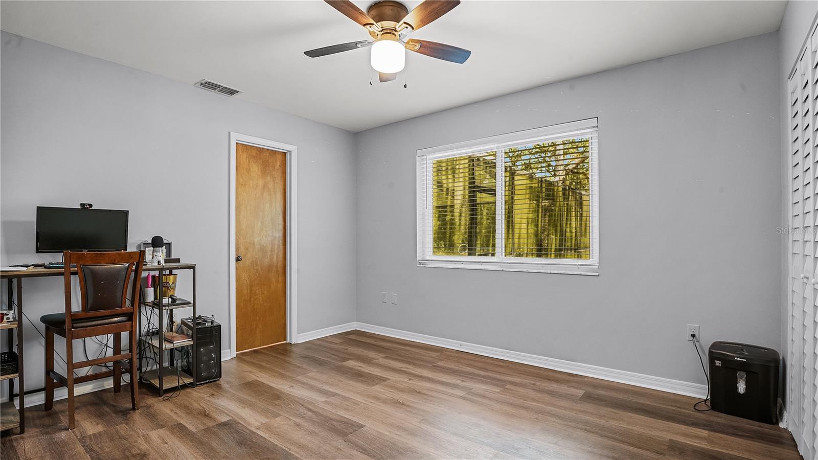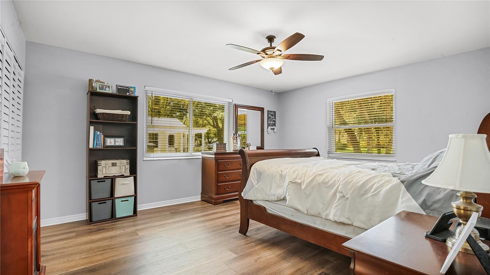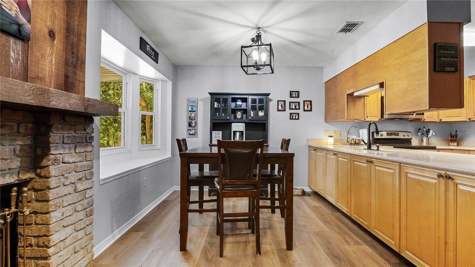 Check out this stunning 4-bedroom, 2.5-bath Hulbert-built pool home, perfectly positioned on a large lot with plenty of room for everyone! The fenced backyard is ready for kids and pets, and there’s even extra space beyond the chainlink backyard fence to park your RV, boat, or truck—no HOA restrictions! Recent updates include a new A/C system installed in 2019 and energy-efficient hurricane windows added in 2018. The kitchen features solid surface countertops, wood cabinetry, and stainless steel appliances, seamlessly flowing into the open living and dining areas, complete with a cozy fireplace. Most of the home features beautiful new vinyl flooring. The spacious Master Suite with an ensuite bath is located downstairs, along with a guest room, while upstairs offers two additional bedrooms, a full bathroom, and a generous family room and office space. Enjoy year-round outdoor living with a screened-in pool, Jaccuzzi tub, and an expansive patio—ideal for both relaxing and entertaining.