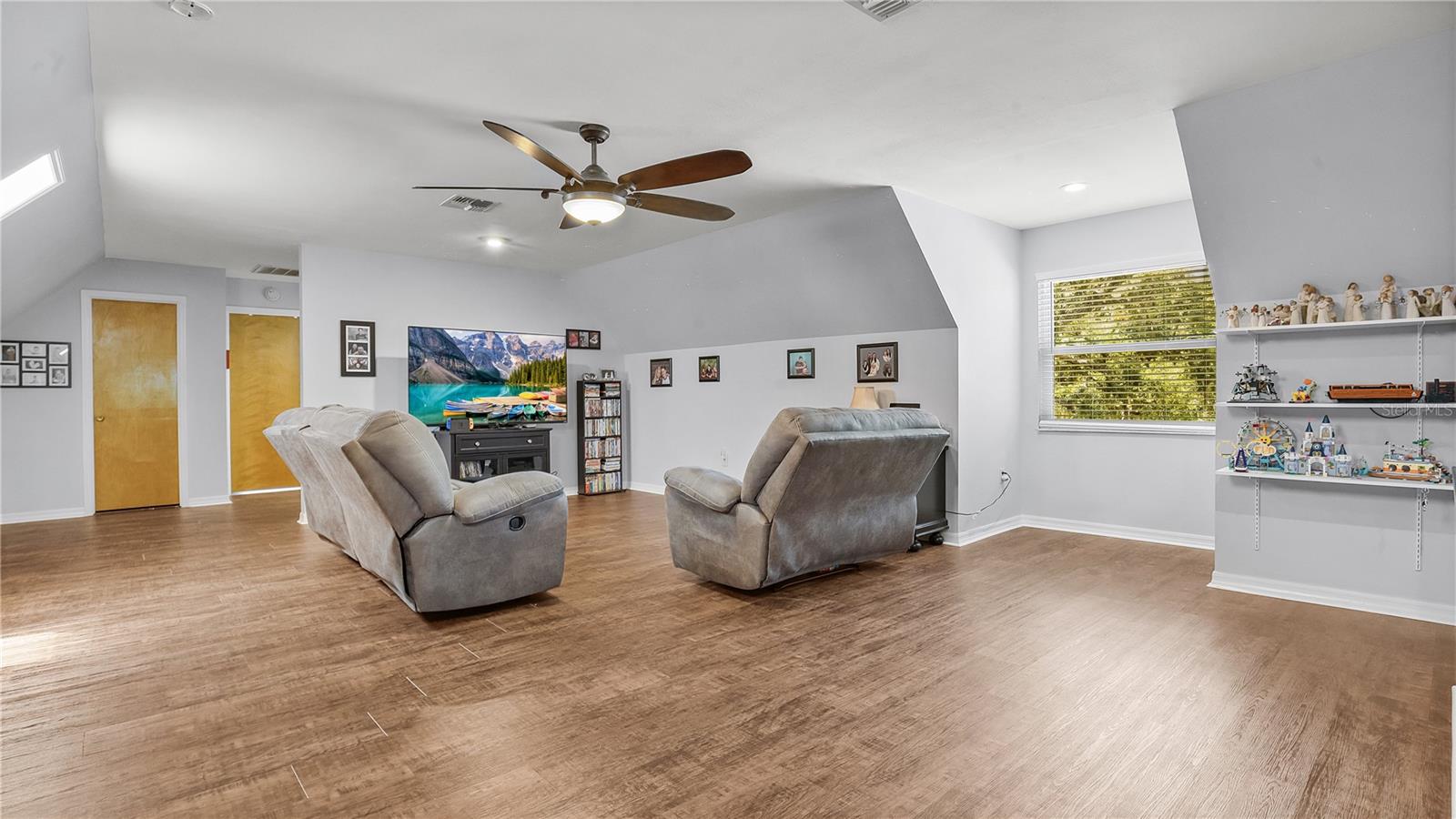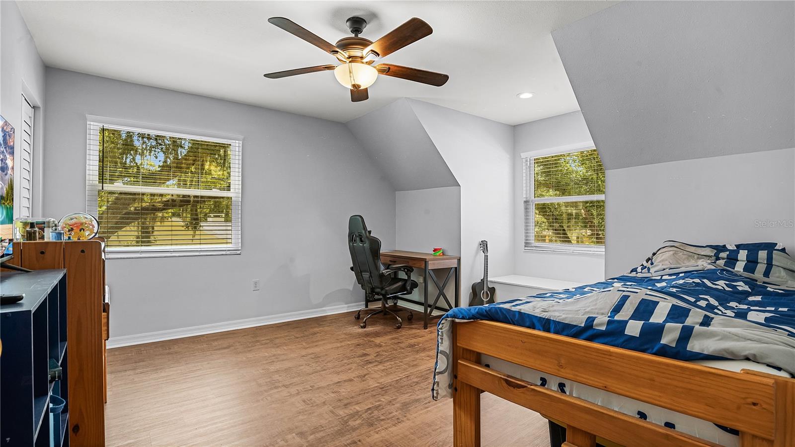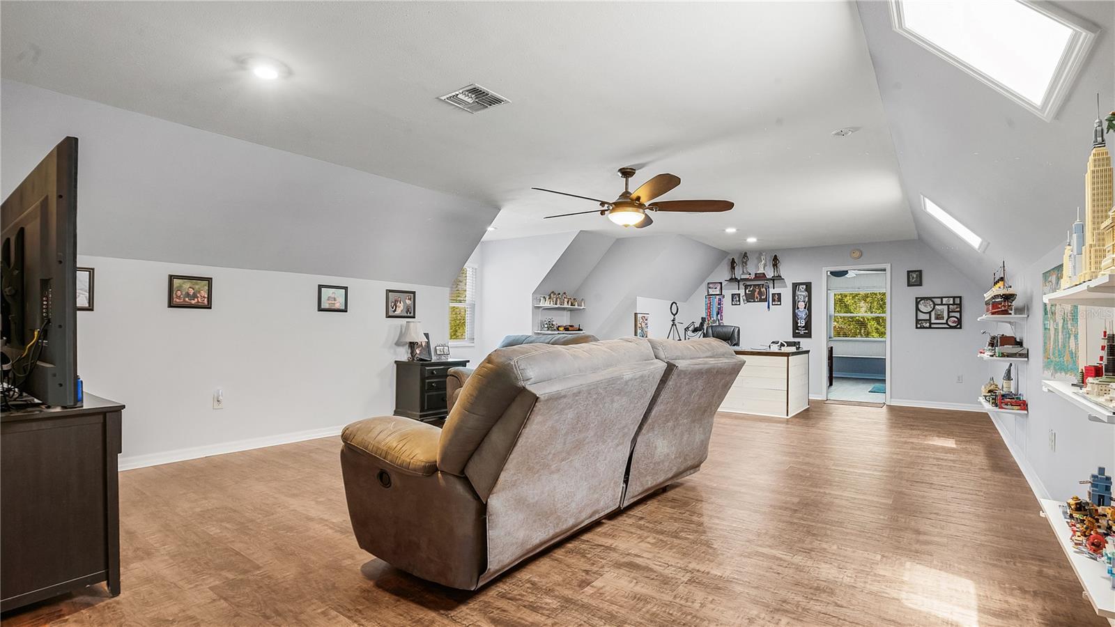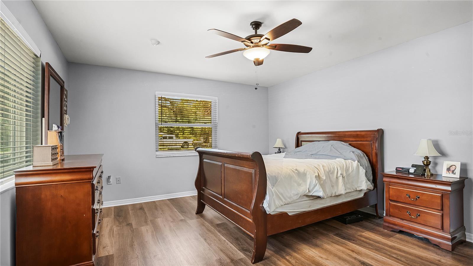 Check out this stunning 4-bedroom, 2.5-bath Hulbert-built pool home, perfectly positioned on a large lot with plenty of room for everyone! The fenced backyard is ready for kids and pets, and there’s even extra space beyond the chainlink backyard fence to park your RV, boat, or truck—no HOA restrictions! Recent updates include a new A/C system installed in 2019 and energy-efficient hurricane windows added in 2018. The kitchen features solid surface countertops, wood cabinetry, and stainless steel appliances, seamlessly flowing into the open living and dining areas, complete with a cozy fireplace. Most of the home features beautiful new vinyl flooring. The spacious Master Suite with an ensuite bath is located downstairs, along with a guest room, while upstairs offers two additional bedrooms, a full bathroom, and a generous family room and office space. Enjoy year-round outdoor living with a screened-in pool, Jaccuzzi tub, and an expansive patio—ideal for both relaxing and entertaining.