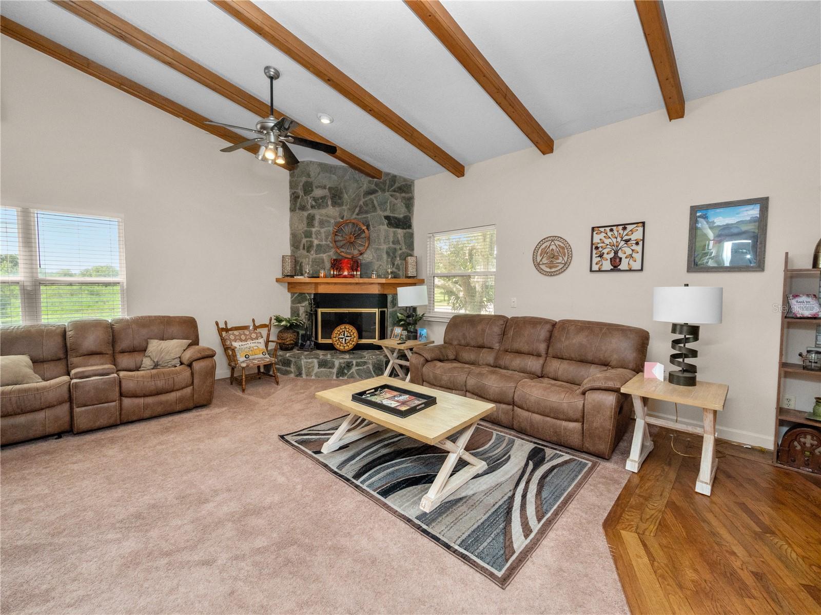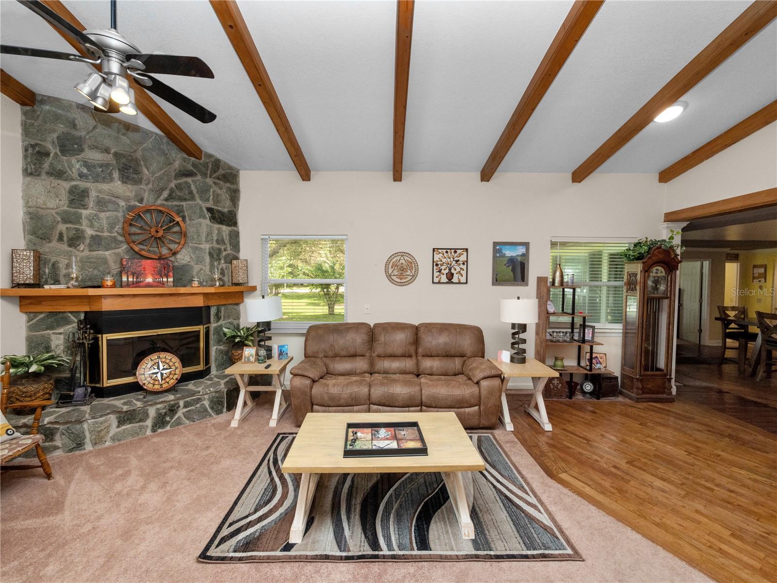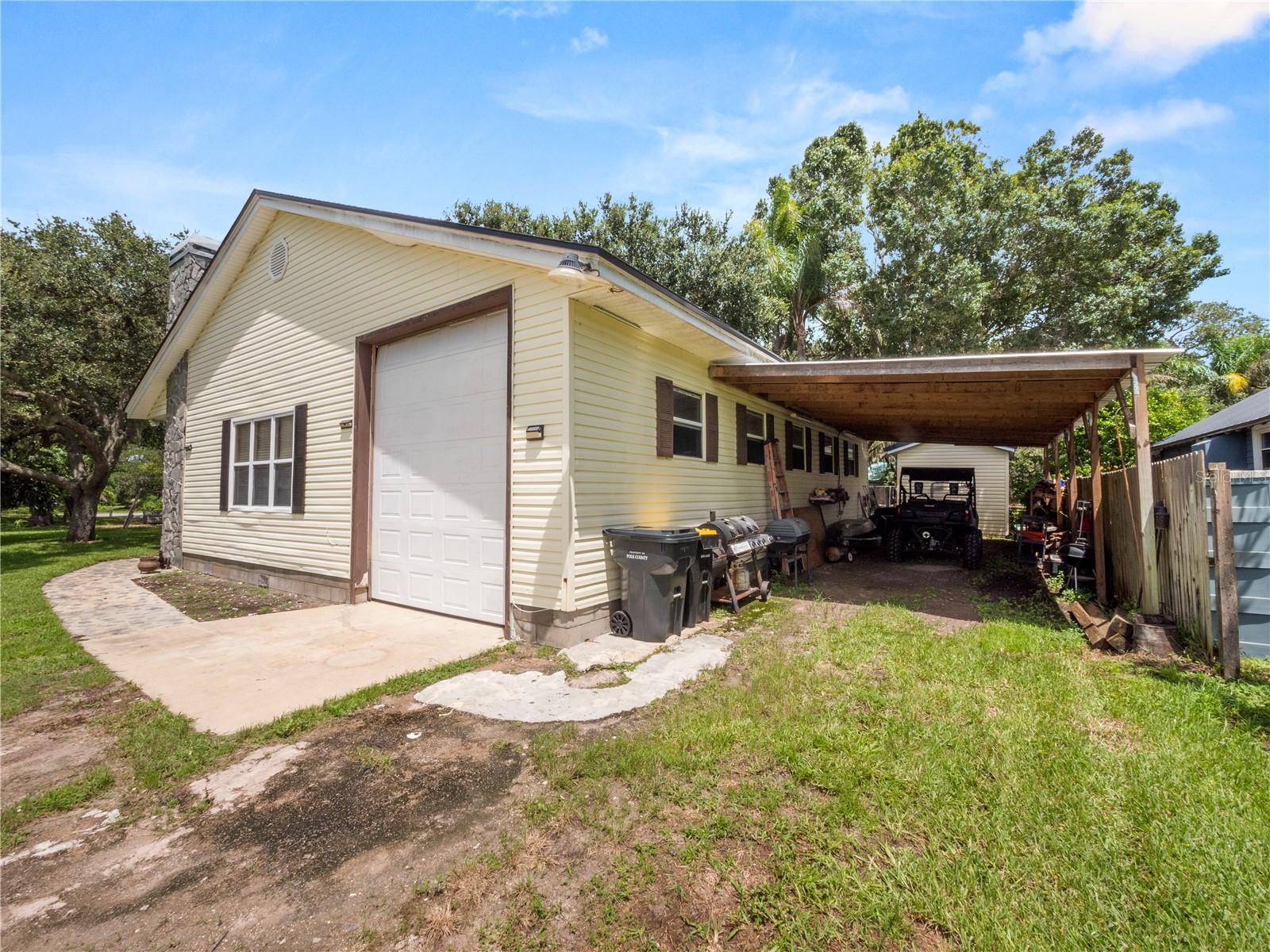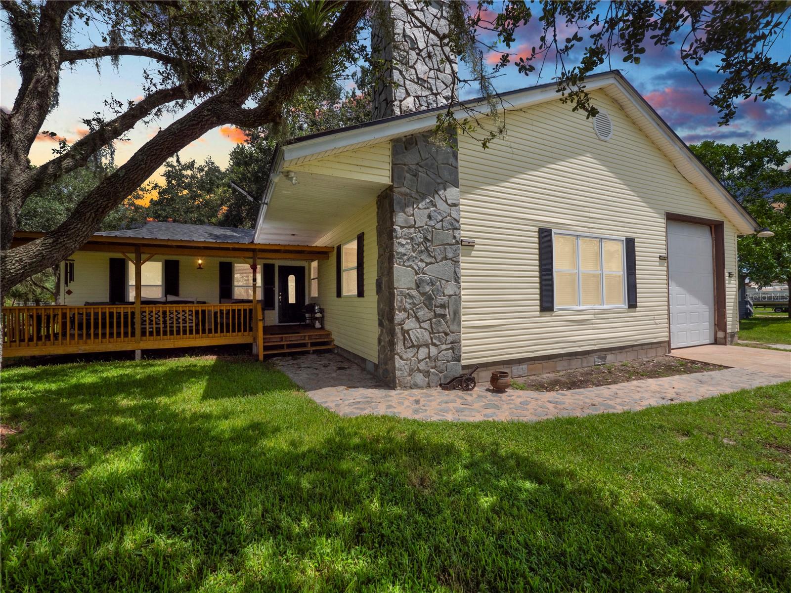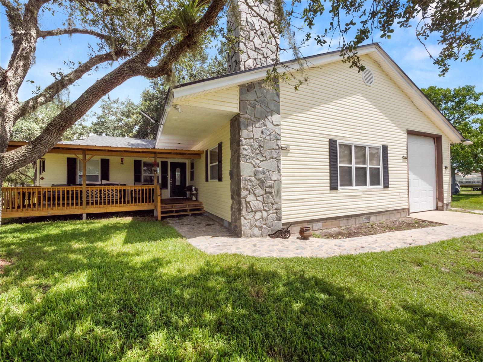 Welcome to your 3 bedroom 2 bathroom split plan home with access to Lake Kissimmee! With a NEW roof and water heater in 2024 and a NEW AC in 2021! Upon arrival you will fall in love with the cozy front covered deck. The perfect place to sip your morning coffee. Entering the home from your front deck you are greeted by a huge completely remodeled kitchen that includes new cabinets, granite countertops, stainless steel appliances, a gas range and recessed lighting! Look up in the kitchen and admire the added detail work on the ceiling. Strolling into your living room you will find vaulted ceilings with wood beam detailing, a stone wood burning fireplace and plenty of natural light. The primary bedroom, located just off the kitchen is spacious and bright with a bay window and vaulted ceilings. The large en-suite provides a single sink vanity and large jetted jacuzzi tub/shower combination. The remaining two bedrooms, located on the opposite side of the home are both spacious with the bedroom at the back of the home providing access to your back yard through French doors. The main bathroom with Corian top vanity offers storage and a stand up shower. There is also an indoor laundry room with space for an additional refrigerator or freezer should you prefer, or use it as an additional storage area. Also included is a one car garage and one car carport space. This unique property also has a septic and lift station, well with water softener. There is a shed/workshop outside providing additional storage space. You also have your own boat house located at the back of the property with canal access that leads you to Lake Kissimmee! This home is true old Florida living at its finest! Schedule your private showing today and check out all this home has to offer!!
