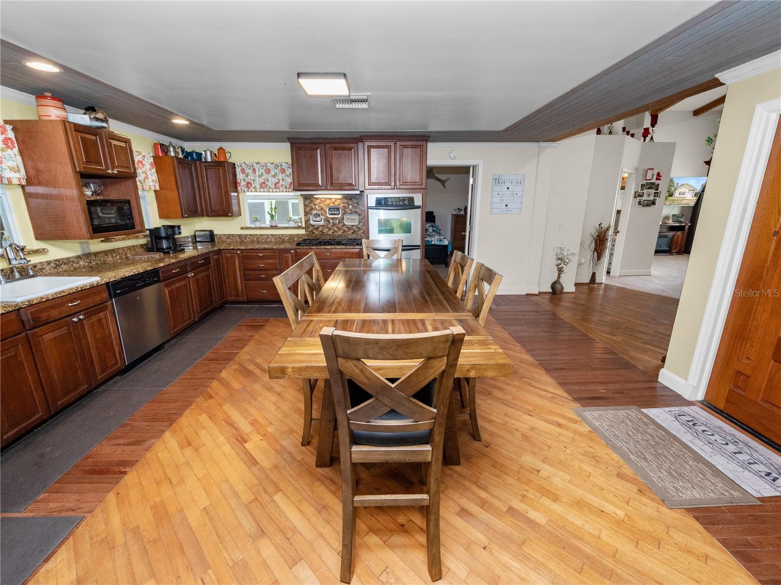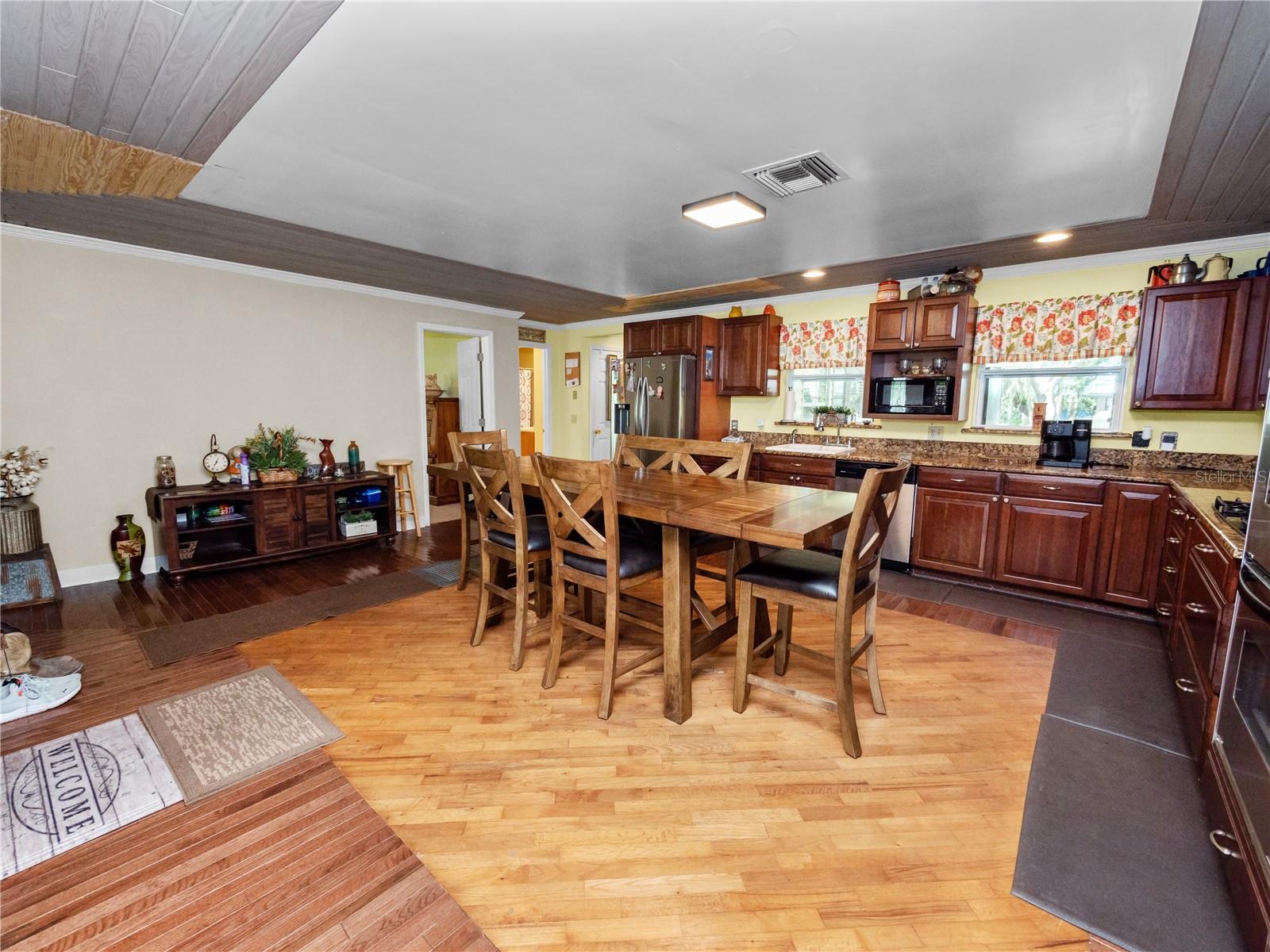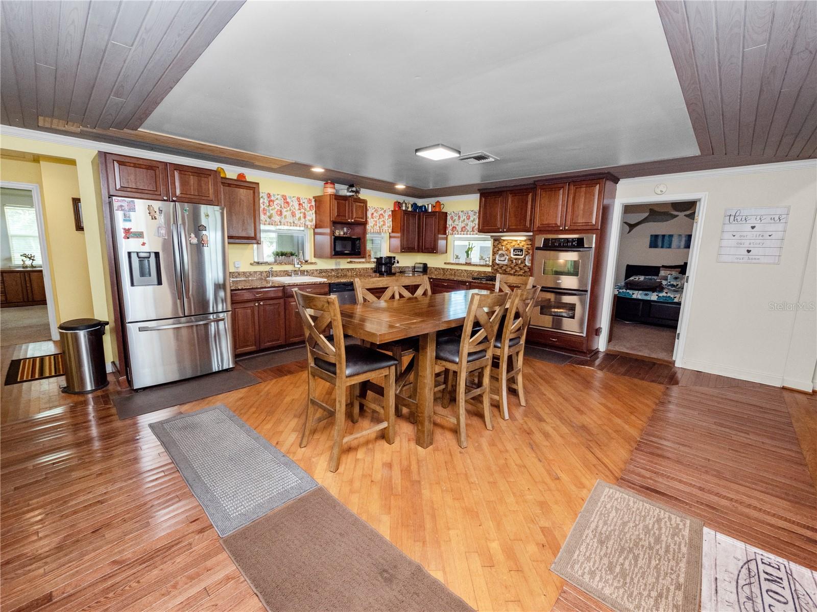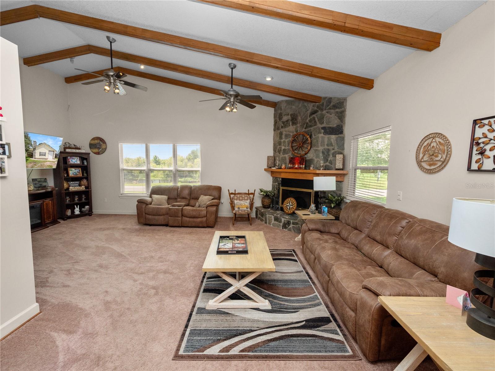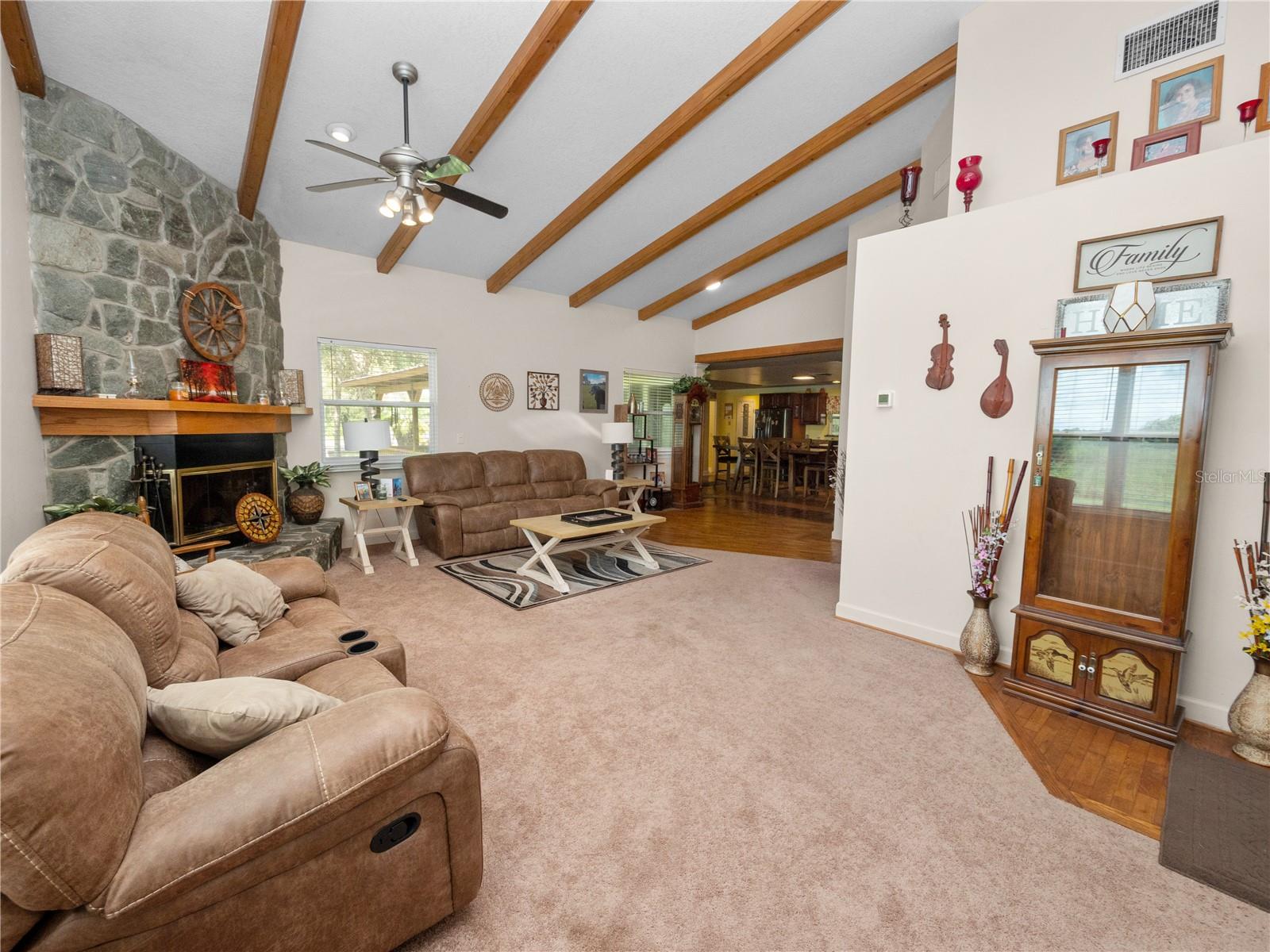 Welcome to your 3 bedroom 2 bathroom split plan home with access to Lake Kissimmee! With a NEW roof and water heater in 2024 and a NEW AC in 2021! Upon arrival you will fall in love with the cozy front covered deck. The perfect place to sip your morning coffee. Entering the home from your front deck you are greeted by a huge completely remodeled kitchen that includes new cabinets, granite countertops, stainless steel appliances, a gas range and recessed lighting! Look up in the kitchen and admire the added detail work on the ceiling. Strolling into your living room you will find vaulted ceilings with wood beam detailing, a stone wood burning fireplace and plenty of natural light. The primary bedroom, located just off the kitchen is spacious and bright with a bay window and vaulted ceilings. The large en-suite provides a single sink vanity and large jetted jacuzzi tub/shower combination. The remaining two bedrooms, located on the opposite side of the home are both spacious with the bedroom at the back of the home providing access to your back yard through French doors. The main bathroom with Corian top vanity offers storage and a stand up shower. There is also an indoor laundry room with space for an additional refrigerator or freezer should you prefer, or use it as an additional storage area. Also included is a one car garage and one car carport space. This unique property also has a septic and lift station, well with water softener. There is a shed/workshop outside providing additional storage space. You also have your own boat house located at the back of the property with canal access that leads you to Lake Kissimmee! This home is true old Florida living at its finest! Schedule your private showing today and check out all this home has to offer!!