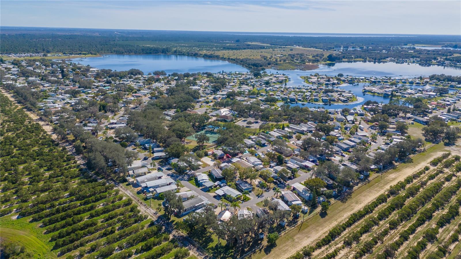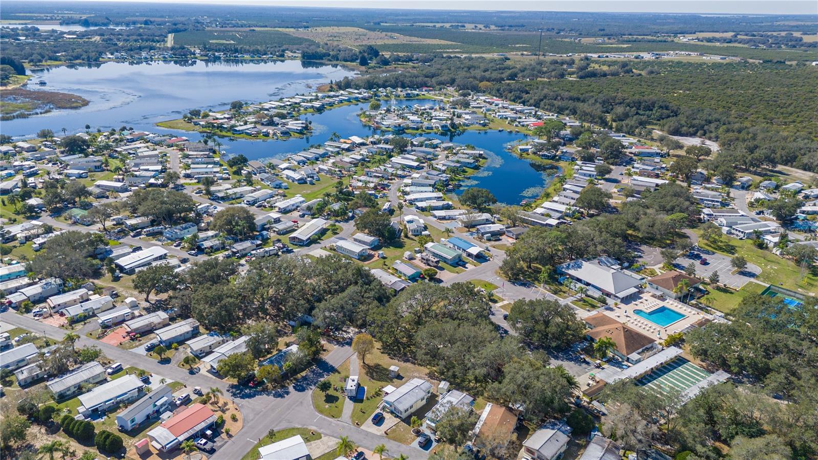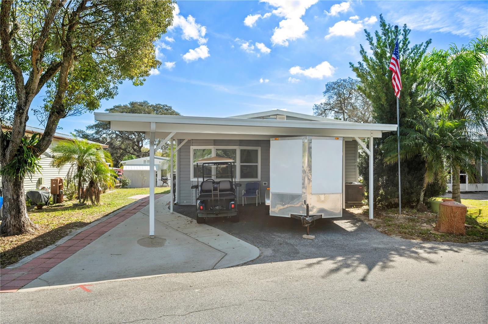 NO STORM DAMAGE! Retreat to Relaxed Living at Saddlebag Lake Resort! Discover your private oasis in this charming mobile home, located within the highly sought-after 55+ Saddlebag Lake Resort community. While not directly on the lake, you can still enjoy the serene lakeside lifestyle the community offers. This 2-bedroom, 2-bathroom home provides the perfect blend of comfort and convenience, complete with a unique outdoor shower for a refreshing experience. A 2013 golf cart is included for easy transportation within the community. Inside, you'll find updated flooring throughout and a convenient inside laundry area. The primary bedroom opens to the side yard, offering a peaceful retreat surrounded by nature. Modern features include dark laminate flooring in the primary bedroom and new sliding glass doors, installed in 2017. Additional highlights include a 2-car carport, a utility shed for extra storage, and an AC unit replaced in 2020, along with new ductwork and an attic fan for efficient climate control. A clean 4-point inspection has been completed for your peace of mind. Saddlebag Lake Resort offers a wealth of amenities, including gated access with 24-hour security, water access, shuffleboard, tennis courts, pickleball, a clubhouse, library, computer club, dog run, and a driving range. Enjoy quiet hours from 11 pm to 7 am and take part in community events like bingo nights, parades, and clubs that create a close-knit, friendly atmosphere. Make this lovely home your retirement haven and enjoy all the benefits of Saddlebag Lake Resort living! **FINANCING AVAILABLE WITH PREFERRED LENDERS**