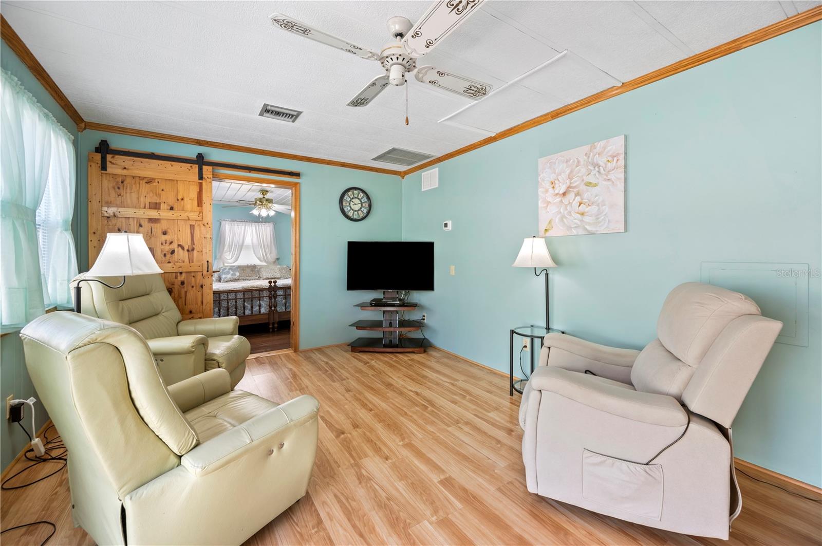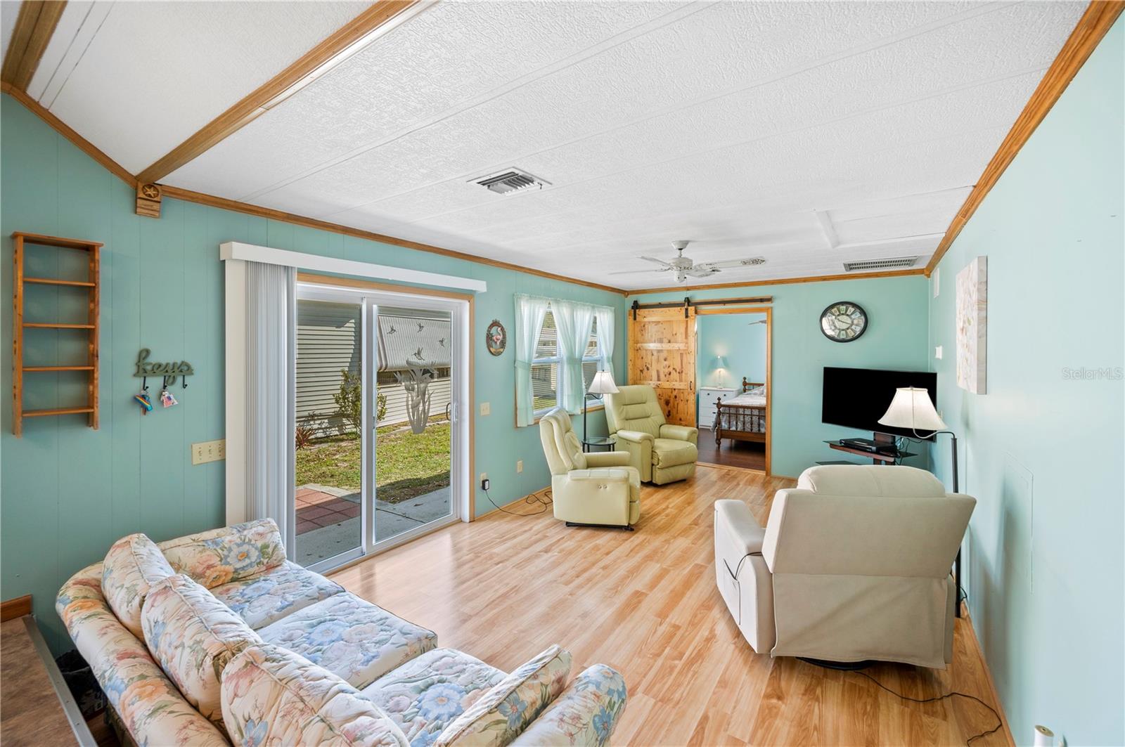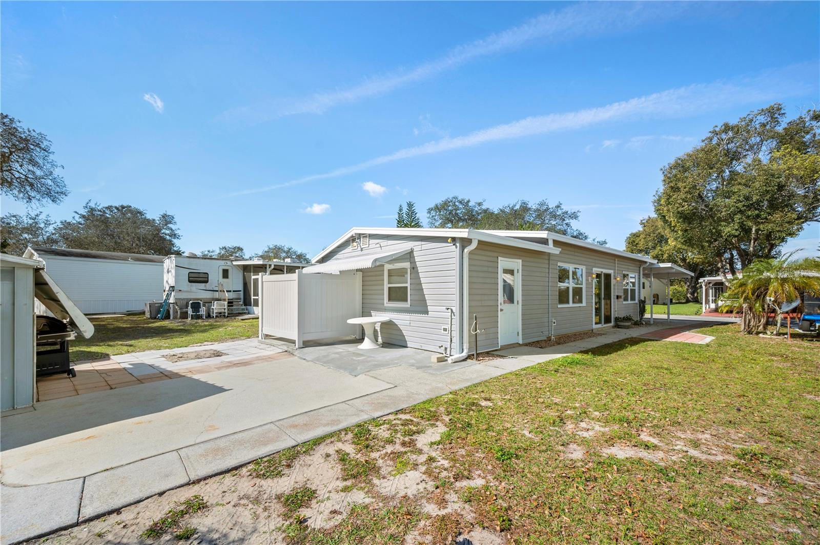 NO STORM DAMAGE! Retreat to Relaxed Living at Saddlebag Lake Resort! Discover your private oasis in this charming mobile home, located within the highly sought-after 55+ Saddlebag Lake Resort community. While not directly on the lake, you can still enjoy the serene lakeside lifestyle the community offers. This 2-bedroom, 2-bathroom home provides the perfect blend of comfort and convenience, complete with a unique outdoor shower for a refreshing experience. A 2013 golf cart is included for easy transportation within the community. Inside, you'll find updated flooring throughout and a convenient inside laundry area. The primary bedroom opens to the side yard, offering a peaceful retreat surrounded by nature. Modern features include dark laminate flooring in the primary bedroom and new sliding glass doors, installed in 2017. Additional highlights include a 2-car carport, a utility shed for extra storage, and an AC unit replaced in 2020, along with new ductwork and an attic fan for efficient climate control. A clean 4-point inspection has been completed for your peace of mind. Saddlebag Lake Resort offers a wealth of amenities, including gated access with 24-hour security, water access, shuffleboard, tennis courts, pickleball, a clubhouse, library, computer club, dog run, and a driving range. Enjoy quiet hours from 11 pm to 7 am and take part in community events like bingo nights, parades, and clubs that create a close-knit, friendly atmosphere. Make this lovely home your retirement haven and enjoy all the benefits of Saddlebag Lake Resort living! **FINANCING AVAILABLE WITH PREFERRED LENDERS**