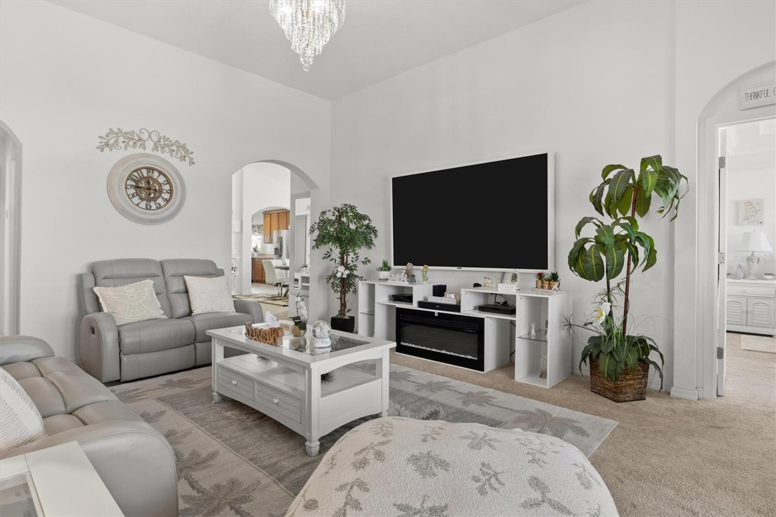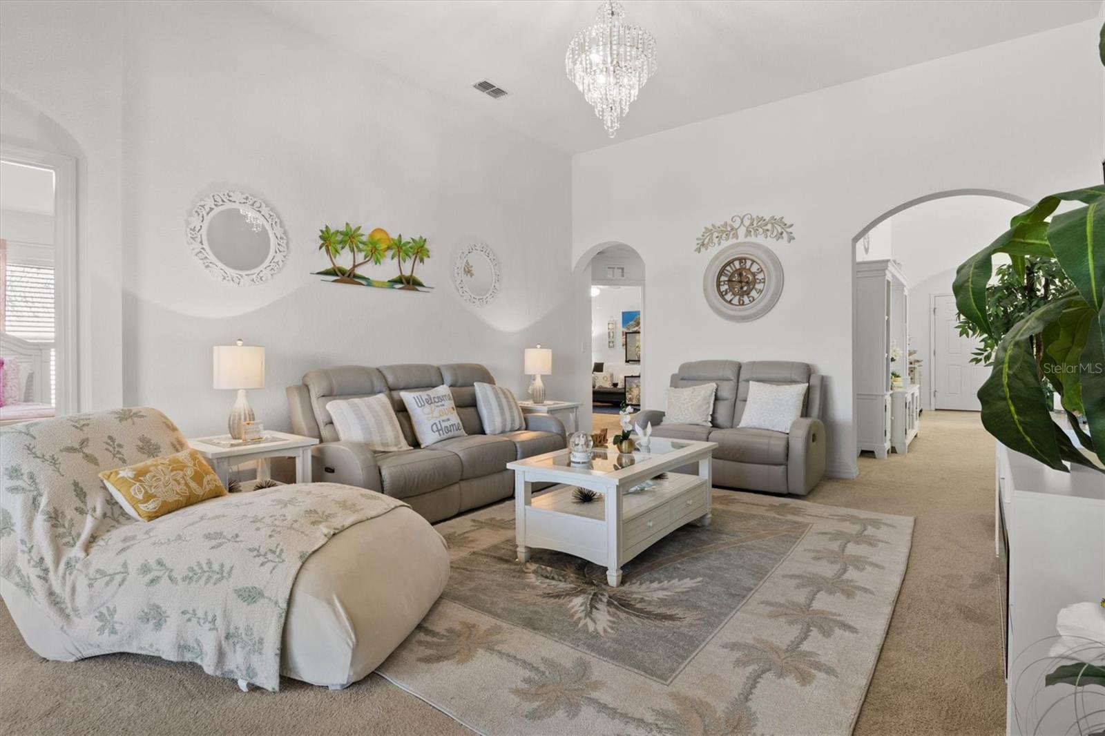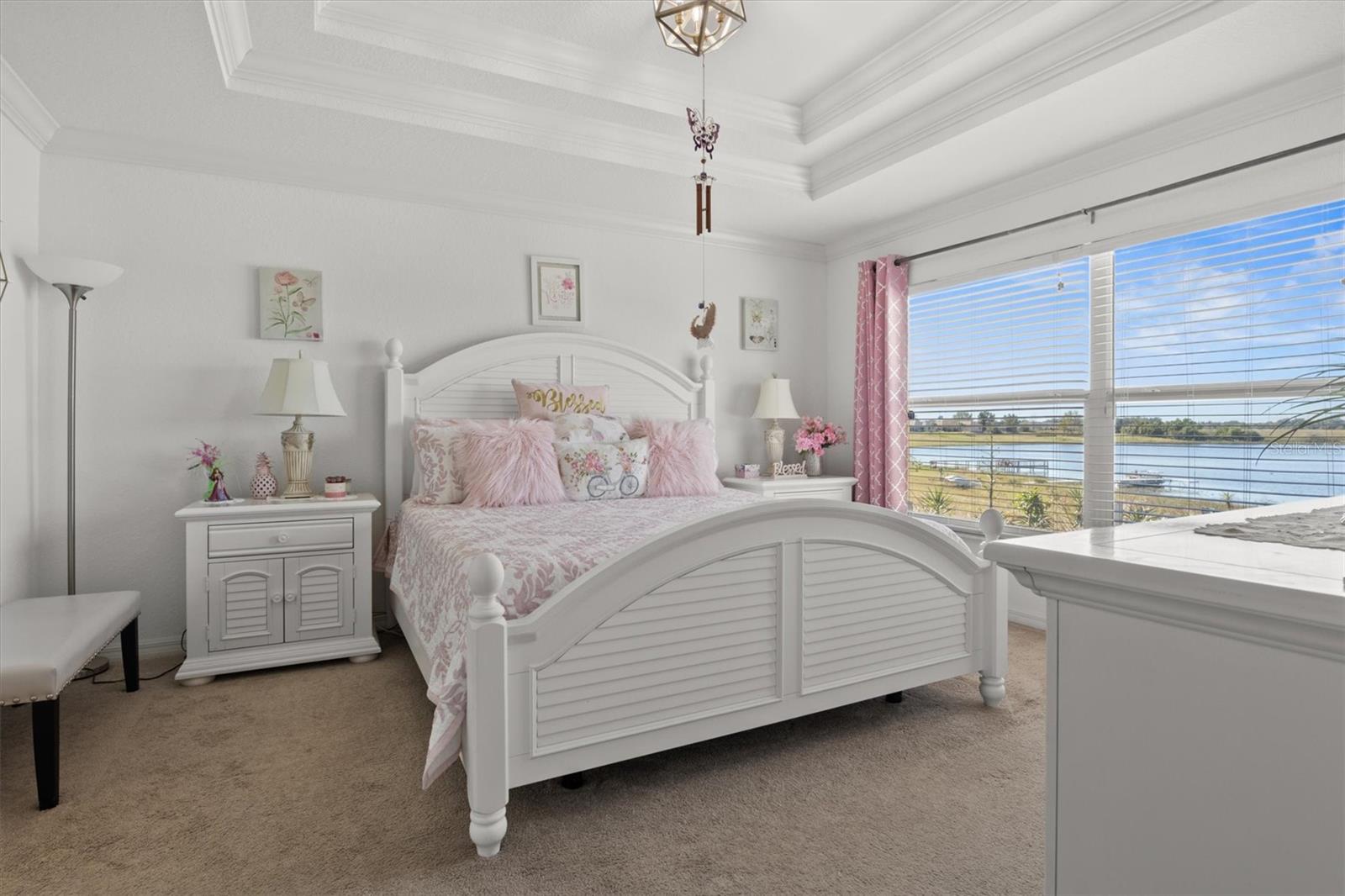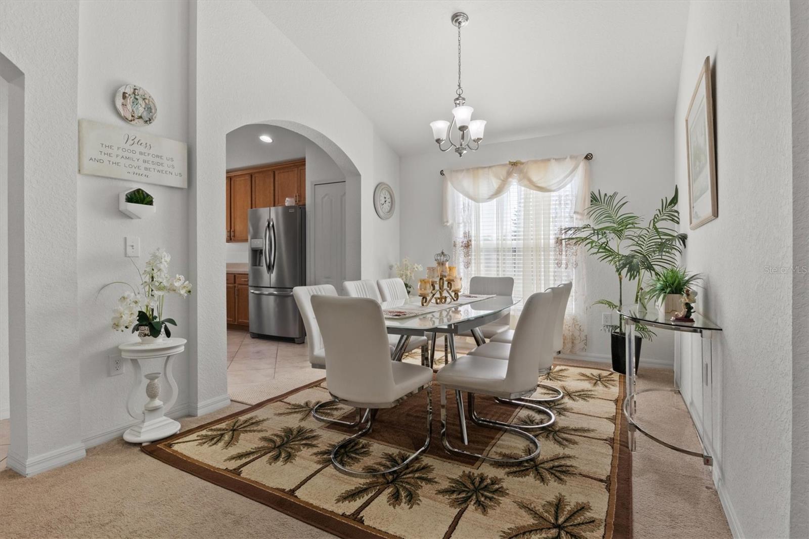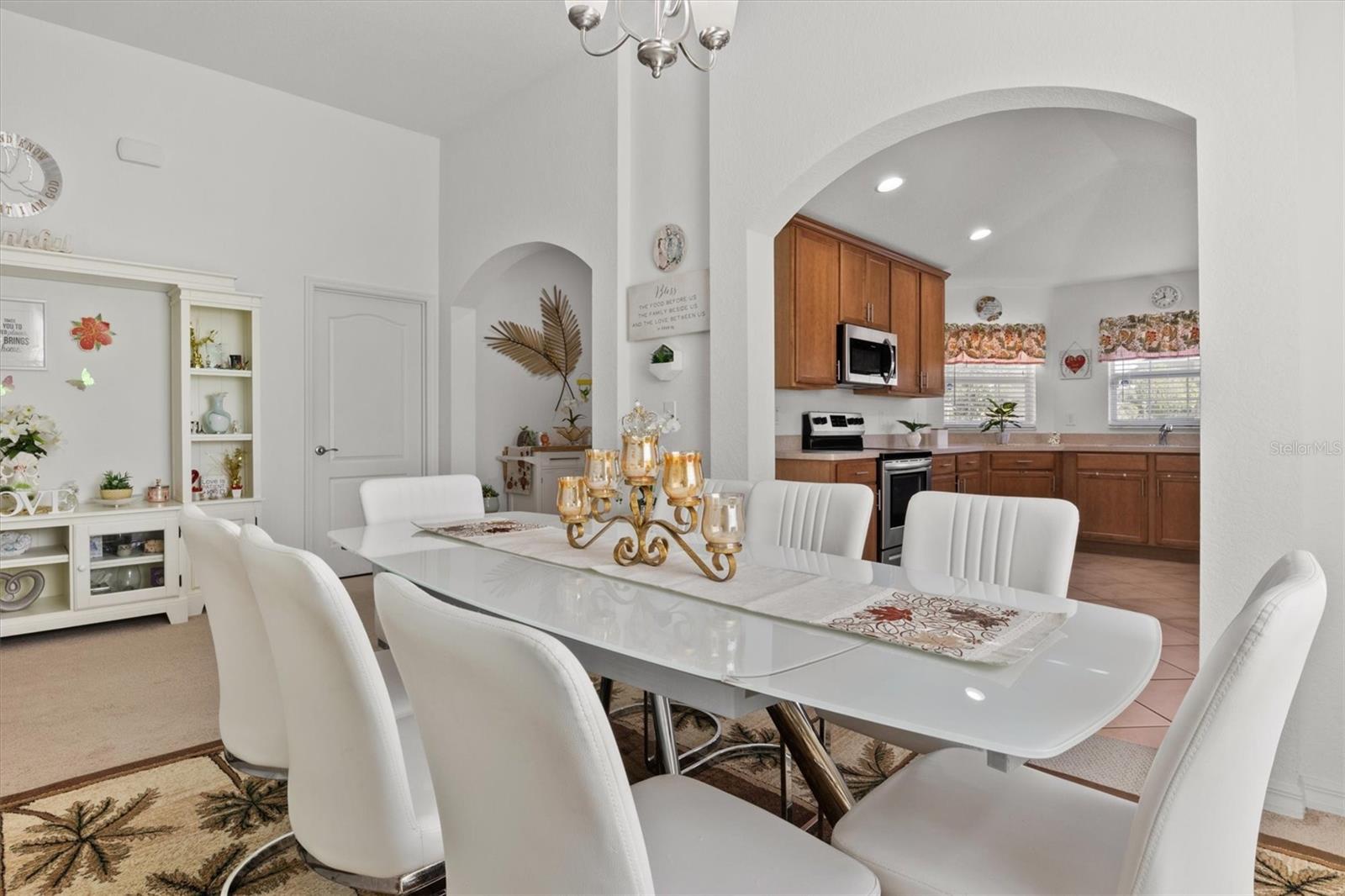 Imagine waking up to the gentle glow of the sun rising over the pristine waters of Dinner Lake. This 4-bedroom, 3-bathroom Southern Homes Belmont Series residence, built in 2018, offers the perfect blend of modern design and lakeside charm. As you step into the grand entryway, soaring 12-foot ceilings and an open layout greet you, creating a warm and inviting space for both relaxing and entertaining. Start your mornings sipping coffee in the chef’s kitchen, complete with stainless steel Frigidaire appliances and reverse osmosis water filtration. The natural light pours into the living area, leading you effortlessly to your private screened-in lanai. Here, you’ll find yourself lingering at sunset, captivated by the golden hues reflecting off the serene lake, or hosting friends on the extended 15x20 concrete patio. Retreat to the spacious primary suite, where dual walk-in closets and a spa-inspired bathroom with a garden tub and double vanity await. Three additional bedrooms provide flexibility for guests, family, or a home office. This home is set on over an acre in a gated community, offering not only privacy but also shared amenities like a community playground. With lake access, the possibility to build your own dock, and a dedicated irrigation well keeping the landscaped yard lush year-round, this home truly has it all. Whether you’re seeking peaceful mornings, vibrant gatherings, or the serenity of lakeside living, this property is your perfect match. Schedule a private showing and don't miss the chance to call this beautiful home your own!