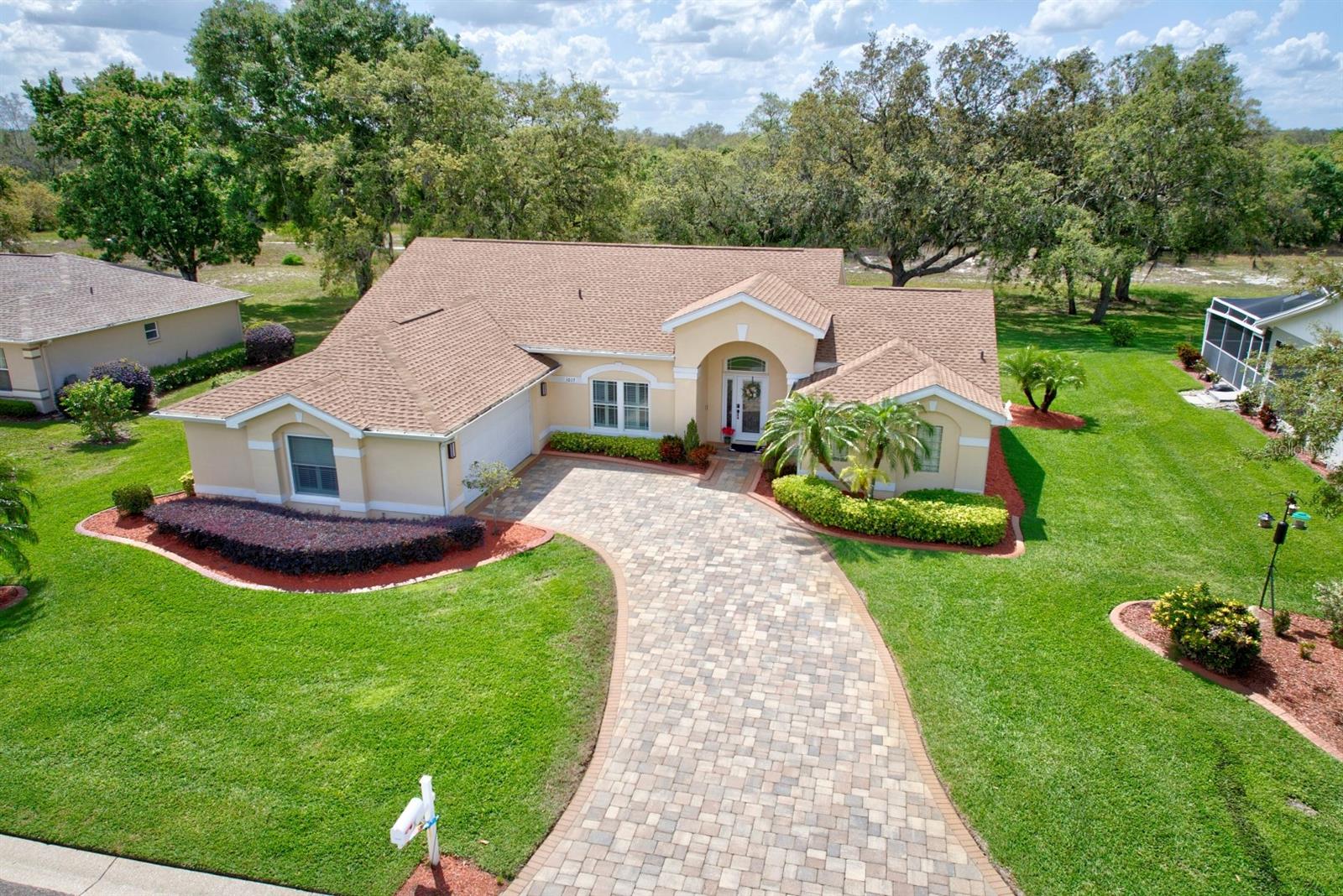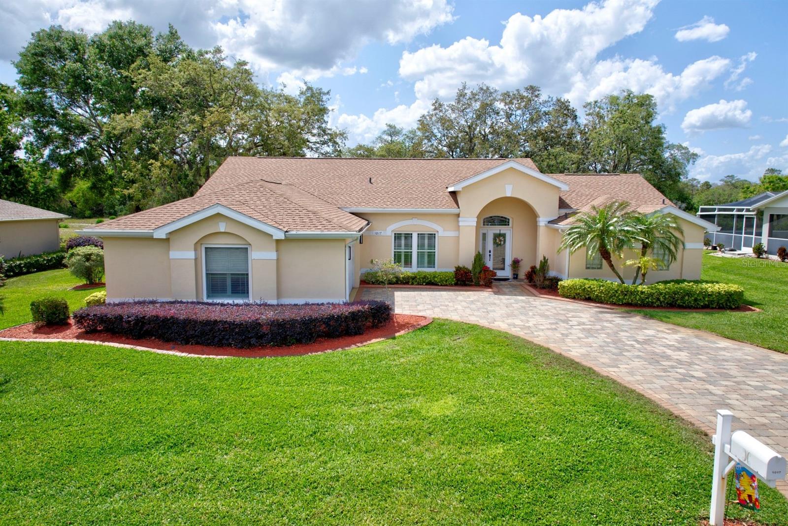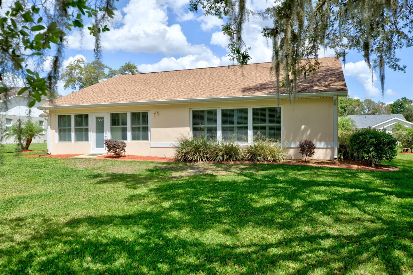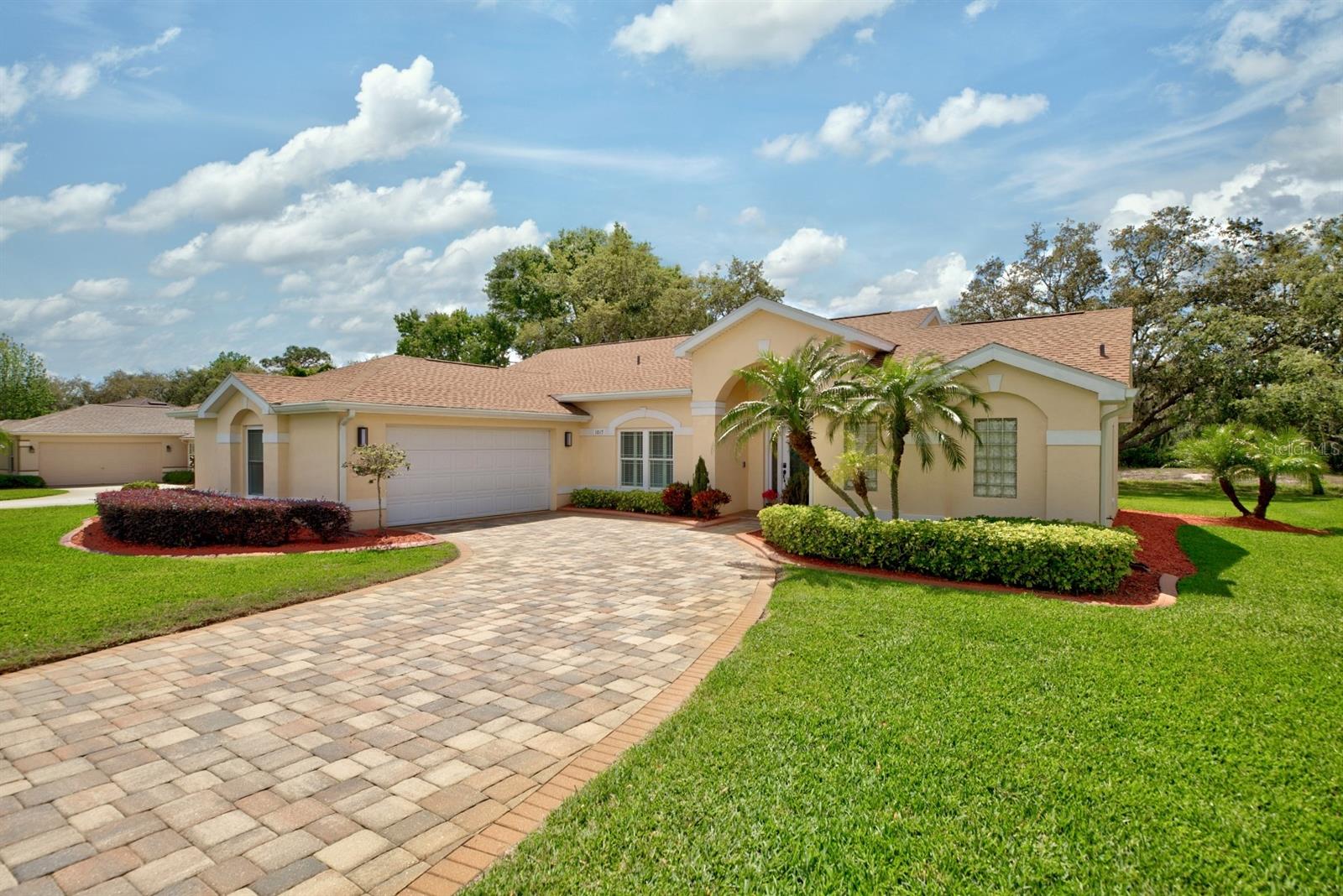 Check out this 3-bedroom, 2-bath beautiful home located in the highly desirable, gated community of Oakwood Golf Club. The home has been EXTENSIVELY REMODELED with quality upgrades that create visual impact throughout, plus a new roof in 2023. Driving up to the home the curb appeal begins with the paver driveway, side entry 2 car garage, and well-maintained landscaping. The inviting master bedroom suite is 13’ x 14’ and features his and her closets and an en-suite luxury bathroom with a large vanity, his and her sinks, and a walk-in tiled shower with multiple shower heads. The split floor plan offers the second and third bedrooms to be tucked away on the opposite side of the home along with the guest bathroom! This home also features a home office and high-speed internet available for anyone needing to work from home. For anyone needing to work from home. Additional amenities include an inside laundry room with a washer and dryer included, plantation shutters, recessed lighting, and ceiling fans. This home is located on a 1/4-acre lot with no backyard neighbors and uniquely positioned a few doors down from the cul-de-sac ensuring privacy. Oakwood Golf Club community is gated (gate closes at 6:00 p.m.) and is conveniently located near medical offices, schools, restaurants, and shopping. With beautiful nearby lakes and popular Central Florida attractions just an hour away, this captivating home is a must-see.