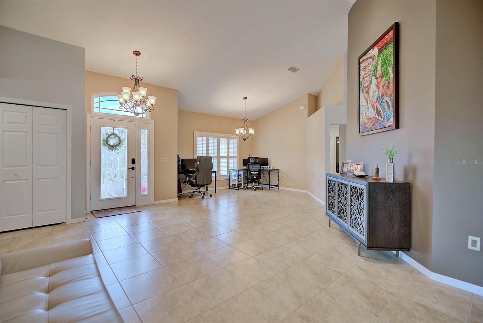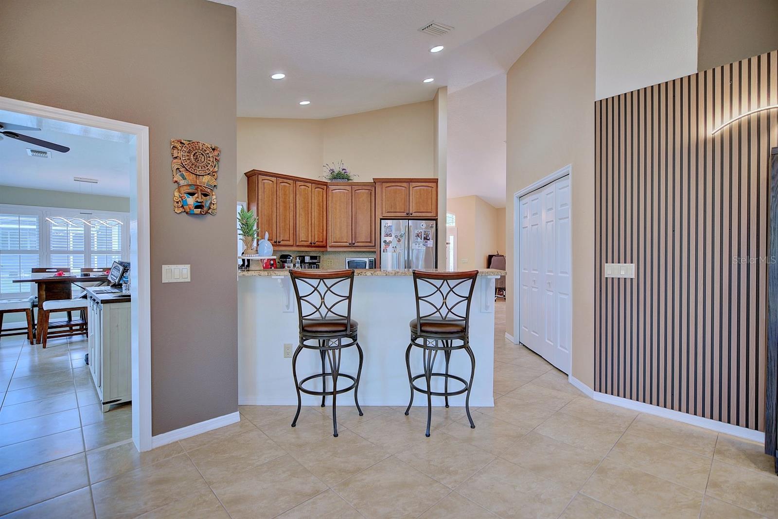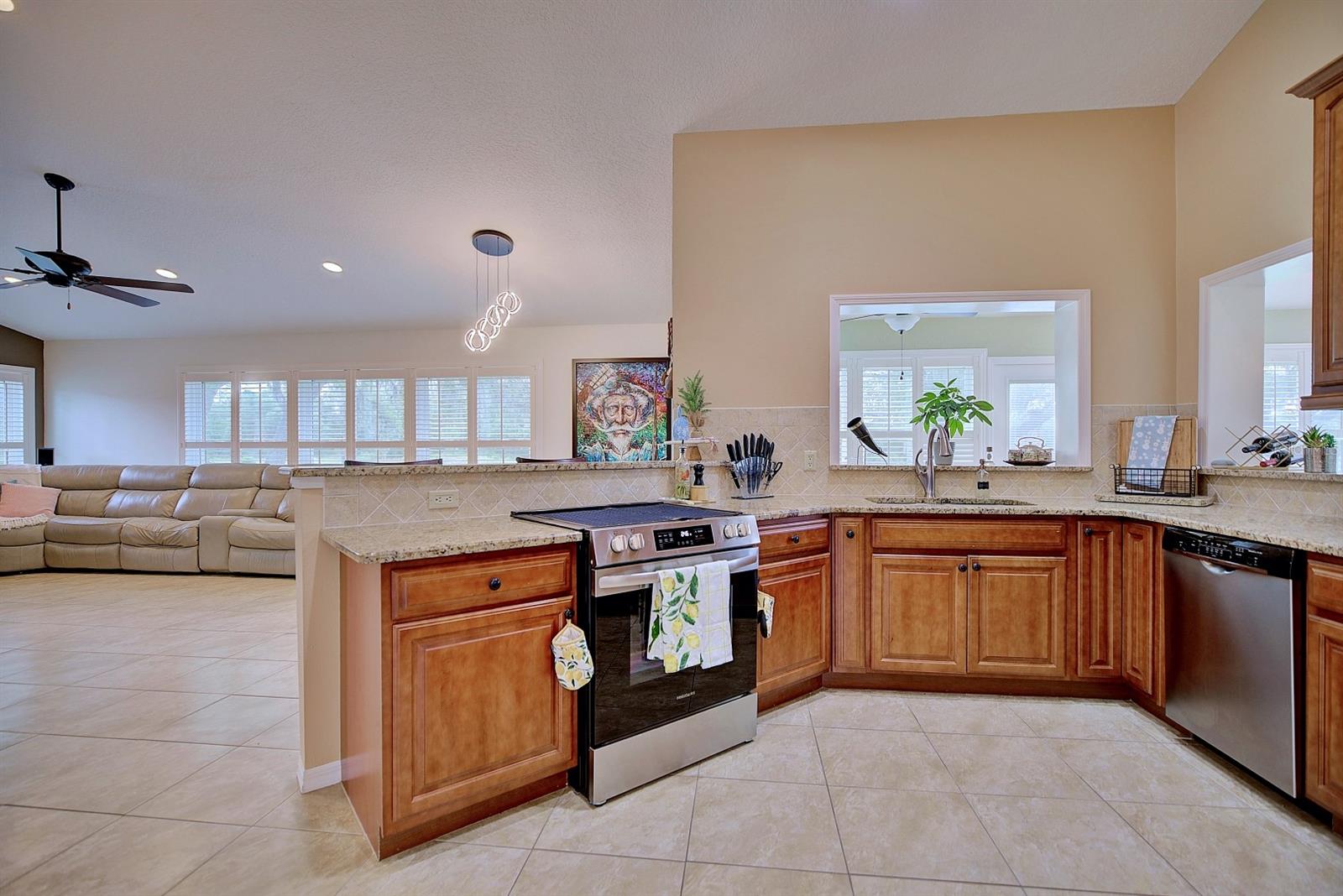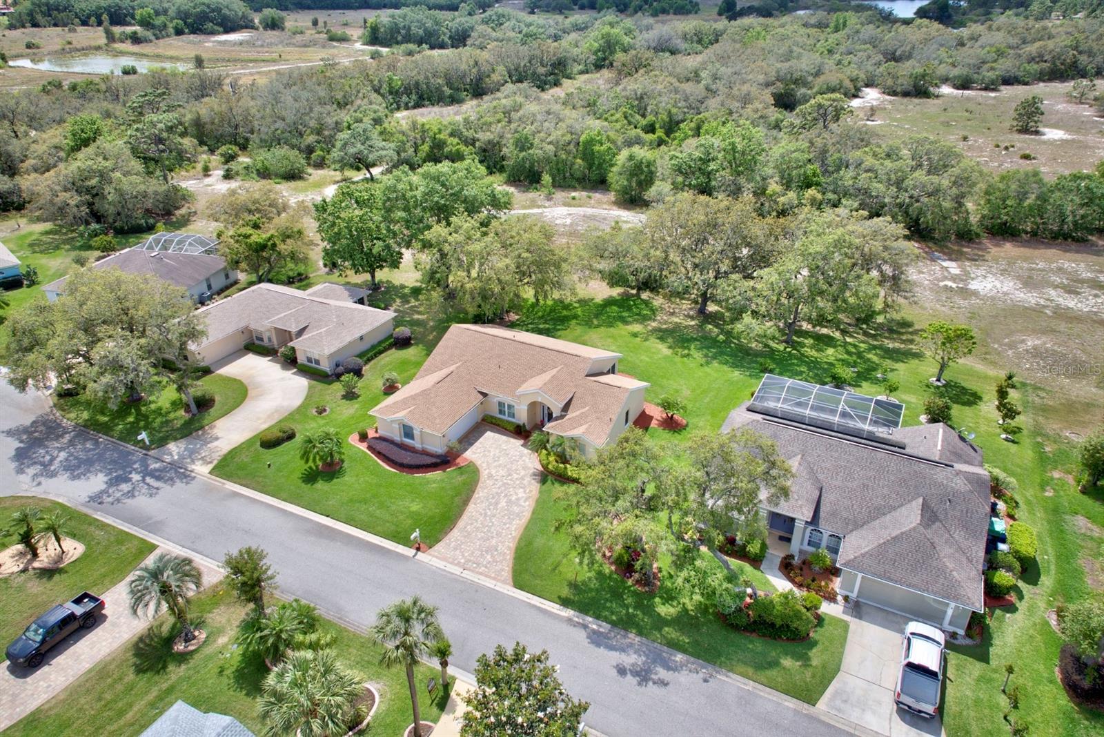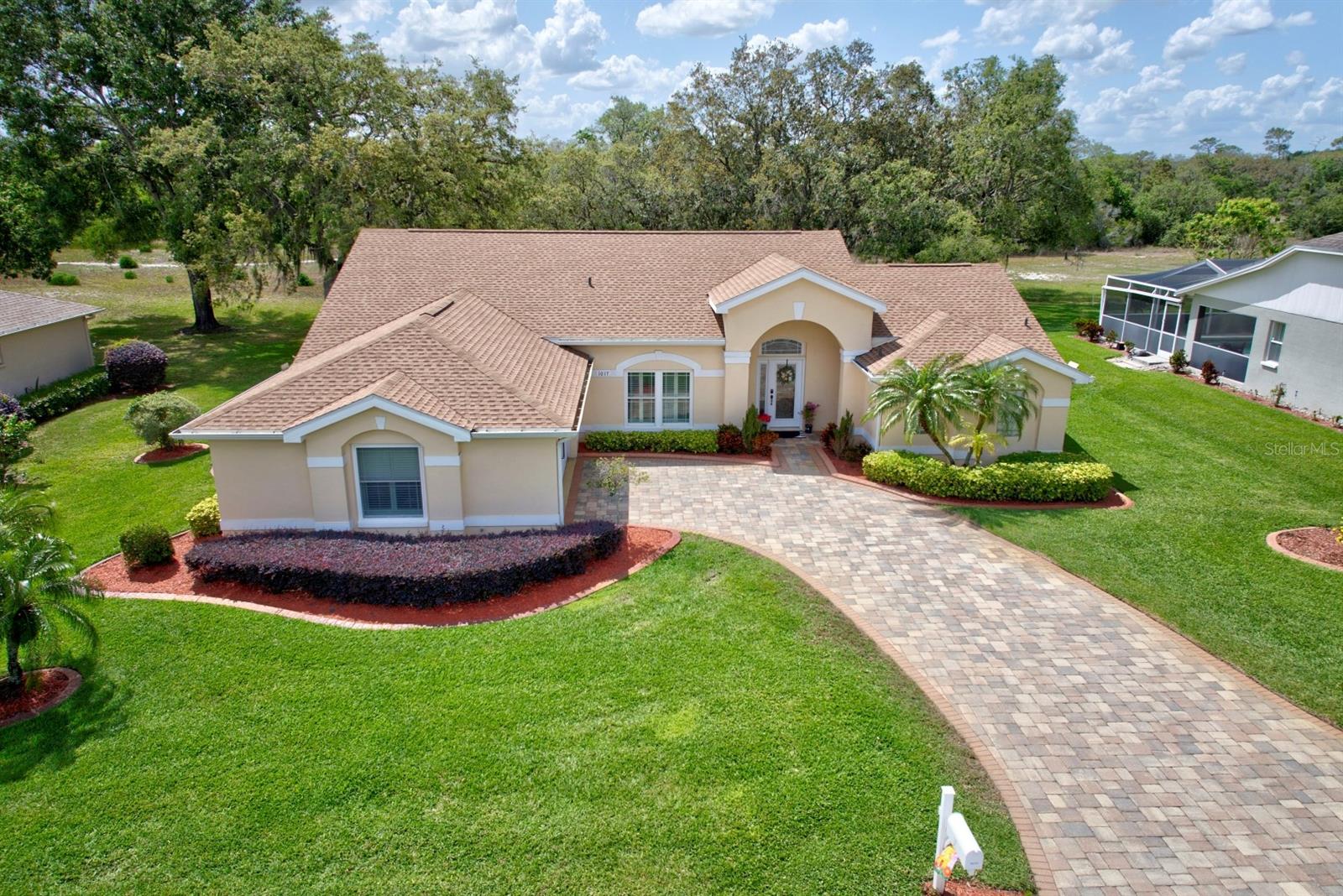 Check out this 3-bedroom, 2-bath beautiful home located in the highly desirable, gated community of Oakwood Golf Club. The home has been EXTENSIVELY REMODELED with quality upgrades that create visual impact throughout, plus a new roof in 2023. Driving up to the home the curb appeal begins with the paver driveway, side entry 2 car garage, and well-maintained landscaping. The inviting master bedroom suite is 13’ x 14’ and features his and her closets and an en-suite luxury bathroom with a large vanity, his and her sinks, and a walk-in tiled shower with multiple shower heads. The split floor plan offers the second and third bedrooms to be tucked away on the opposite side of the home along with the guest bathroom! This home also features a home office and high-speed internet available for anyone needing to work from home. For anyone needing to work from home. Additional amenities include an inside laundry room with a washer and dryer included, plantation shutters, recessed lighting, and ceiling fans. This home is located on a 1/4-acre lot with no backyard neighbors and uniquely positioned a few doors down from the cul-de-sac ensuring privacy. Oakwood Golf Club community is gated (gate closes at 6:00 p.m.) and is conveniently located near medical offices, schools, restaurants, and shopping. With beautiful nearby lakes and popular Central Florida attractions just an hour away, this captivating home is a must-see.